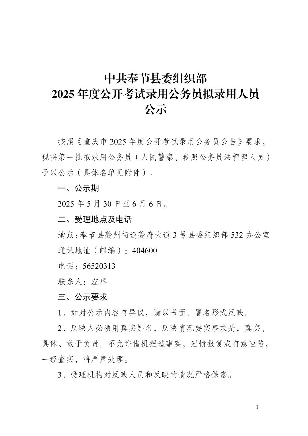 中共奉节县委组织部 2025 年度公开考试录用公务员拟录用人员公示.pdf