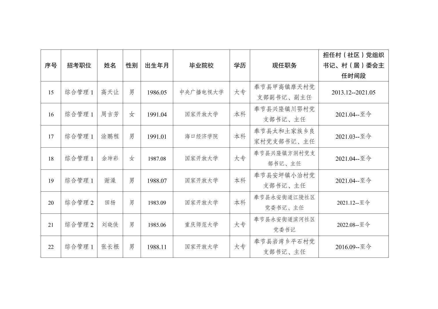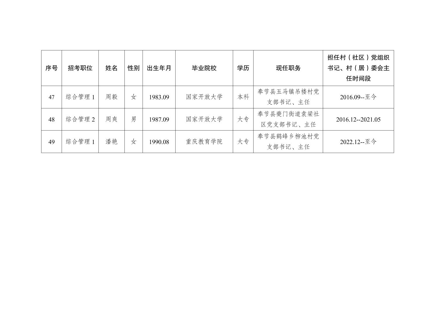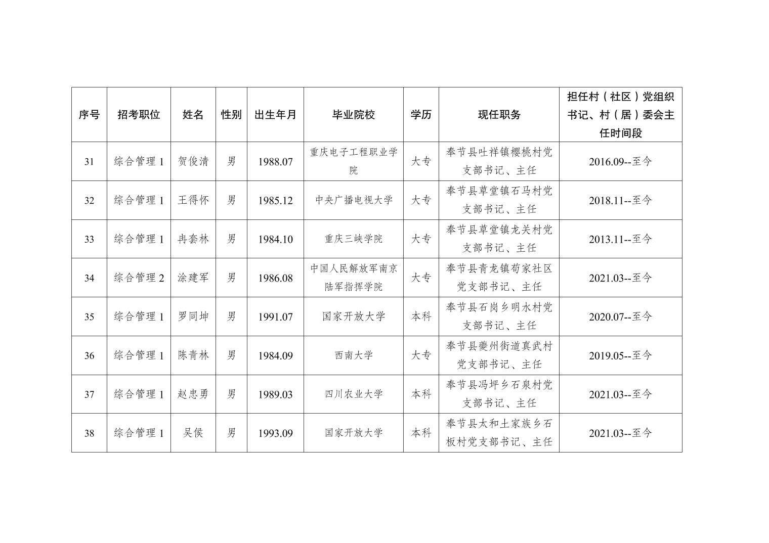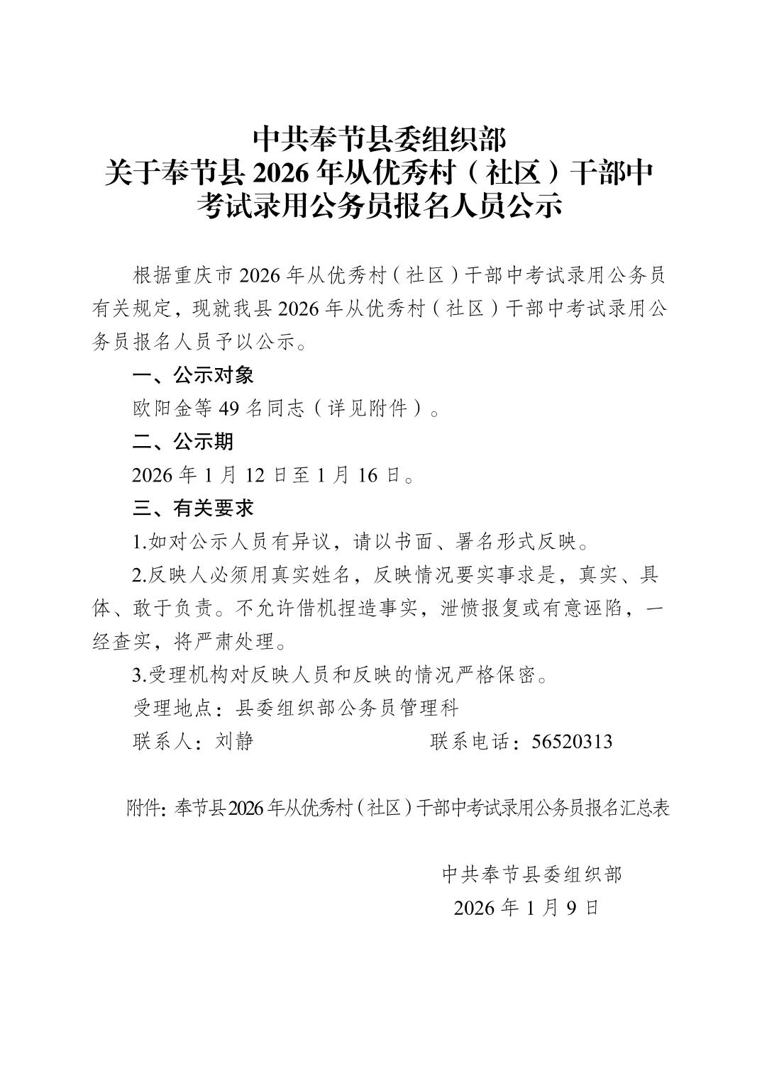 中共奉节县委组织部关于奉节县2026年从优秀村 (社区)干部中考试录用公务员报名人员公示