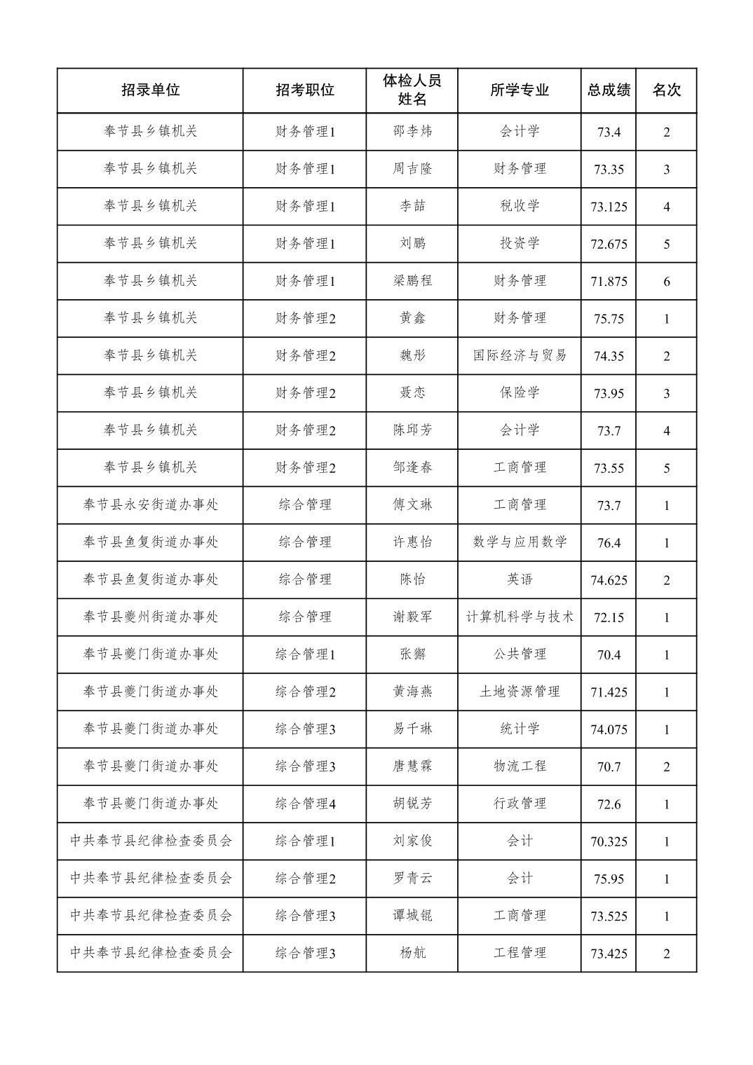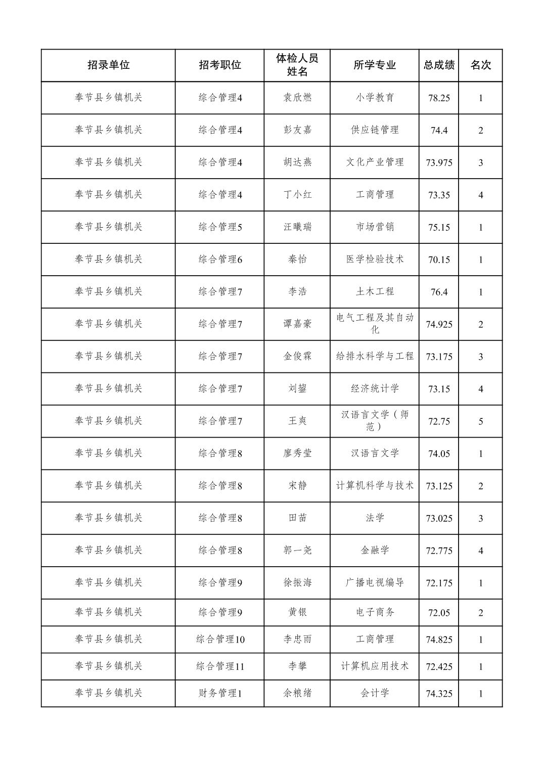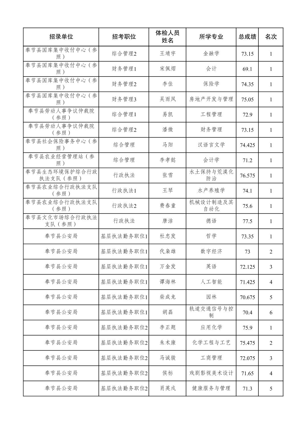奉节县2026年度考试录用公务员参加体检人员公布表