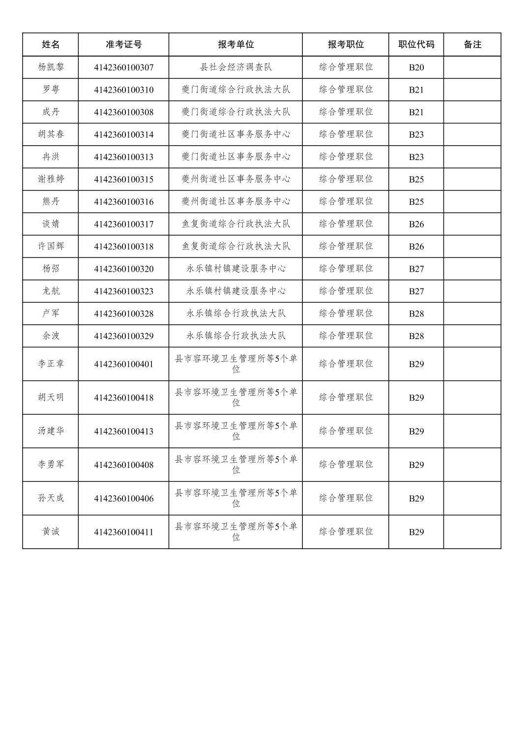 2.奉节县2024年度公开遴选事业单位工作人员进入考察人员名单公布表