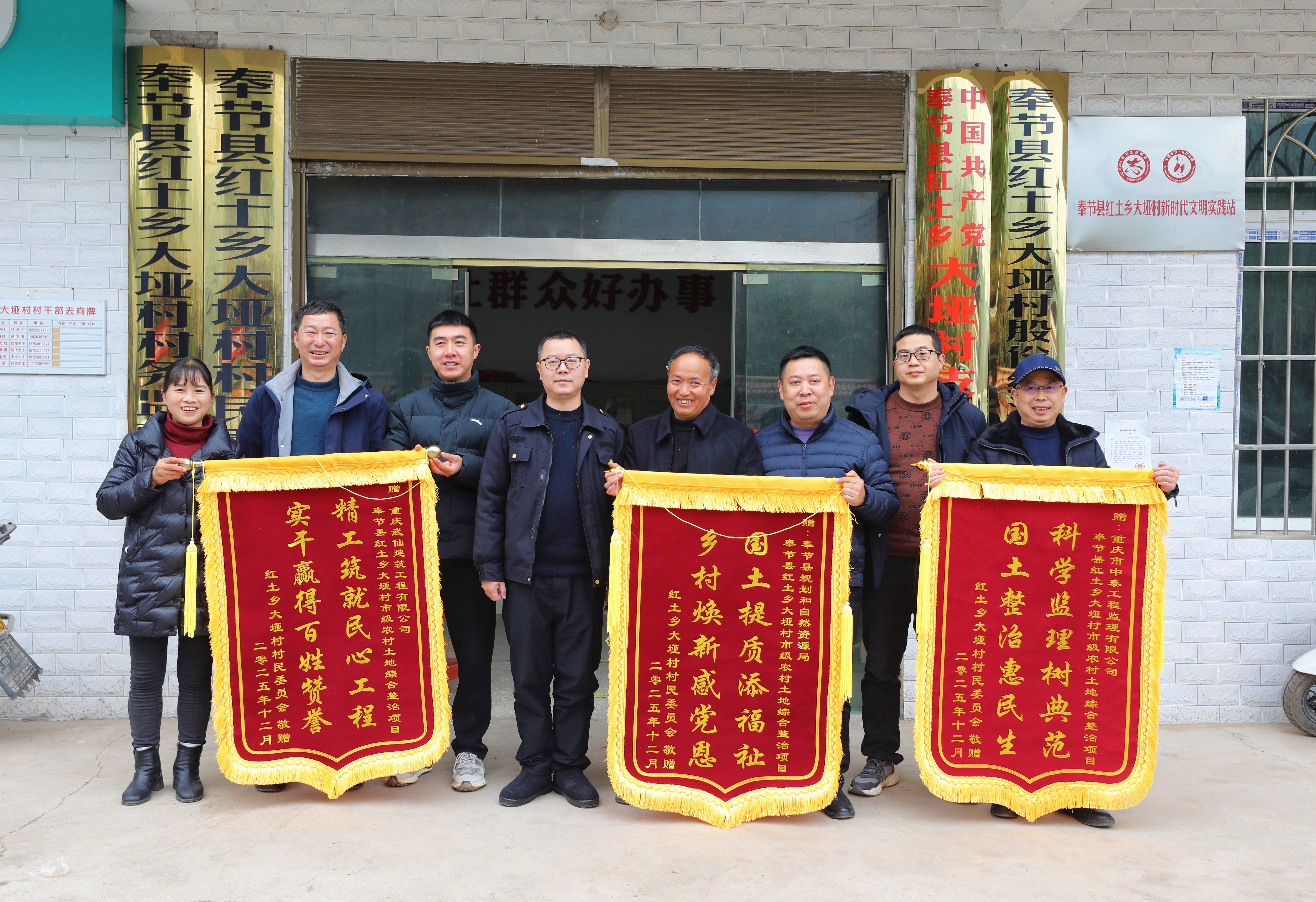 近日,奉节县红土乡大垭村村委会门口暖意融融,村民代表将一面印有“国土提质添福祉 乡村焕新感党恩”的锦旗送到奉节县规划和自然资源局工作人员手中,同时向项目负责人和监理单位送上锦旗,用质朴的方式表达对市级农村土地综合整治项目的由衷赞誉。