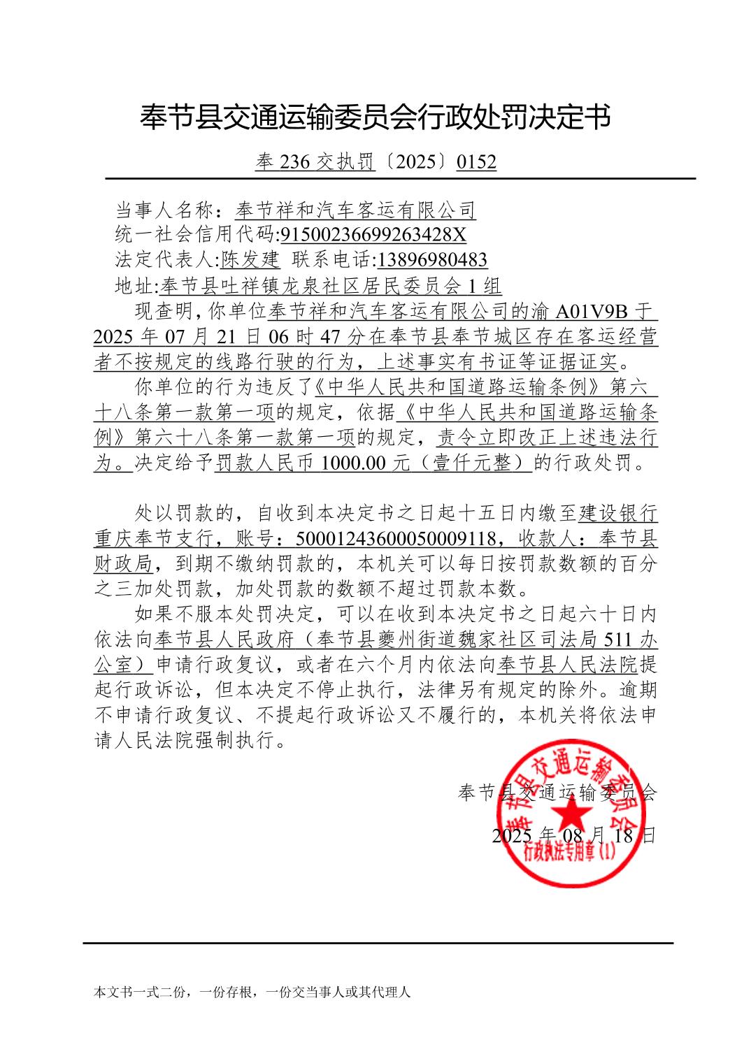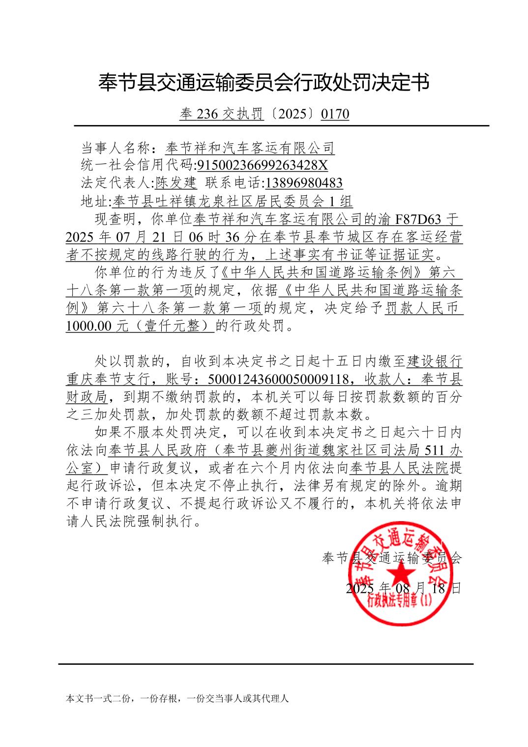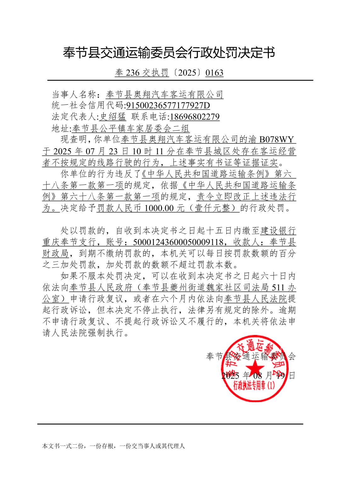 2025年8月行政处罚决定书