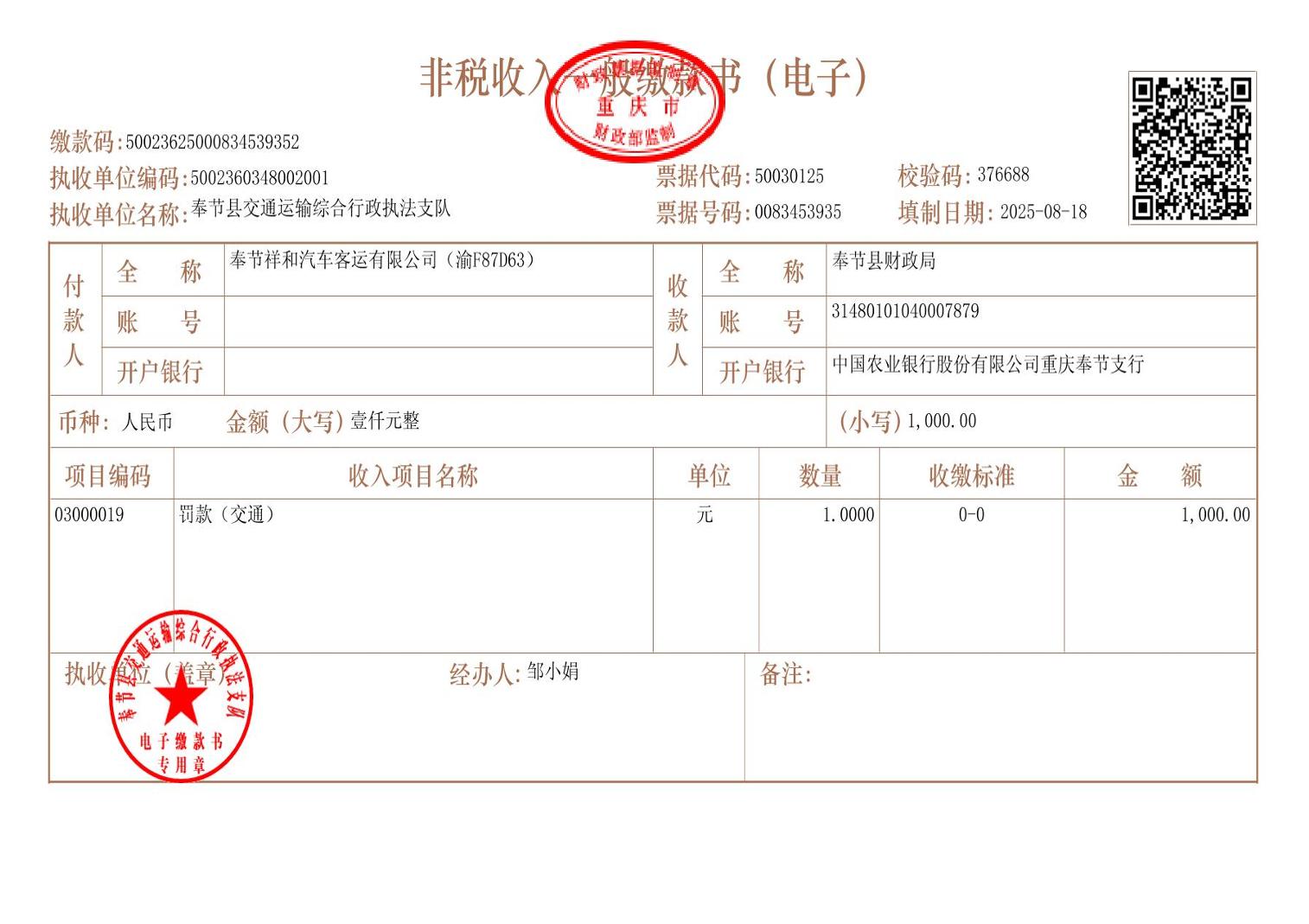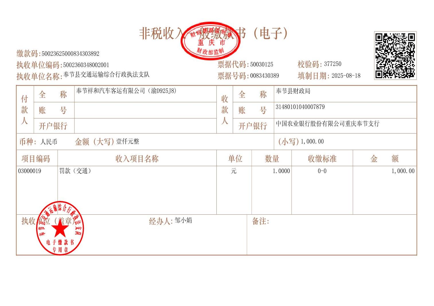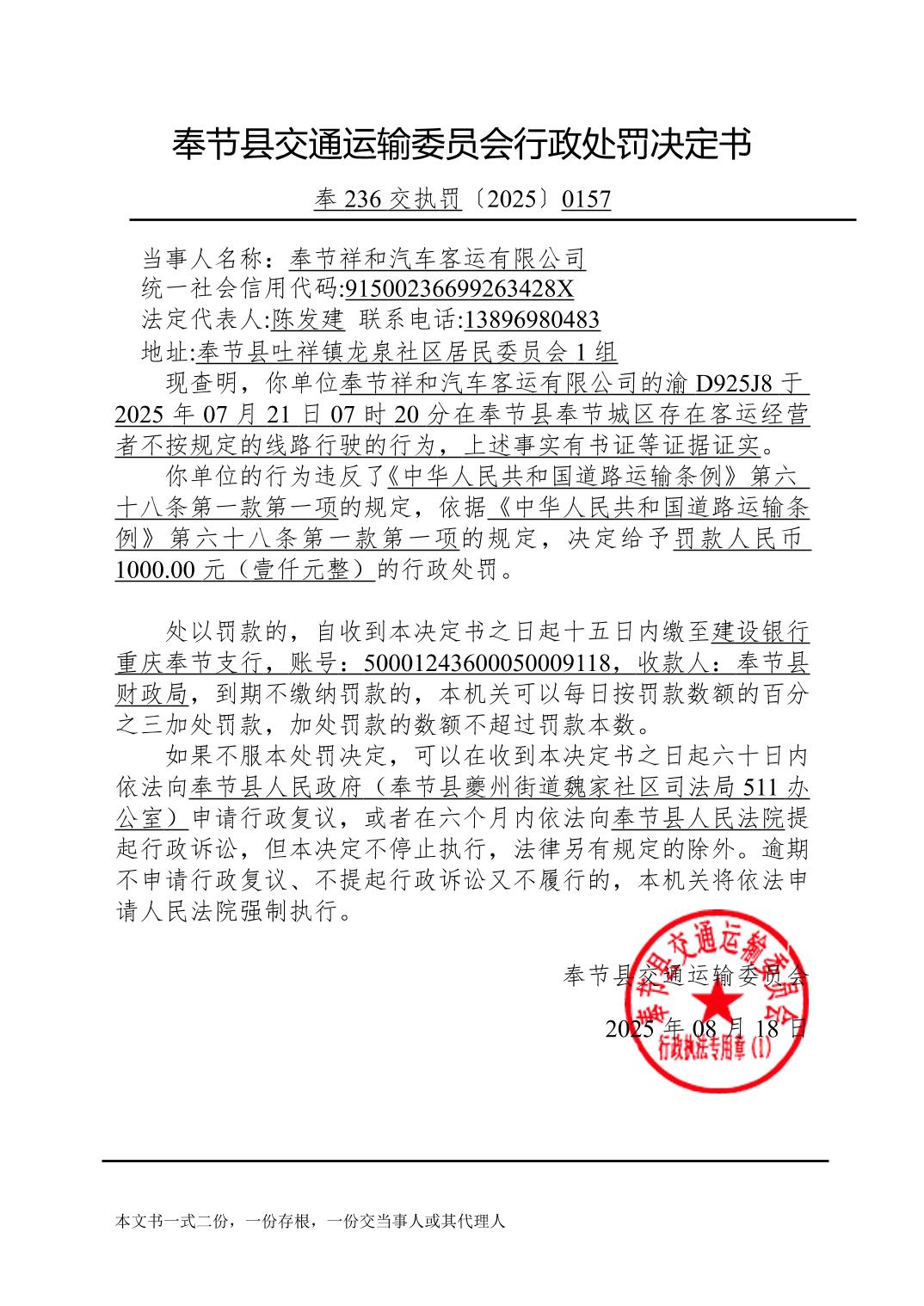 2025年8月行政处罚决定书