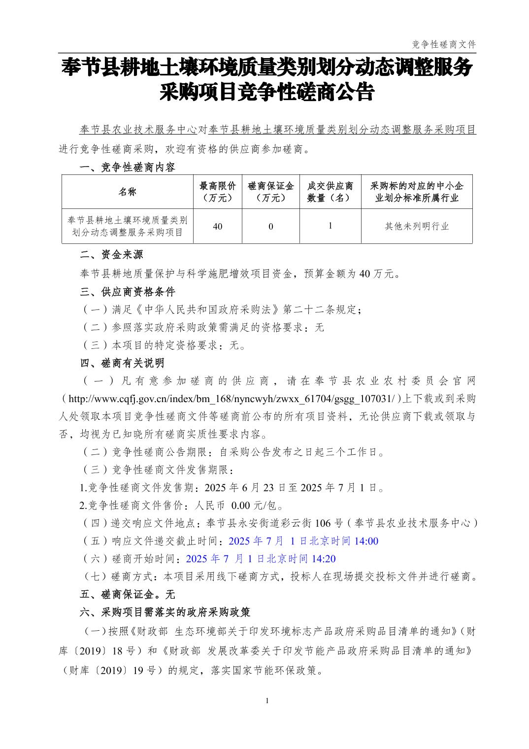 奉节县耕地土壤环境质量类别划分动态调整服务采购项目竞争性磋商公告