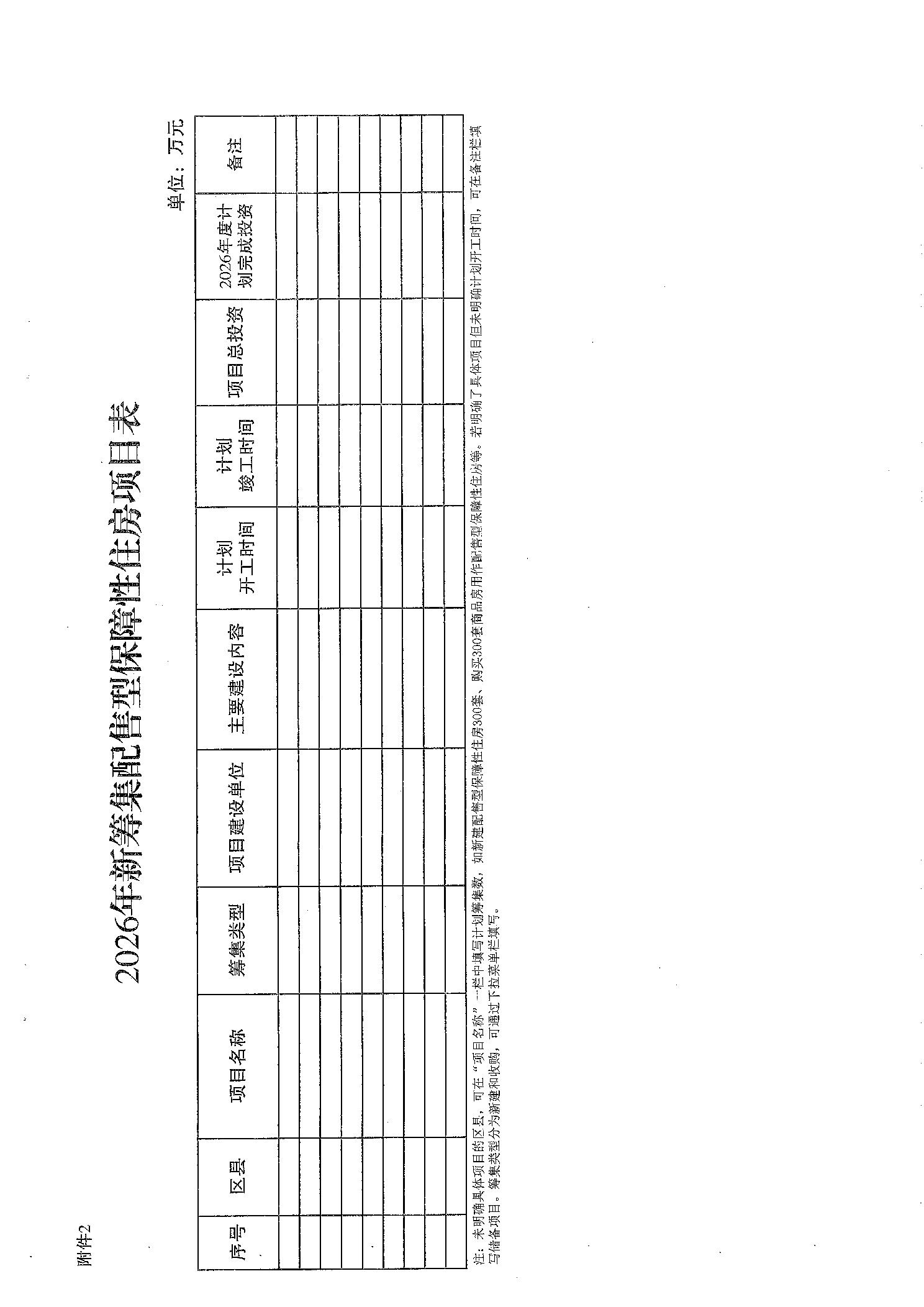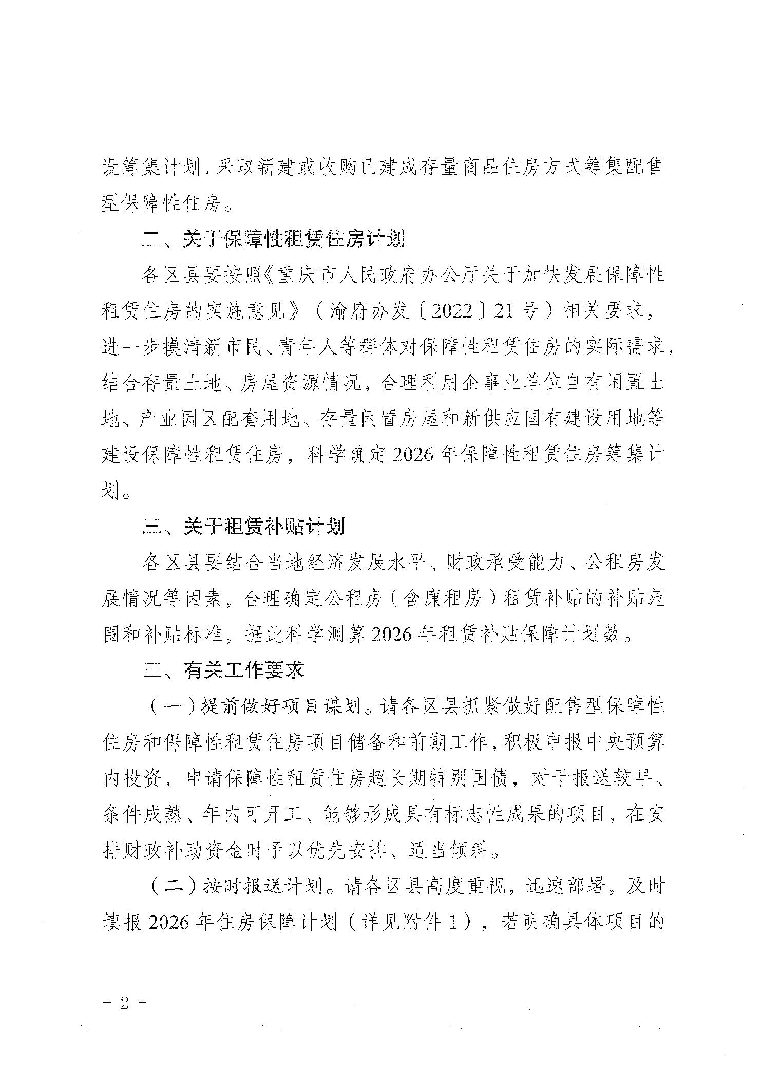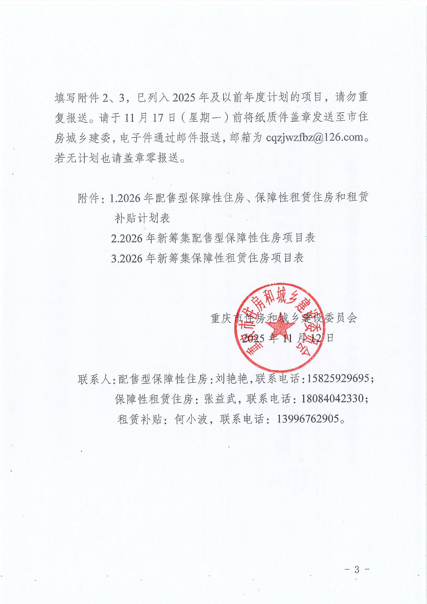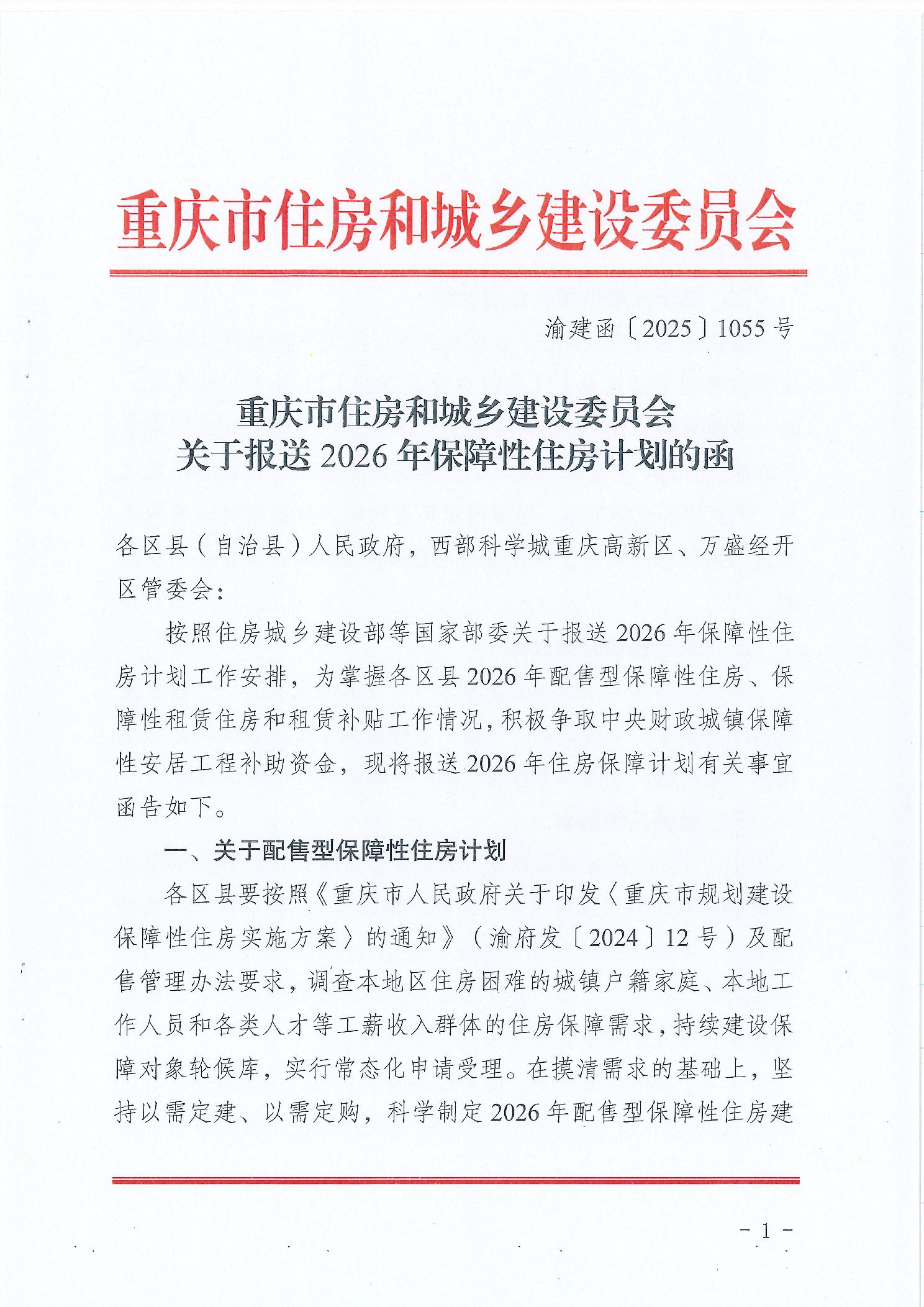 重庆市住房和城乡建设委员会关于报送2026年保障性住房计划的函