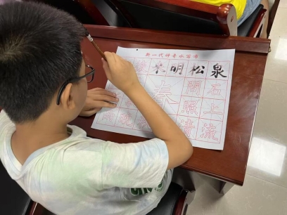 在“书画最美汉字”环节,志愿者通过讲解书法艺术的演变与魅力,激发孩子们的兴趣。随后,手把手示范正确握笔姿势与书写方法,孩子们认真模仿、专注练习,在笔墨流转间感受汉字的结构之美与书法的韵味,最终完成的作品或工整规范,或独具创意,展现了对传统文化的初步理解与热爱。