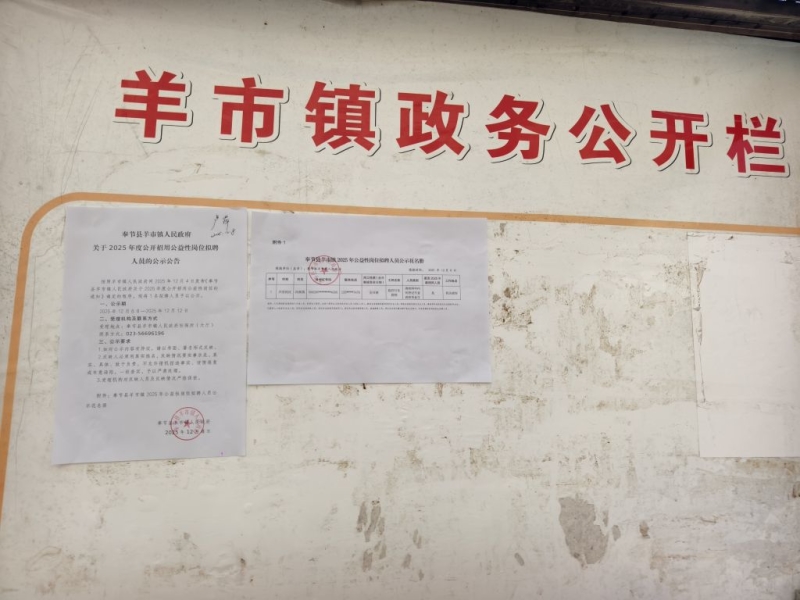奉节县羊市镇人民政府 关于2025年度公开招用公益性岗位的通知