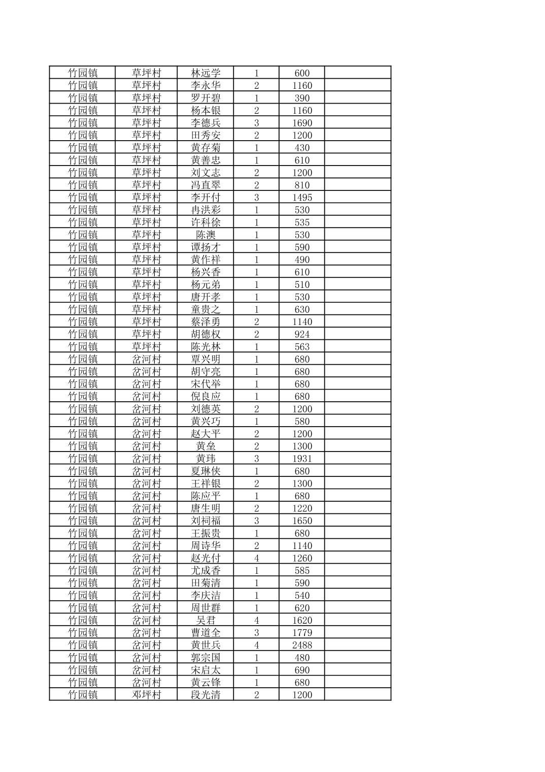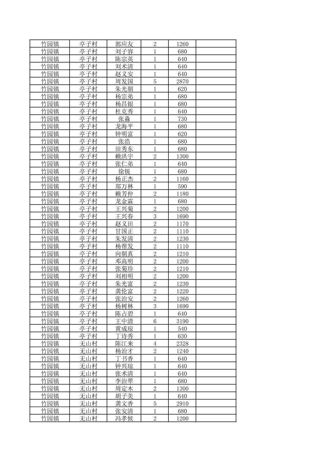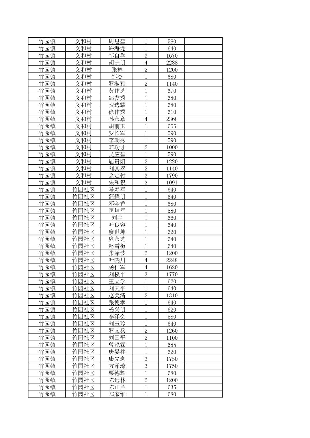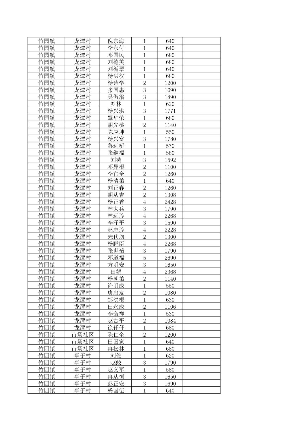 奉节县竹园镇2025年9月份农村低保家庭保障金发放花名册