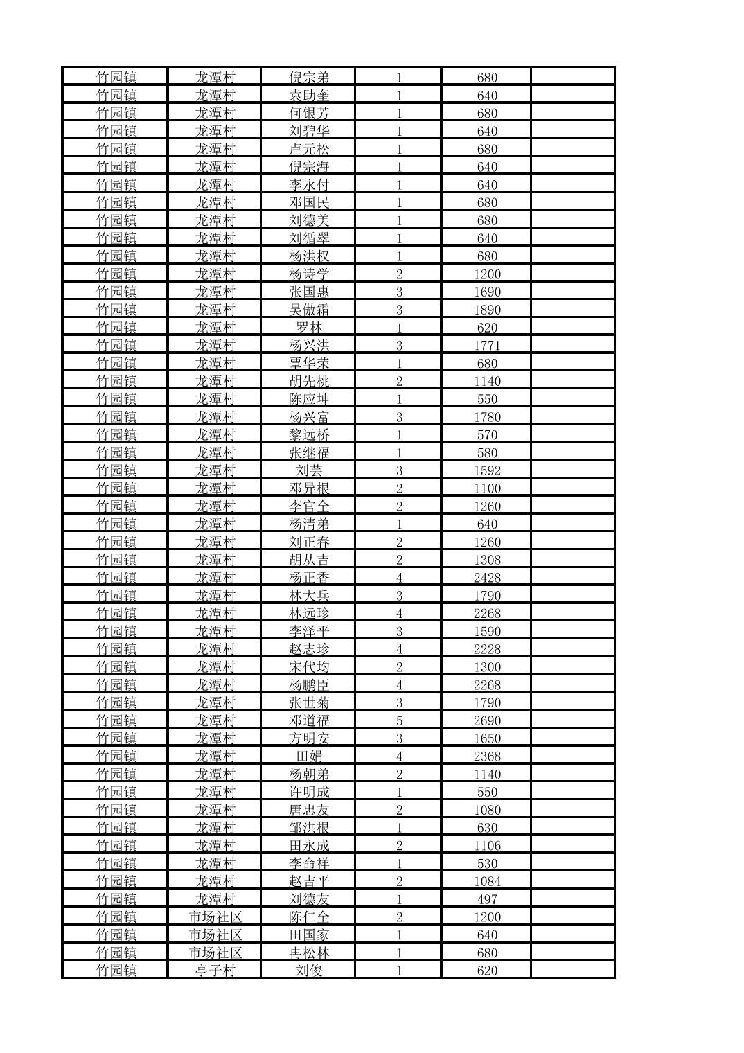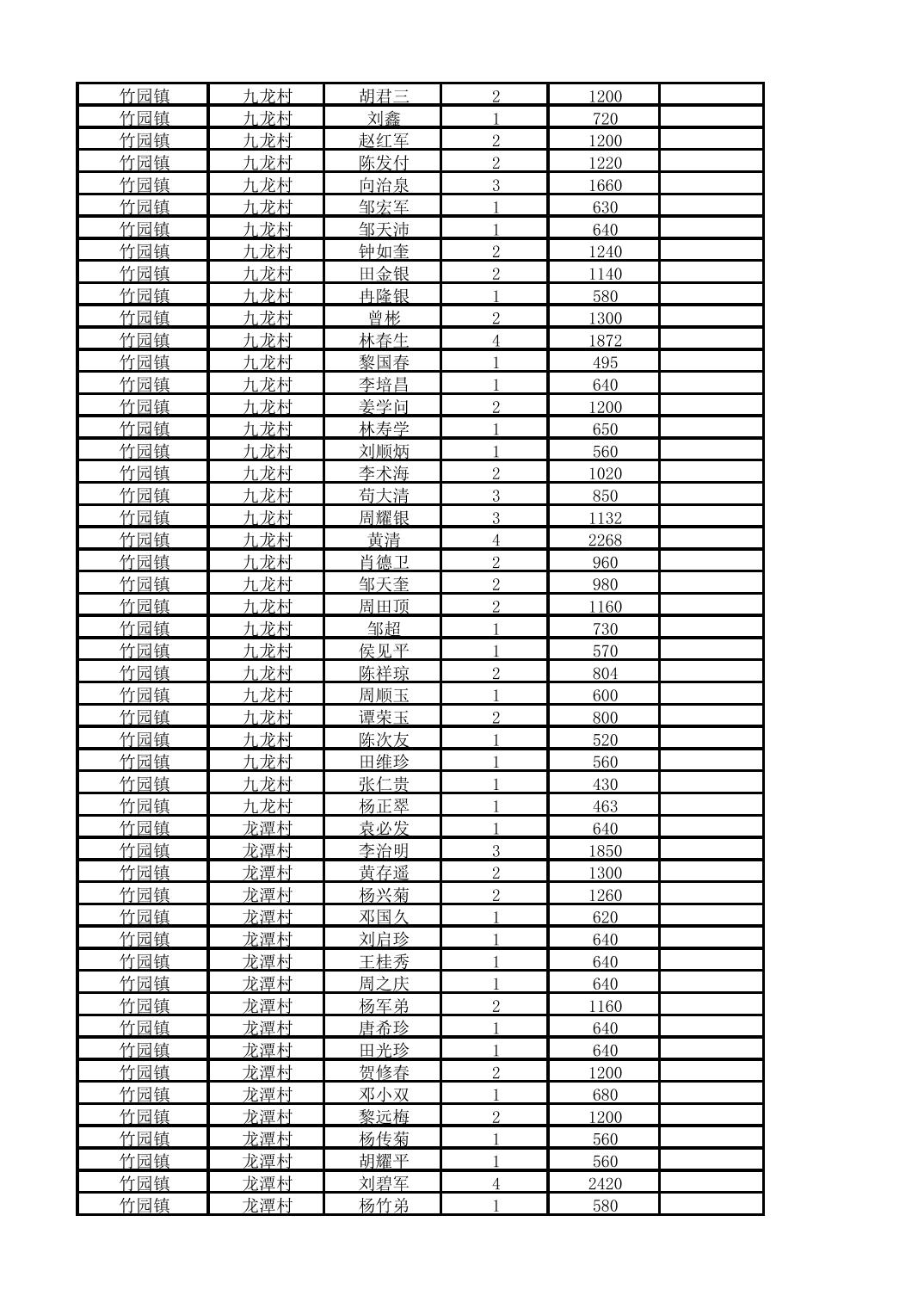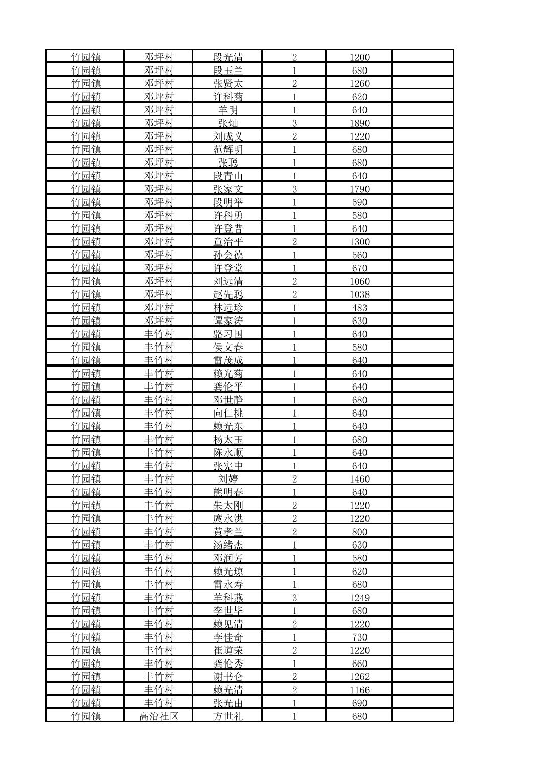 奉节县竹园镇2025年10月份农村低保家庭保障金发放花名册