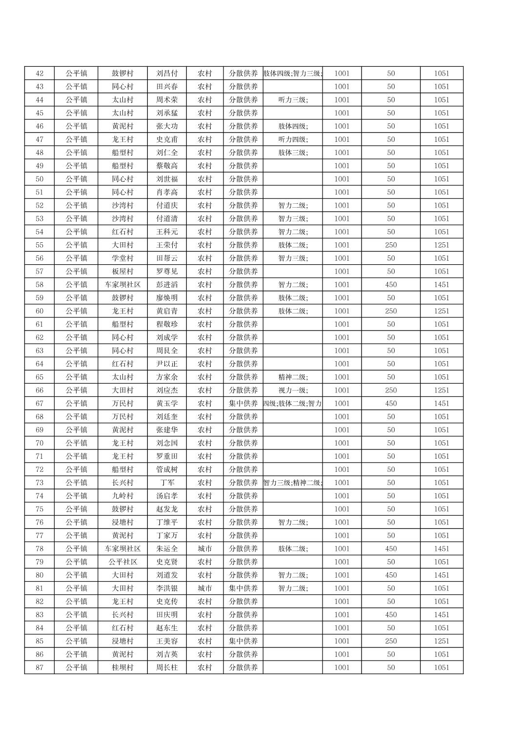 公平镇2026年1月份特困人员供养金及打卡花名册