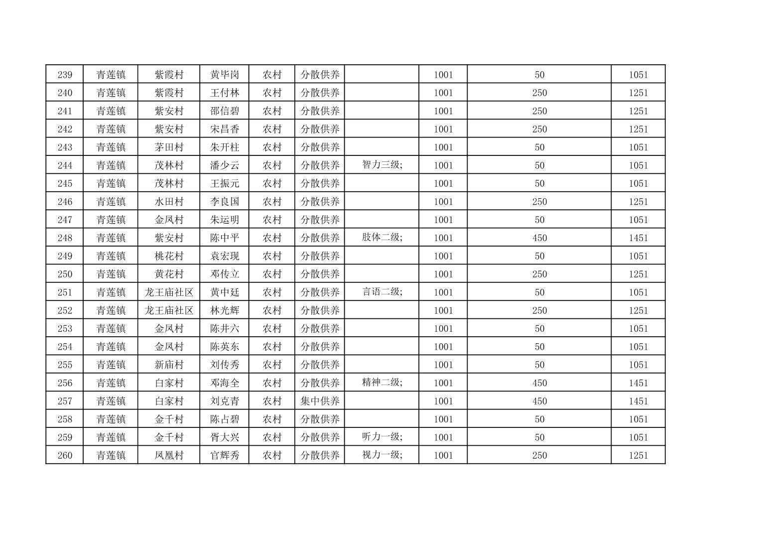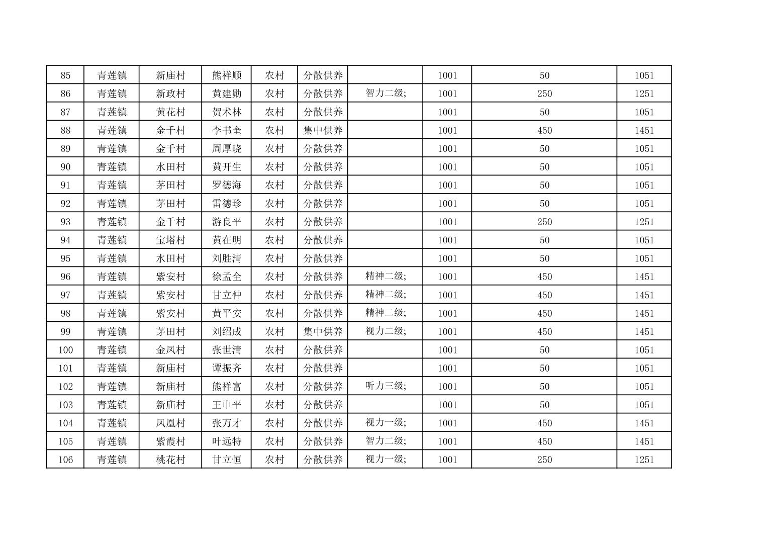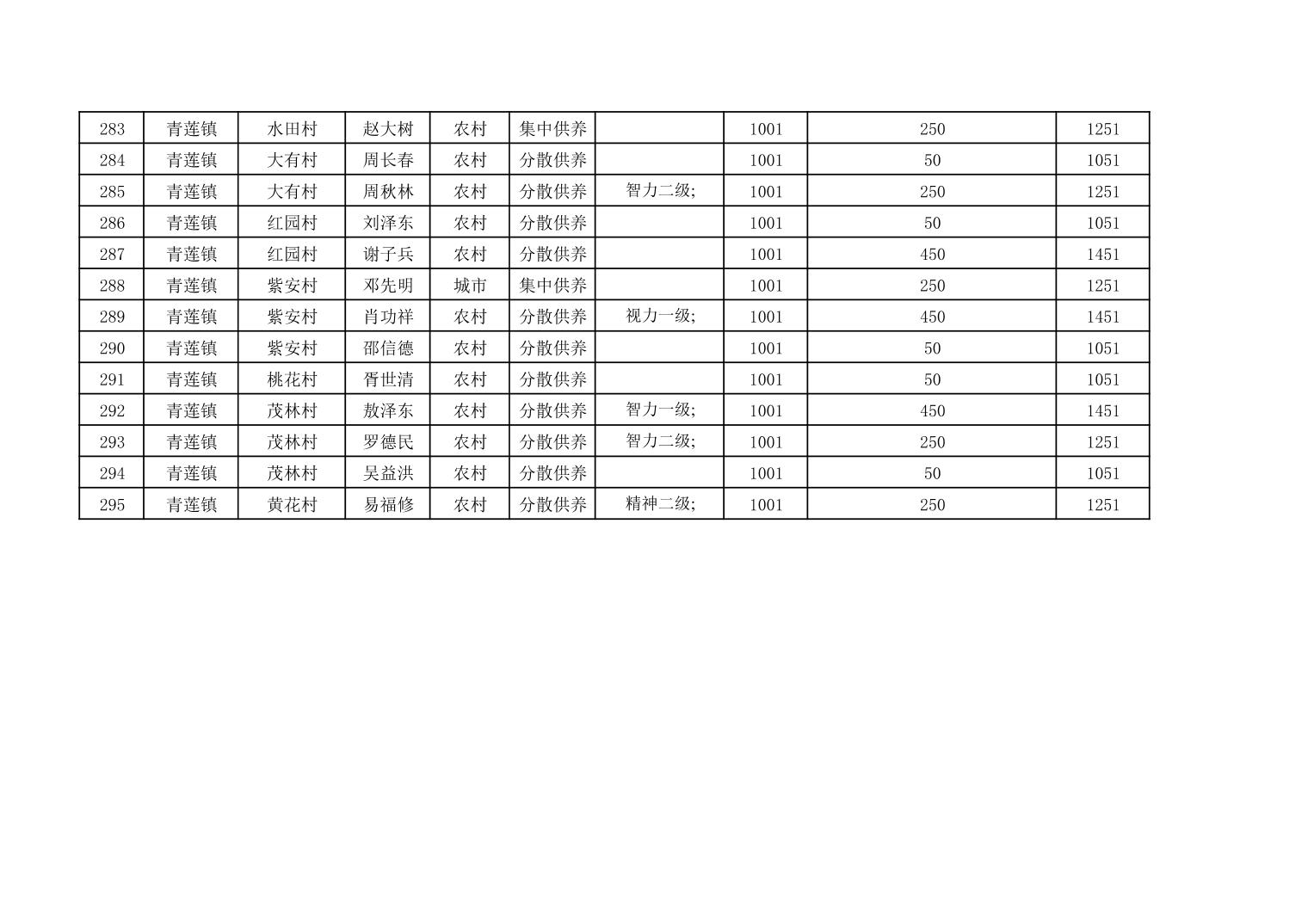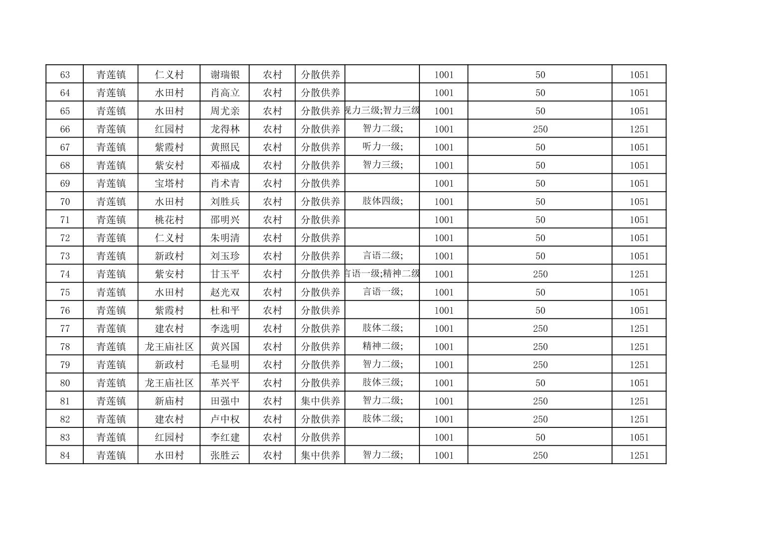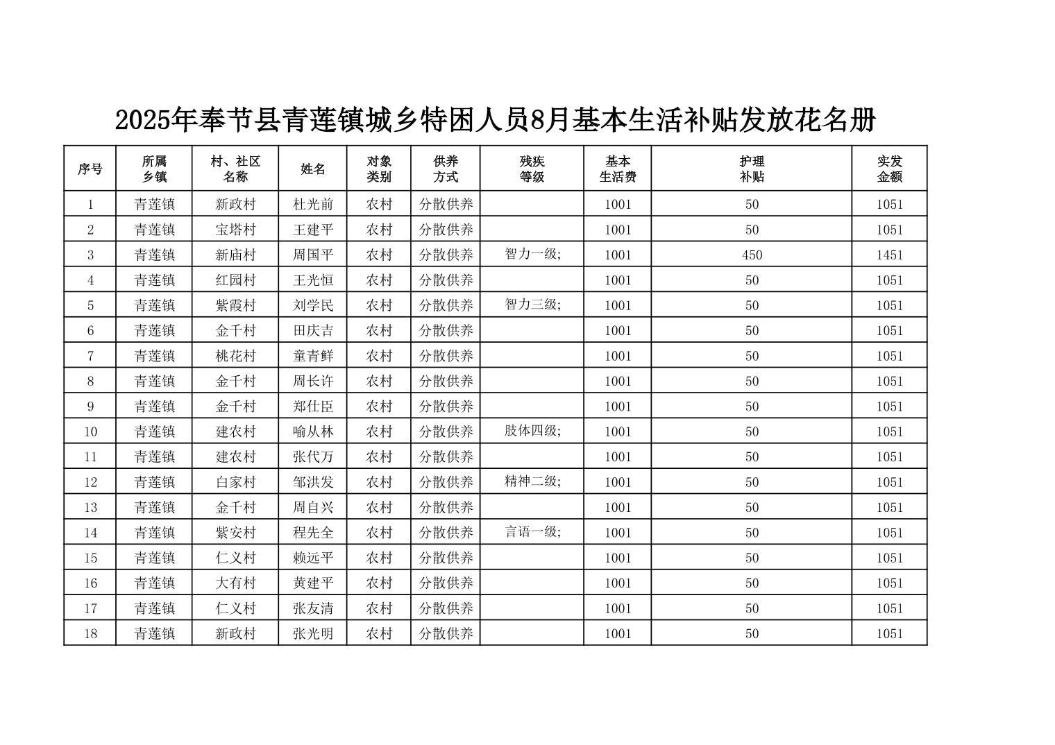 2025年奉节县青莲镇城乡特困人员8月基本生活补贴发放花名册