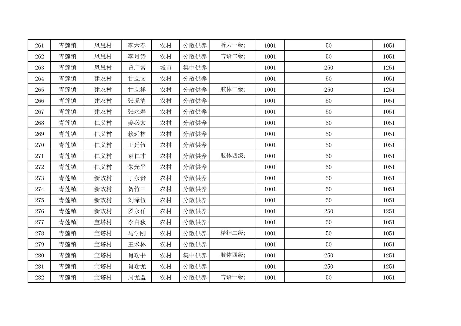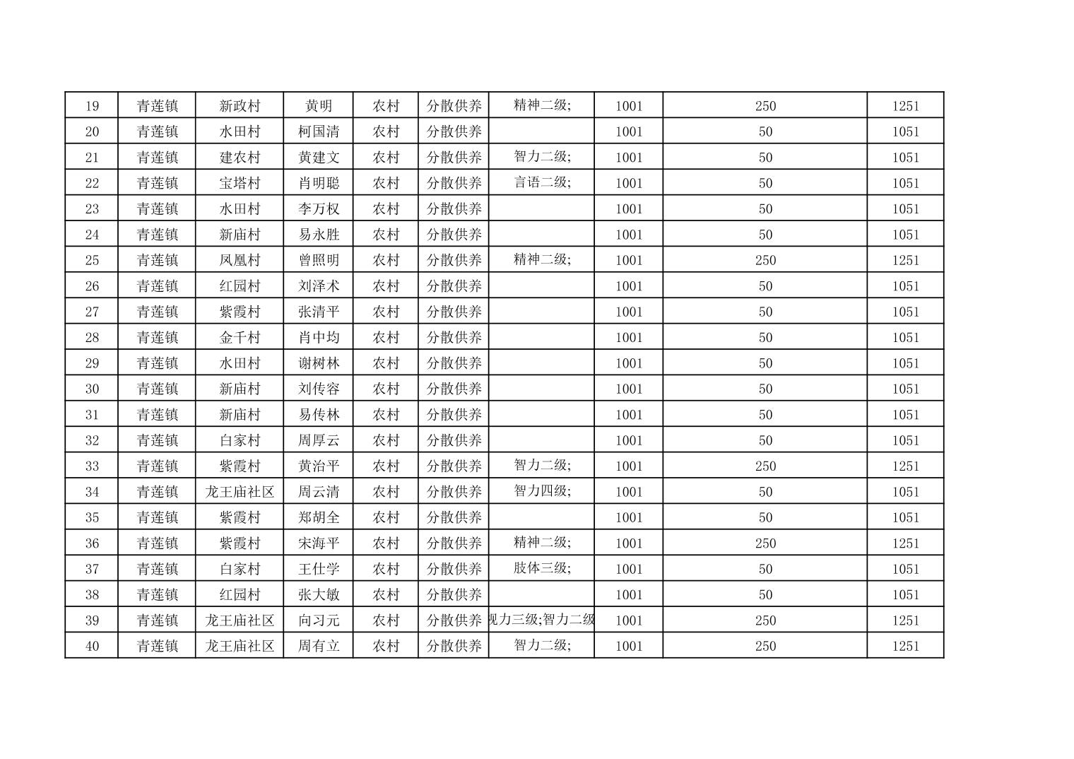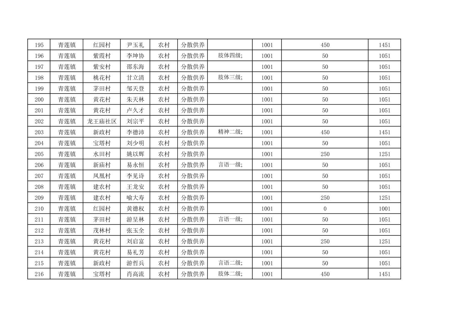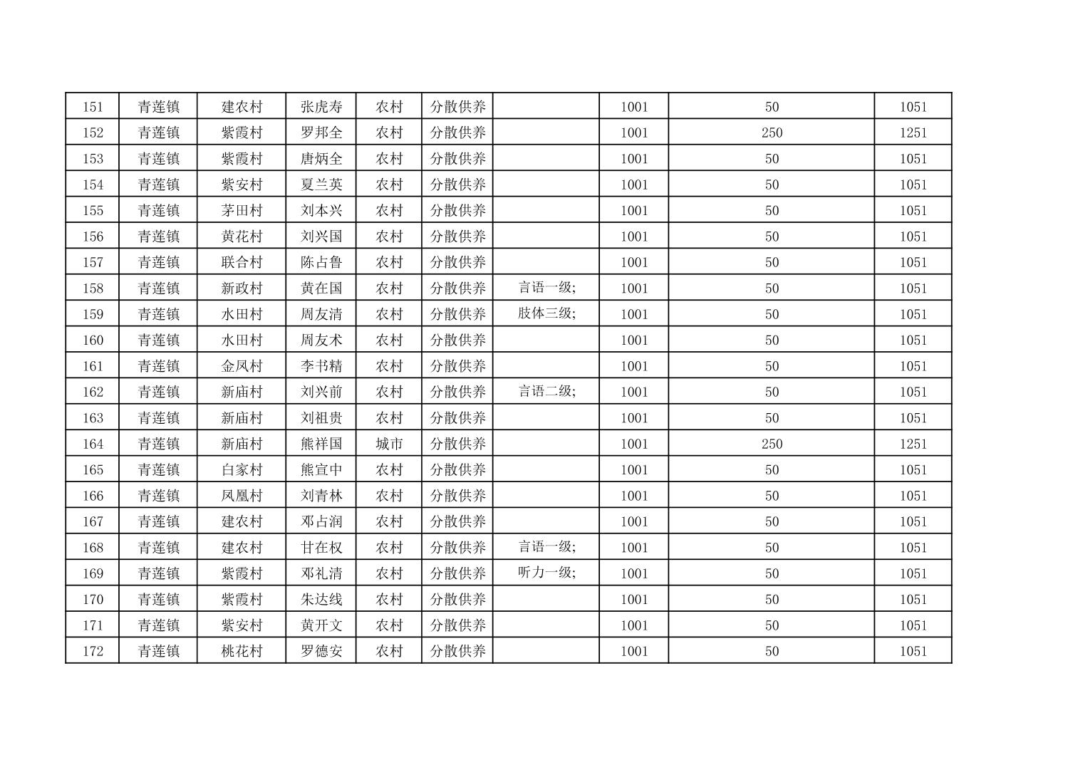 2025年奉节县青莲镇城乡特困人员8月基本生活补贴发放花名册