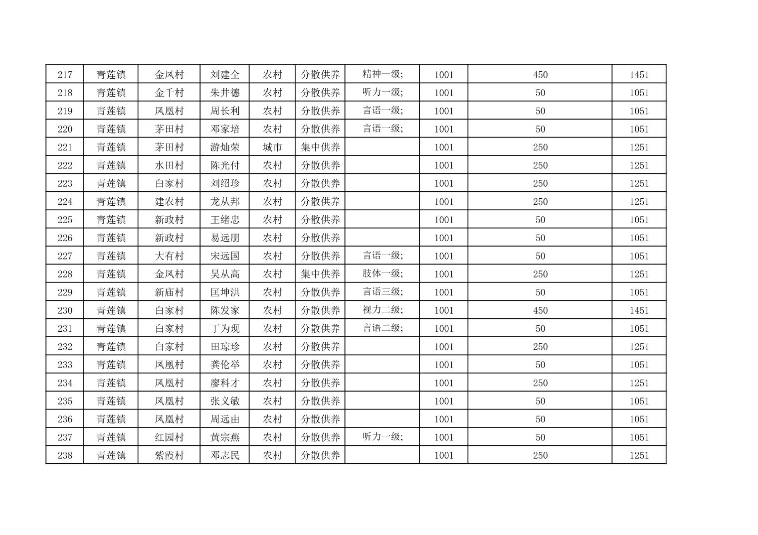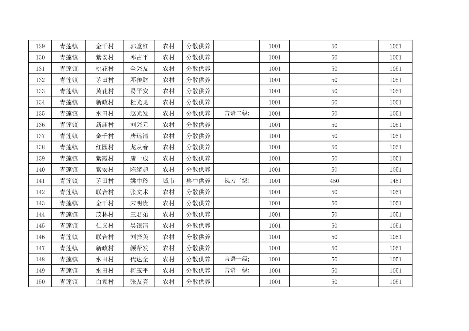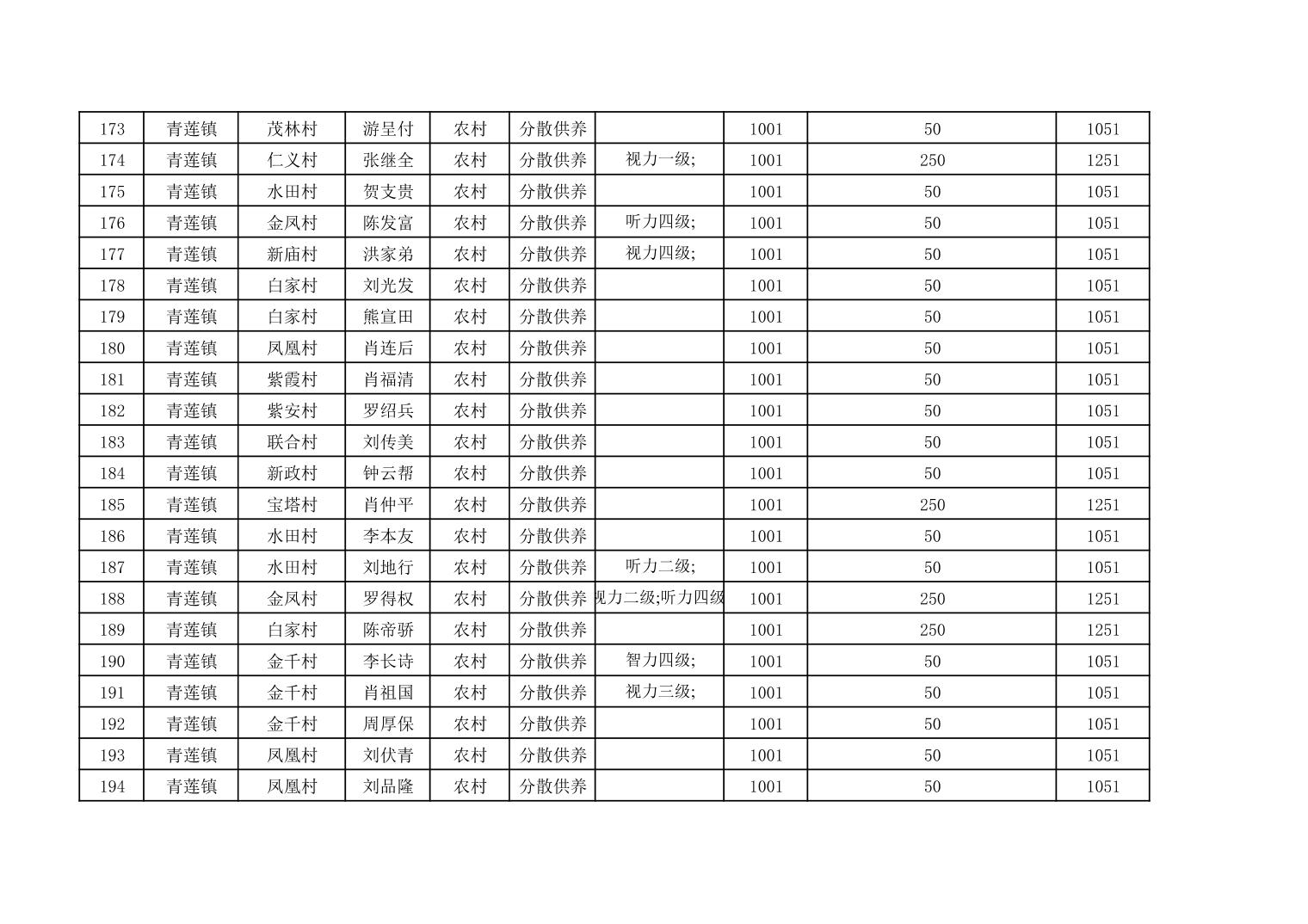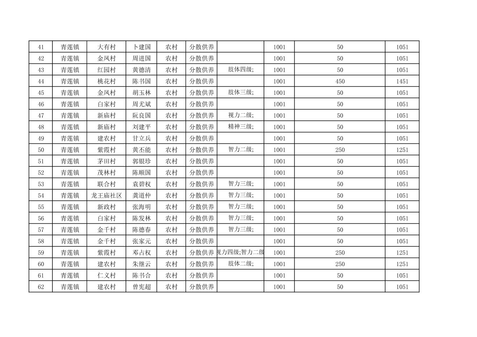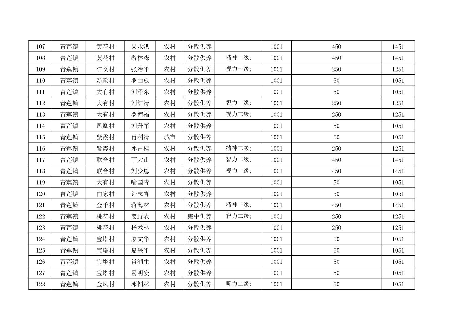 2025年奉节县青莲镇城乡特困人员8月基本生活补贴发放花名册