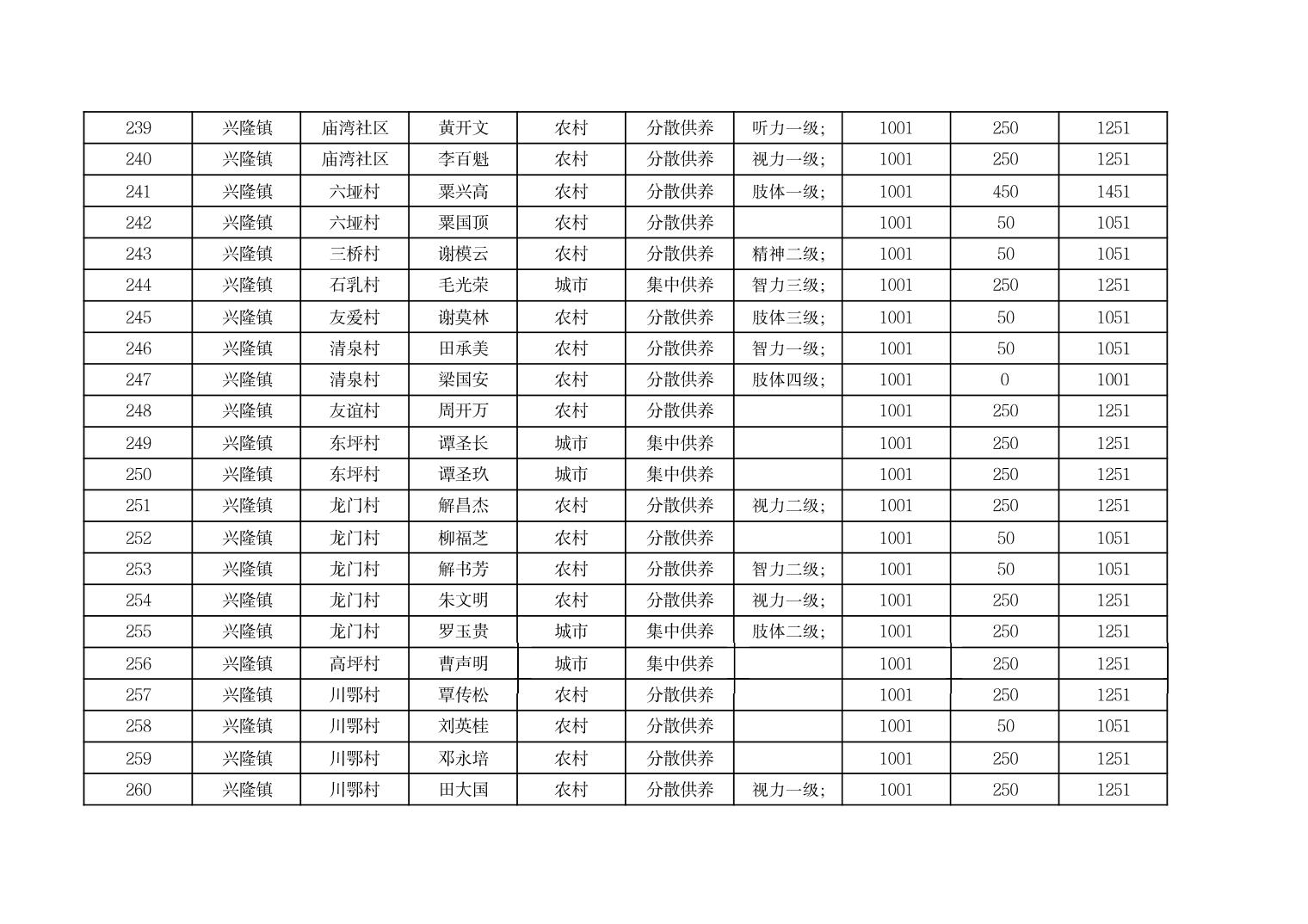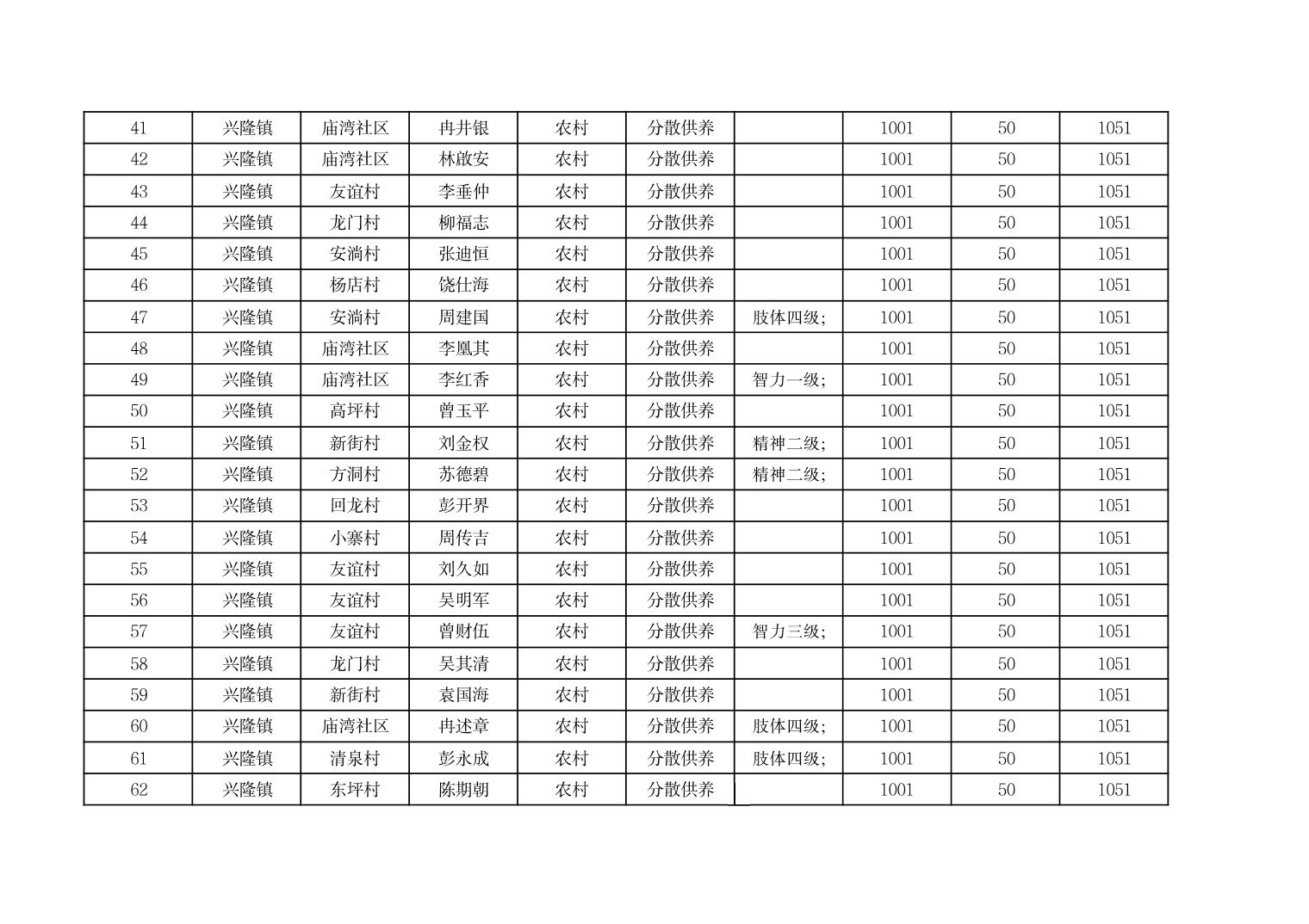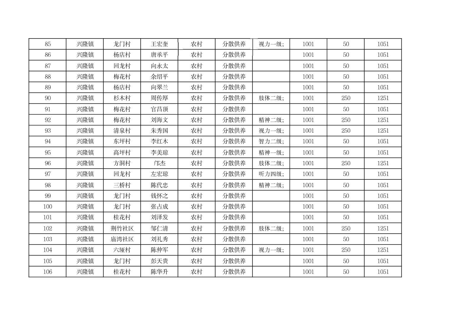 2025年8月份奉节县兴隆镇城乡特困人员基本生活补贴发放花名册