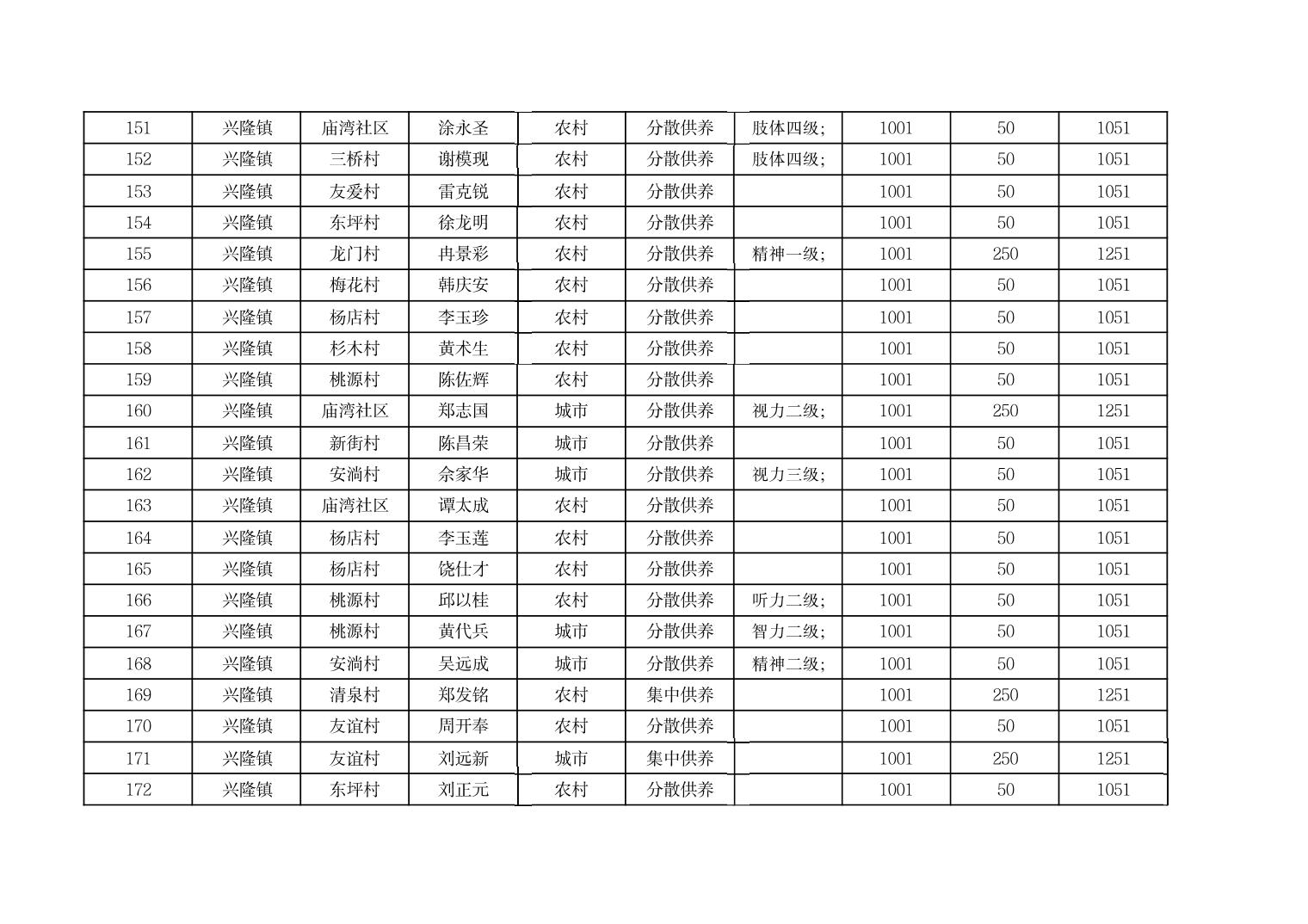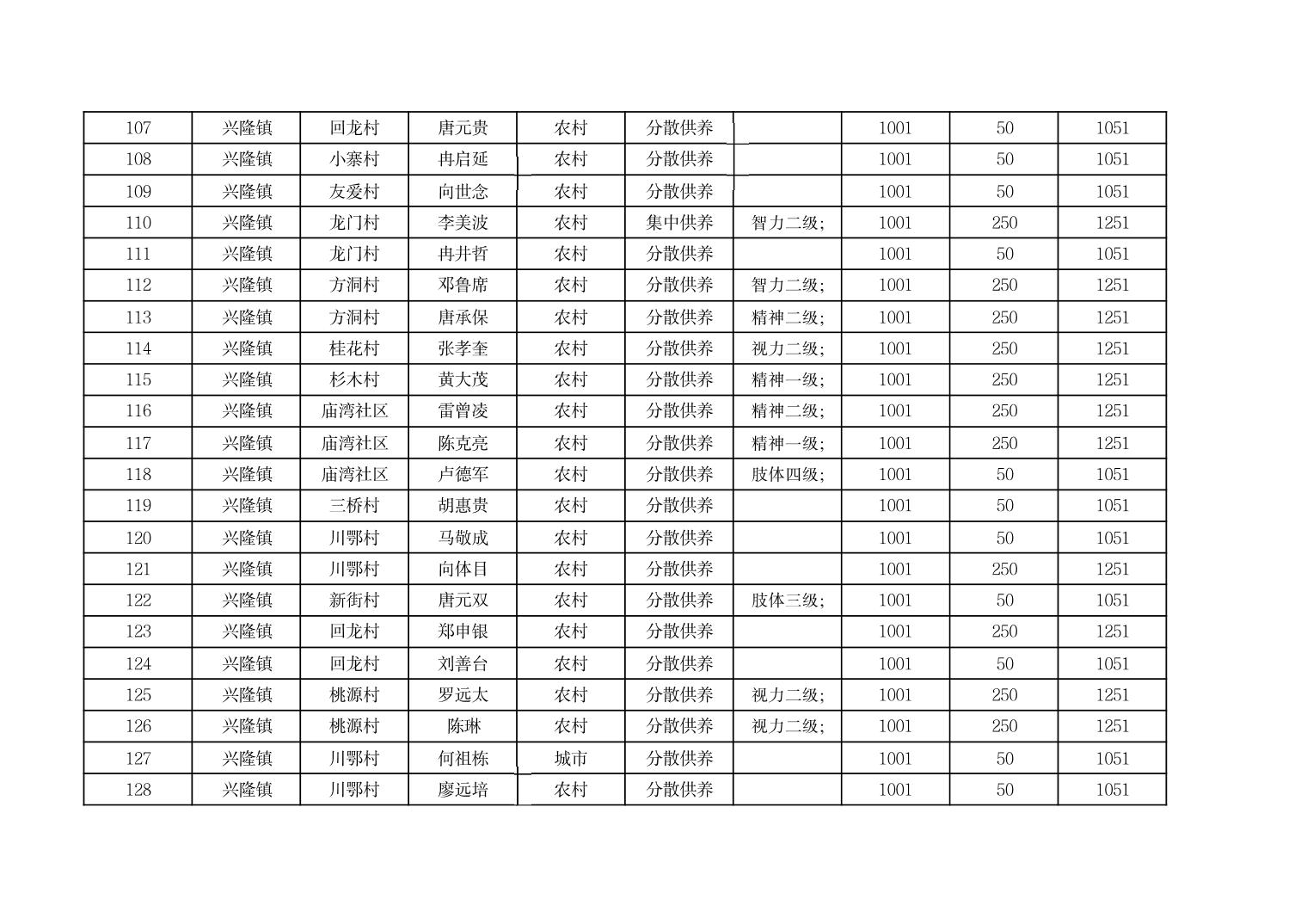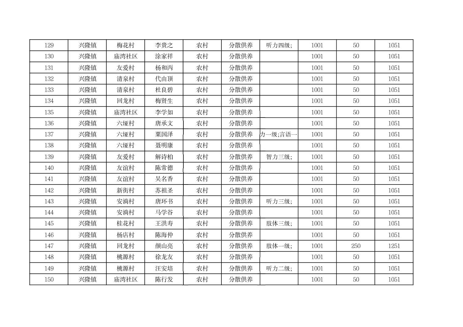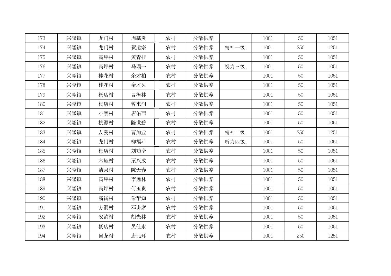 2025年8月份奉节县兴隆镇城乡特困人员基本生活补贴发放花名册