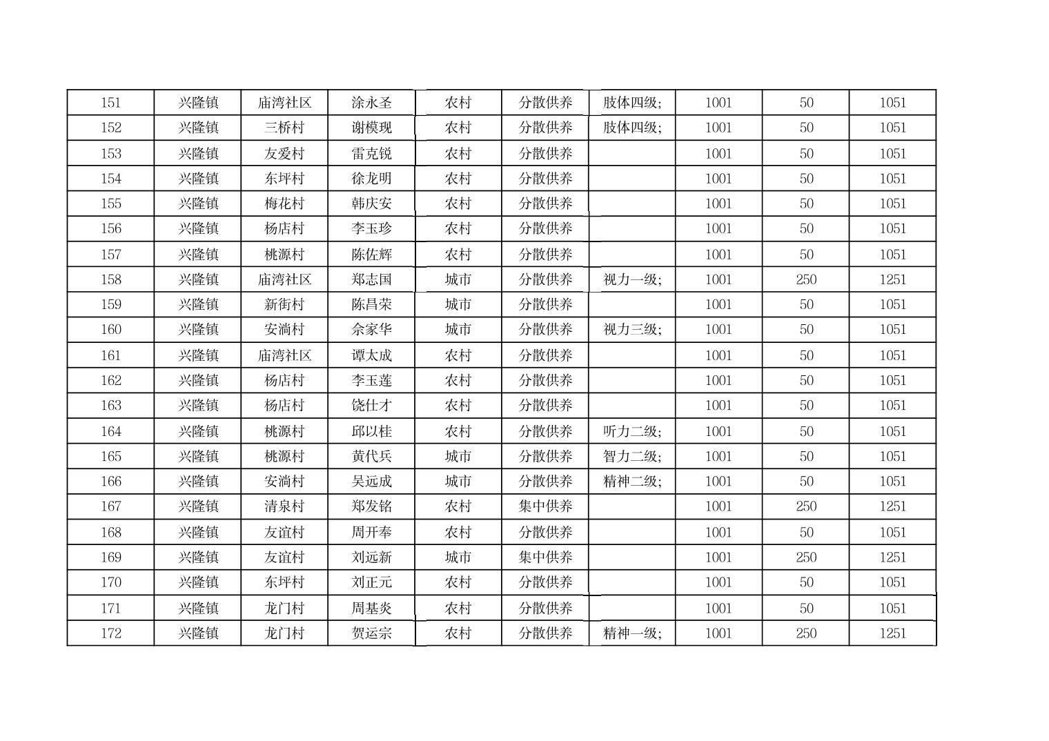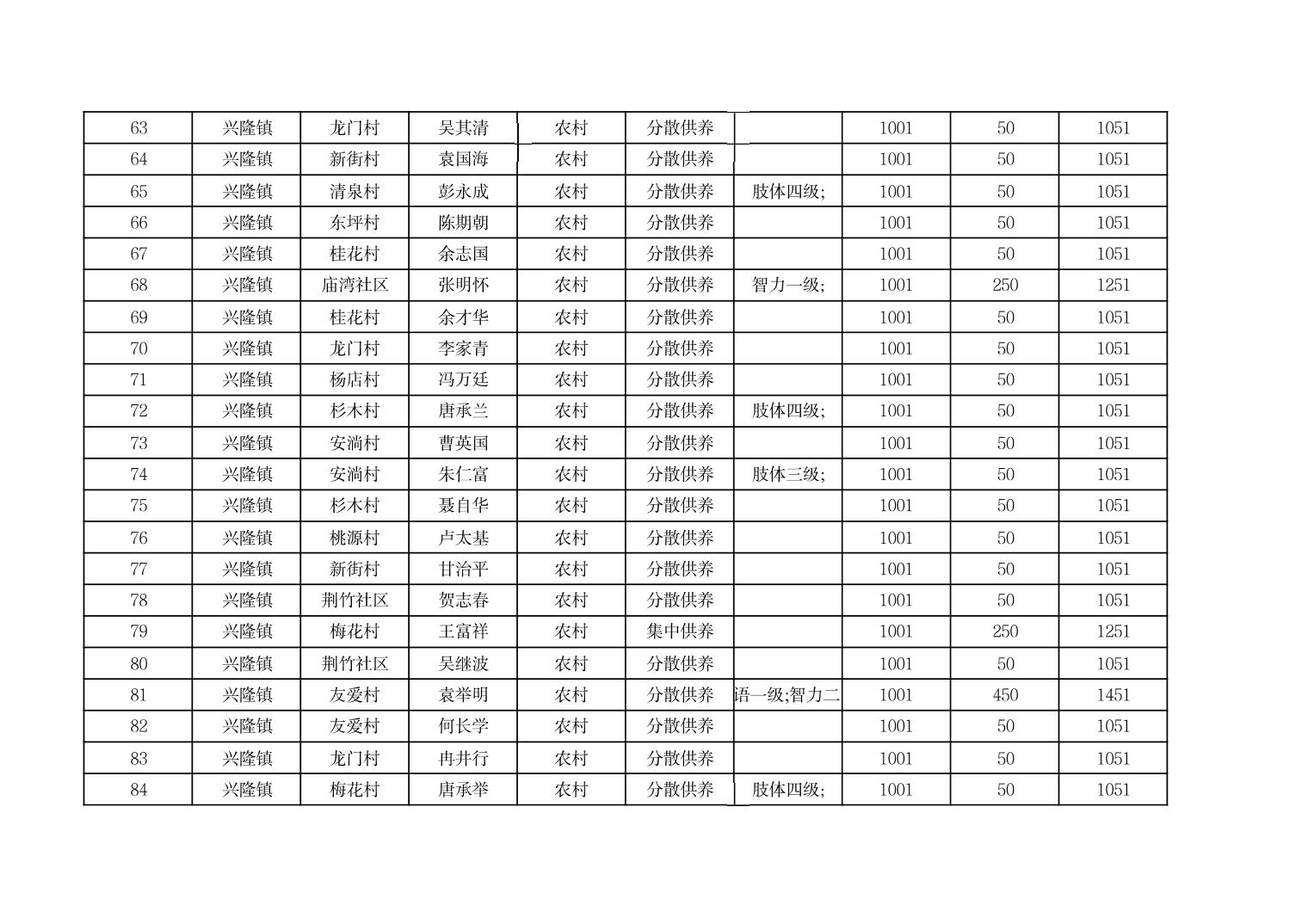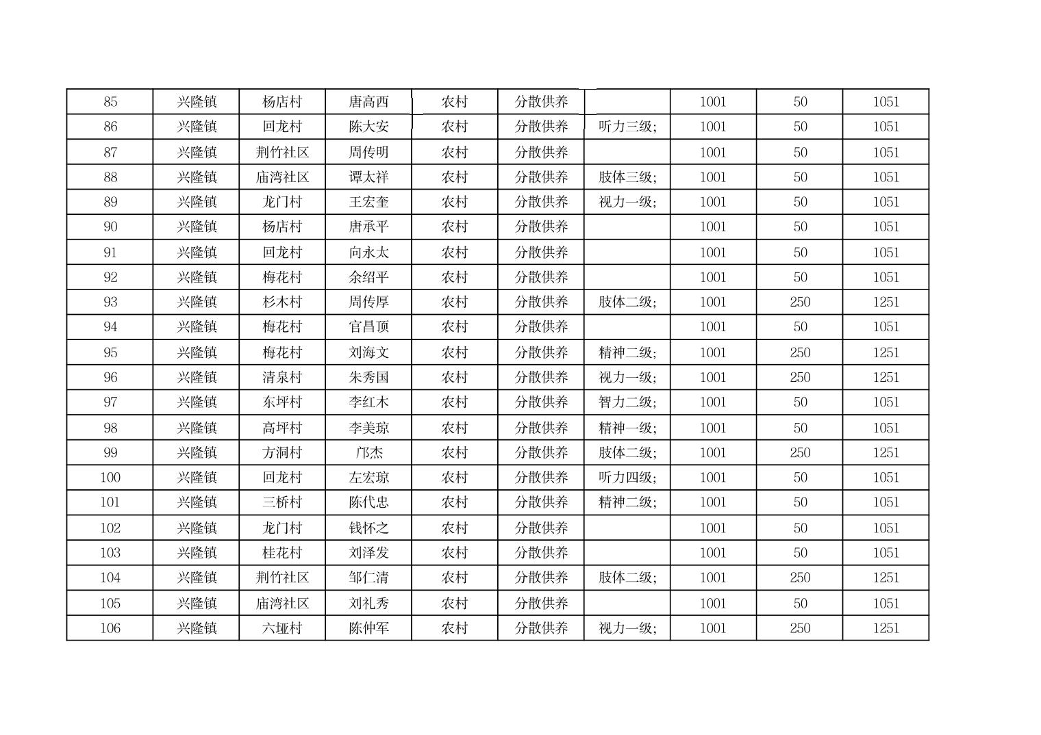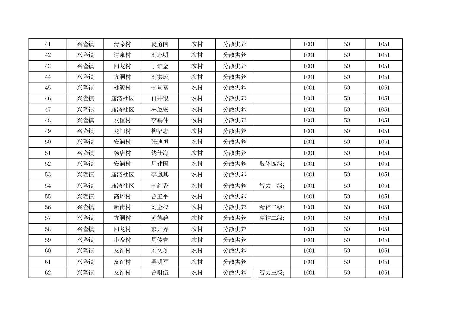 2025年11月份奉节县兴隆镇城乡特困人员基本生活补贴发放花名册