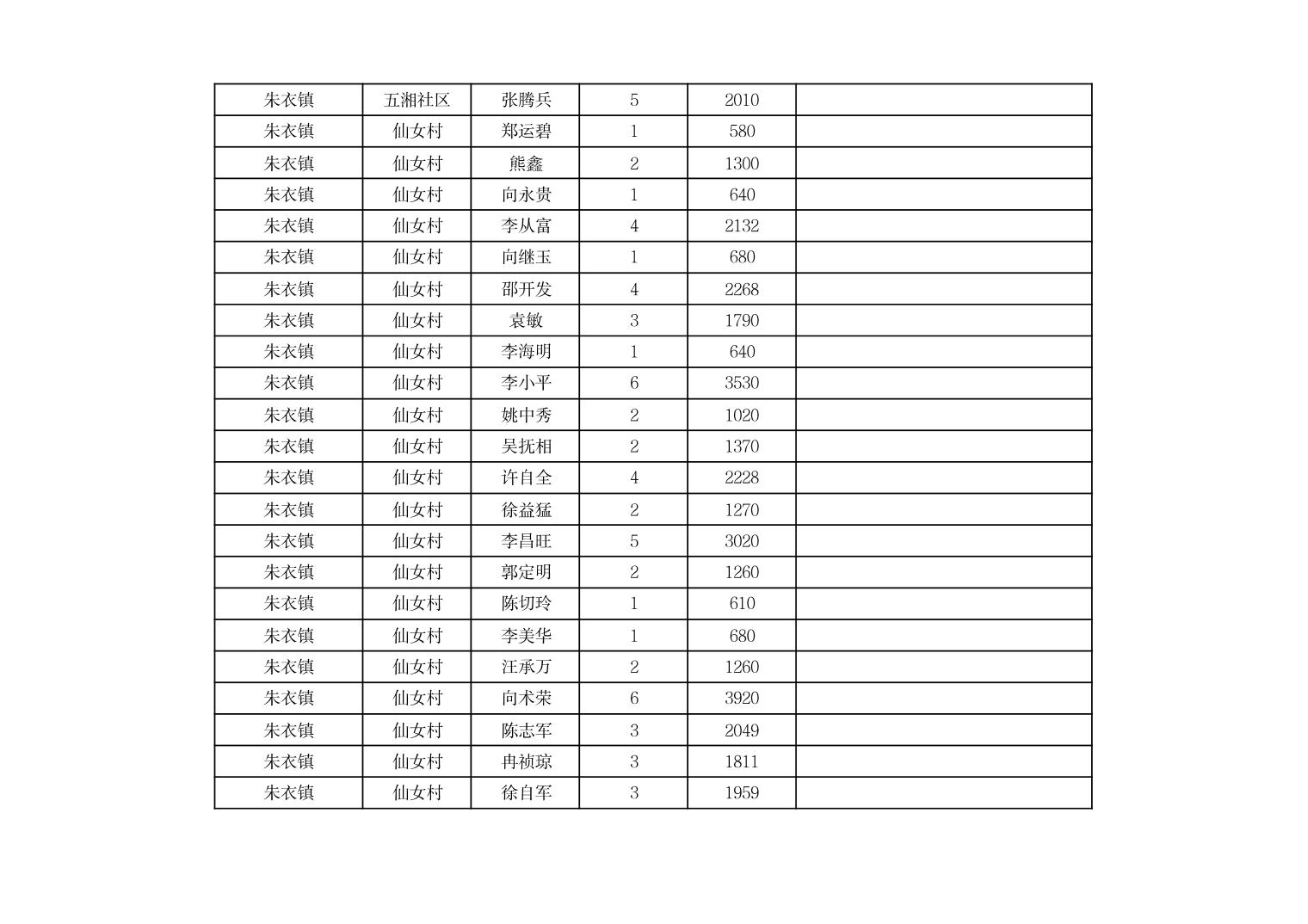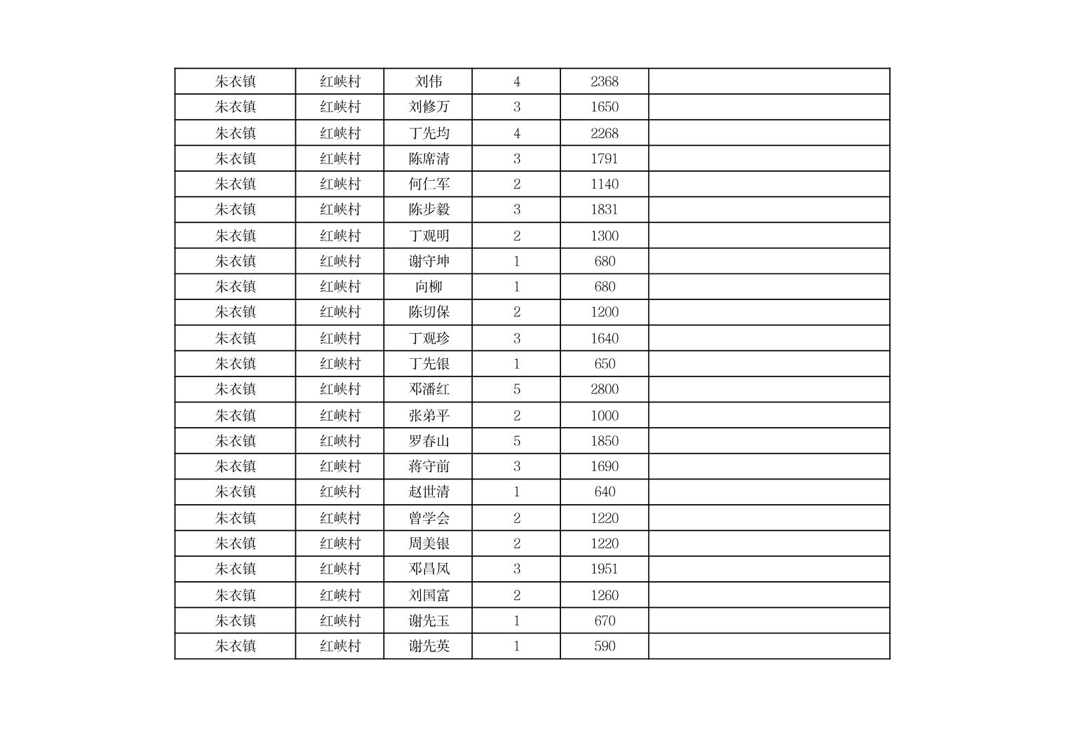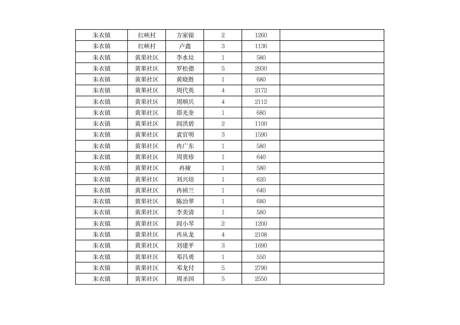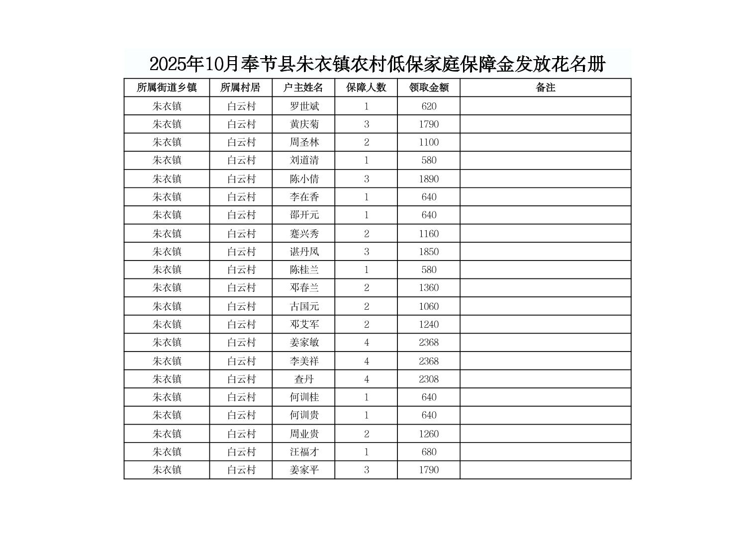 2025年10月奉节县朱衣镇农村低保家庭保障金发放花名册