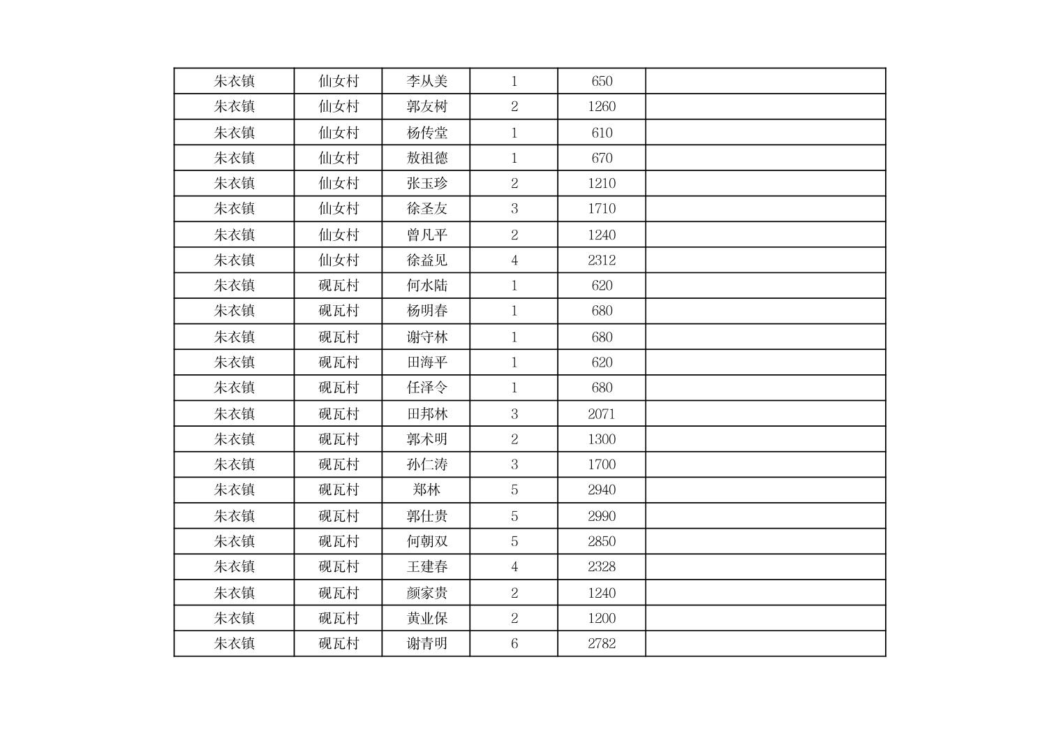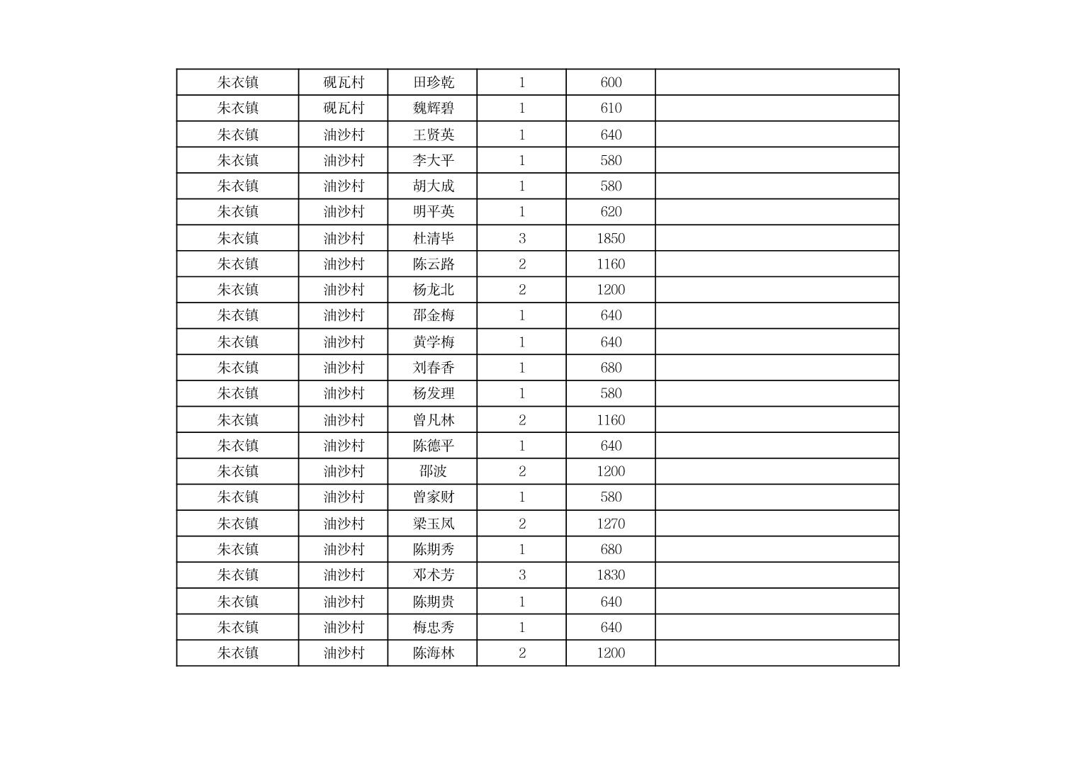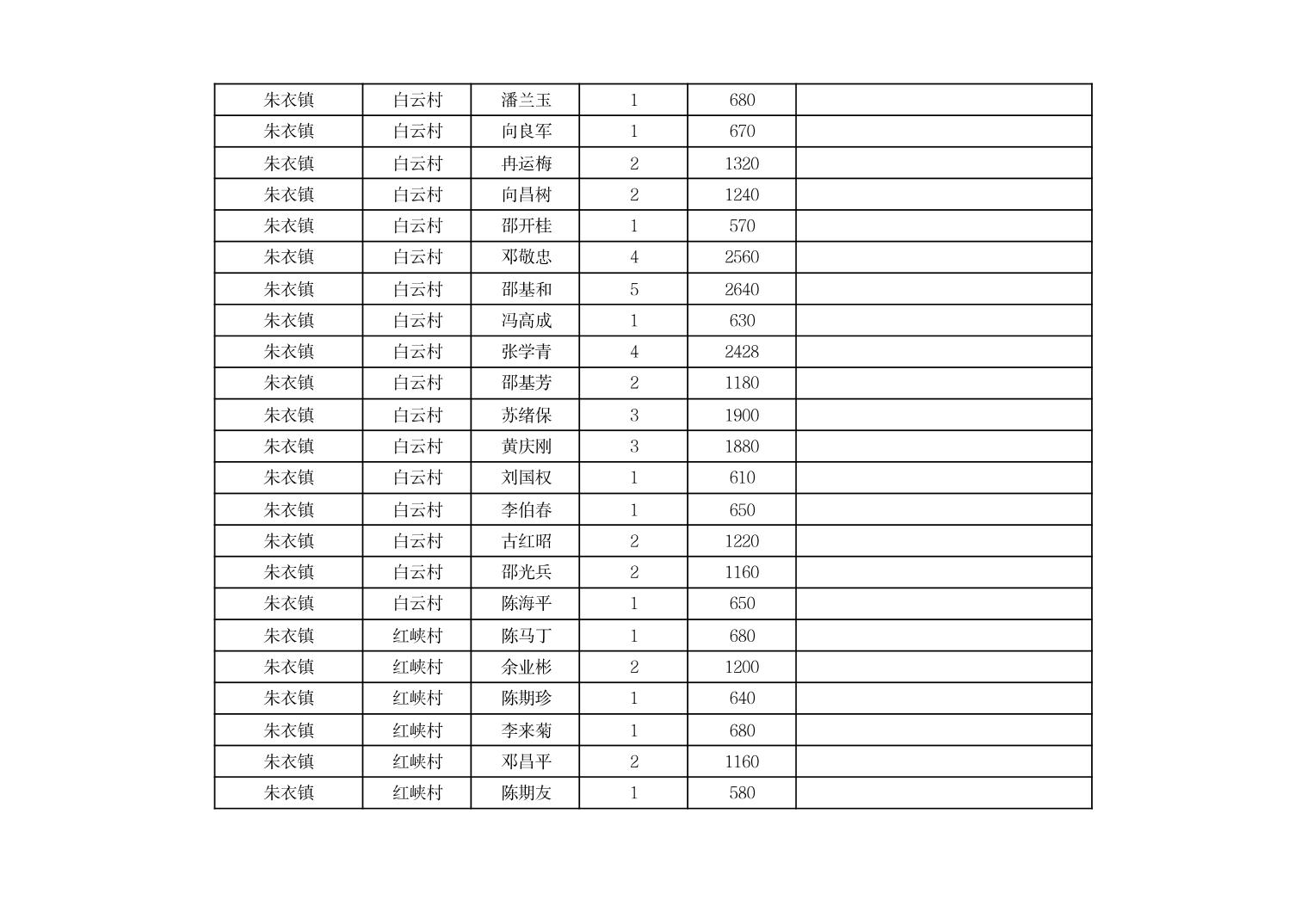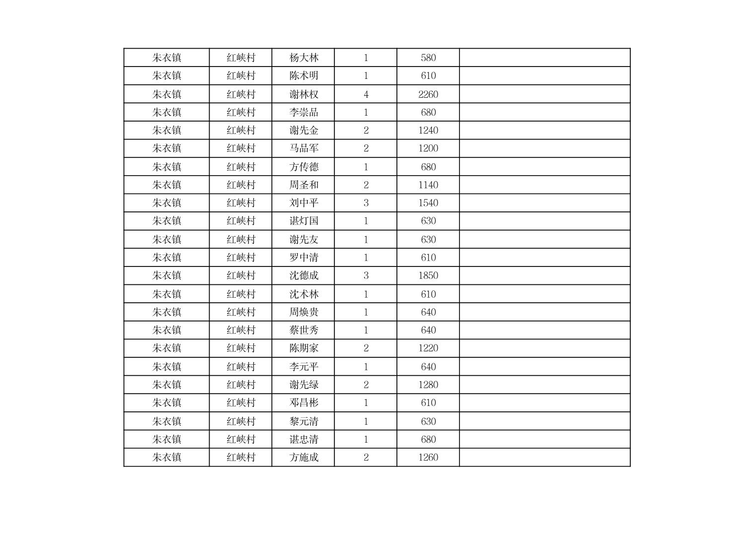 2025年10月奉节县朱衣镇农村低保家庭保障金发放花名册