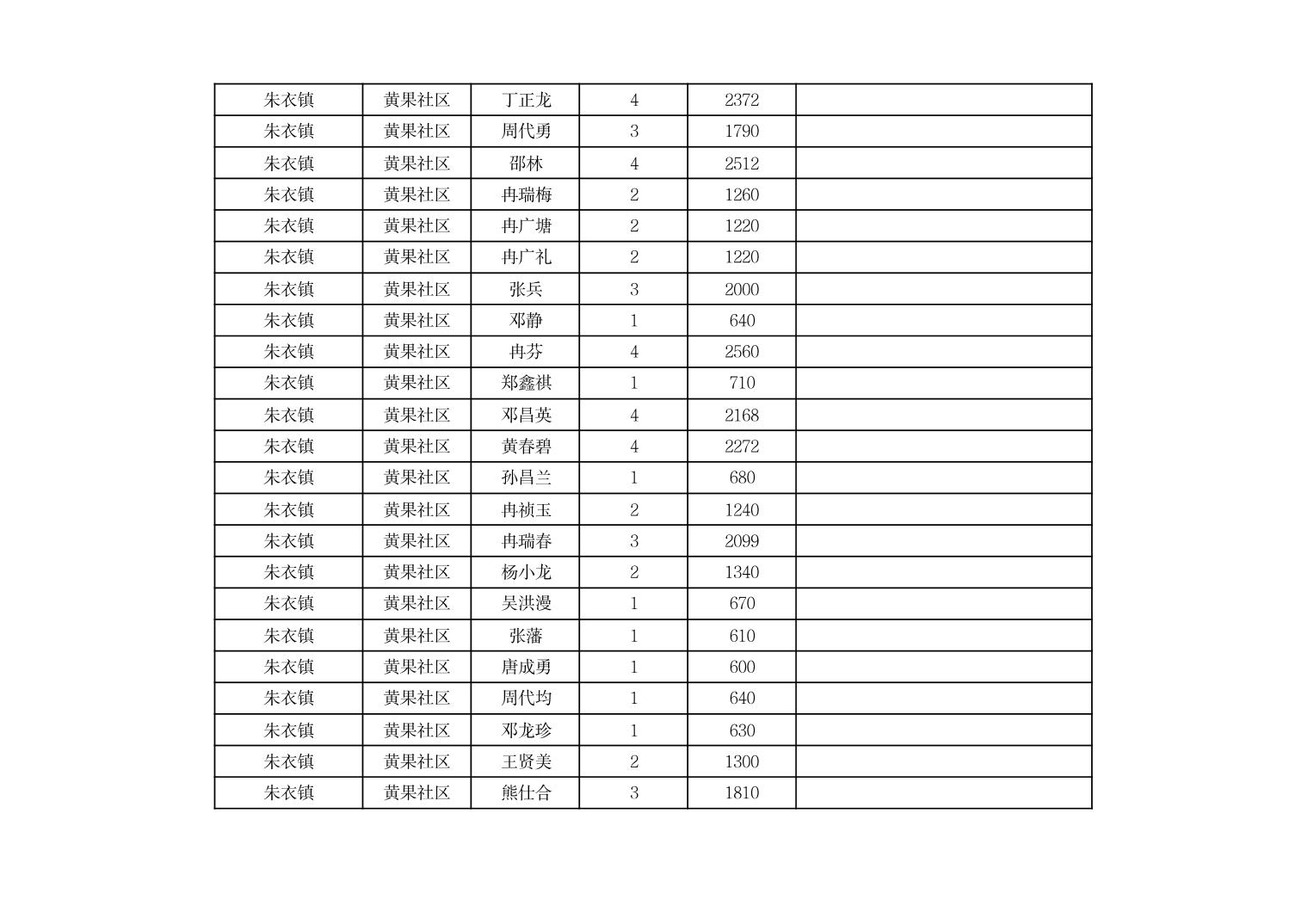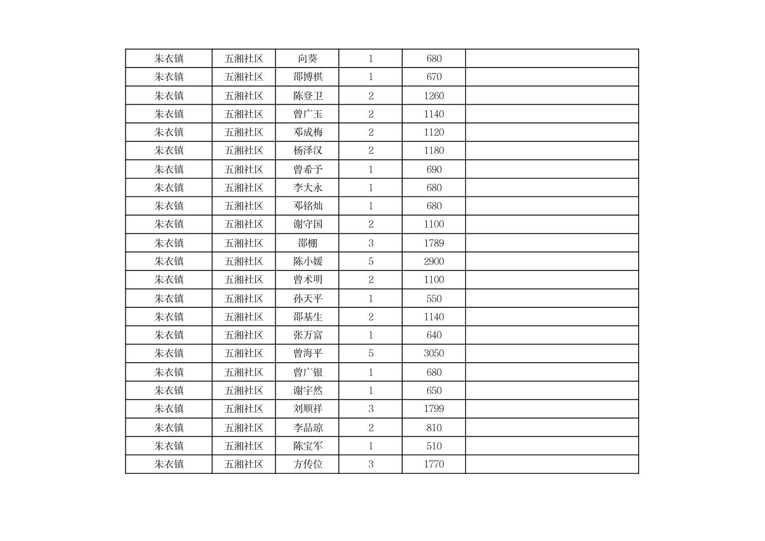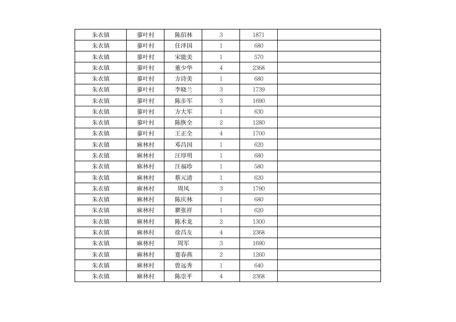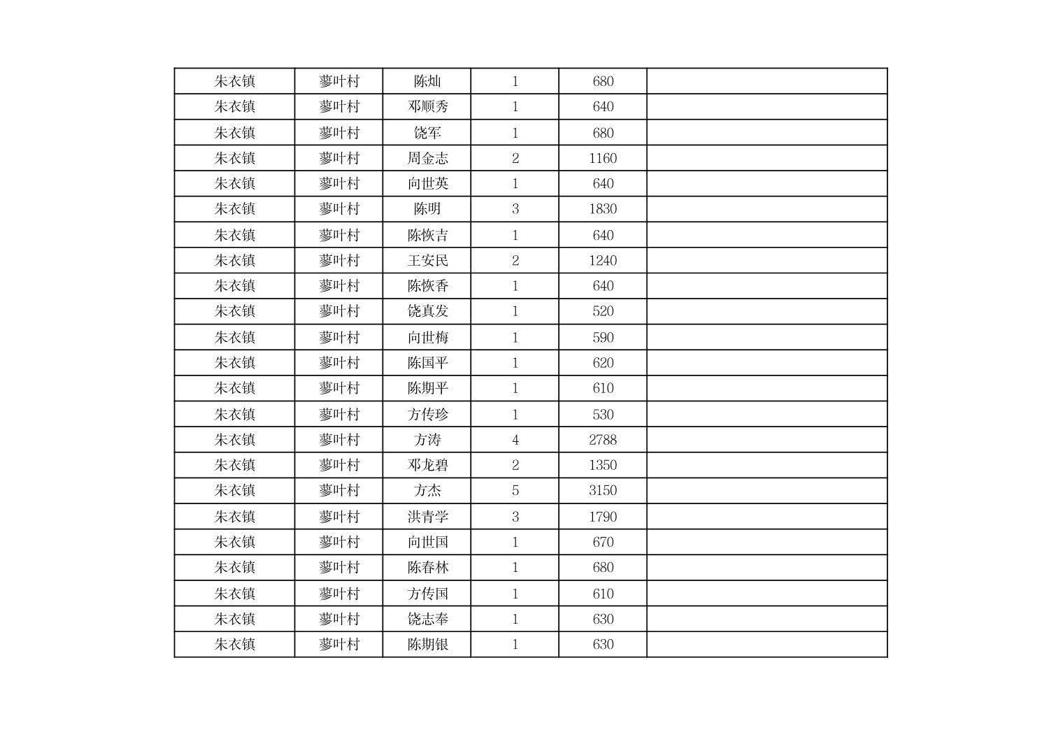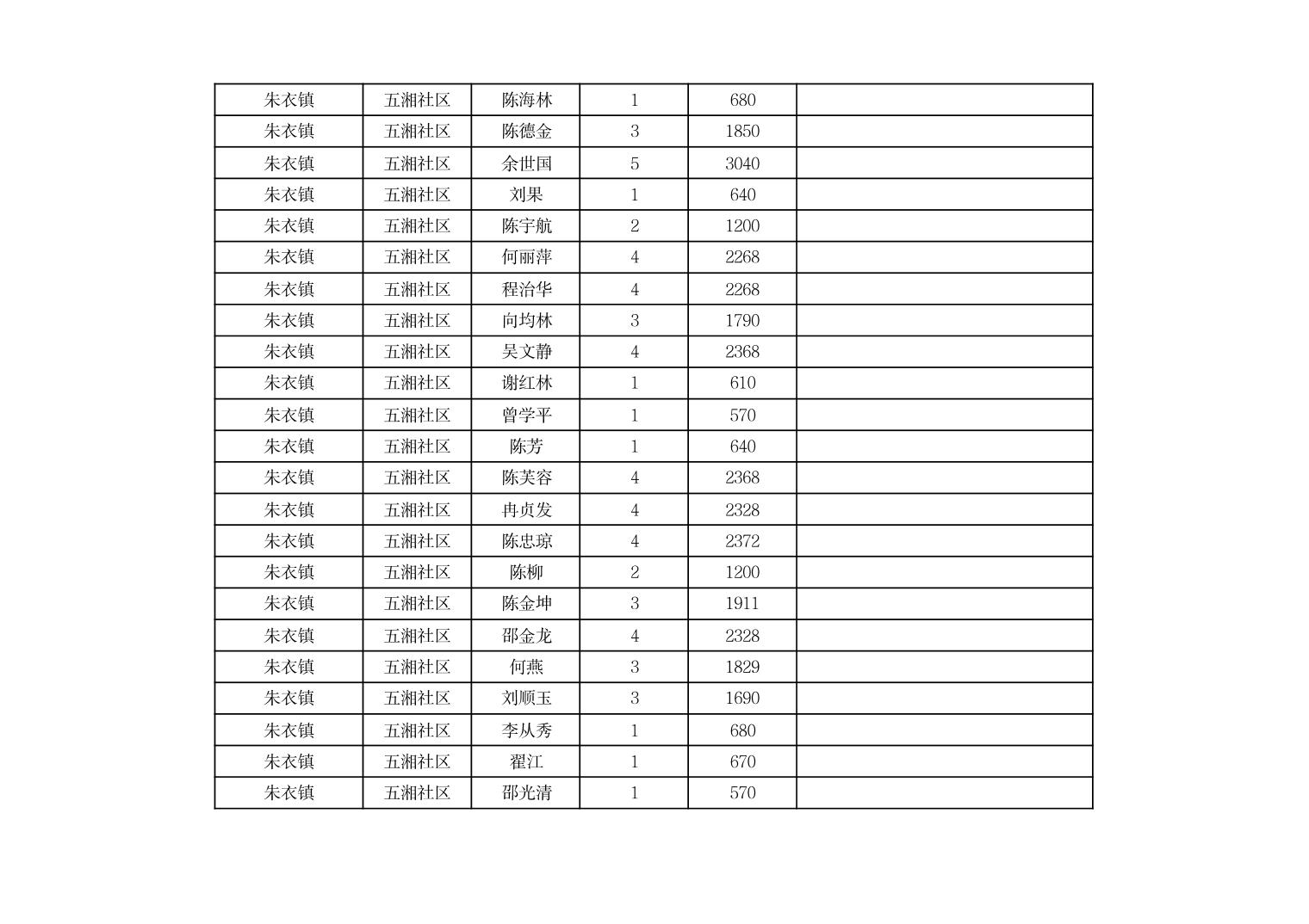 2025年10月奉节县朱衣镇农村低保家庭保障金发放花名册