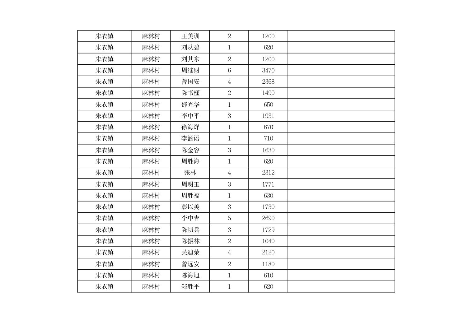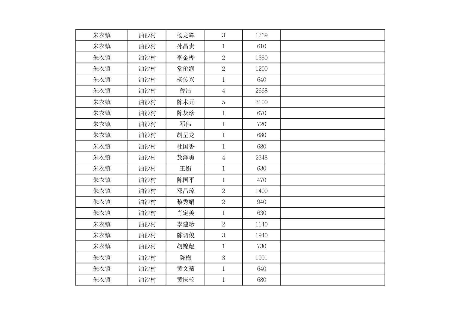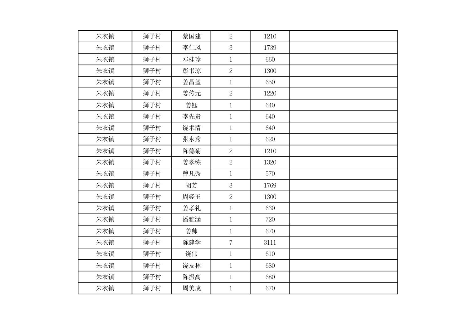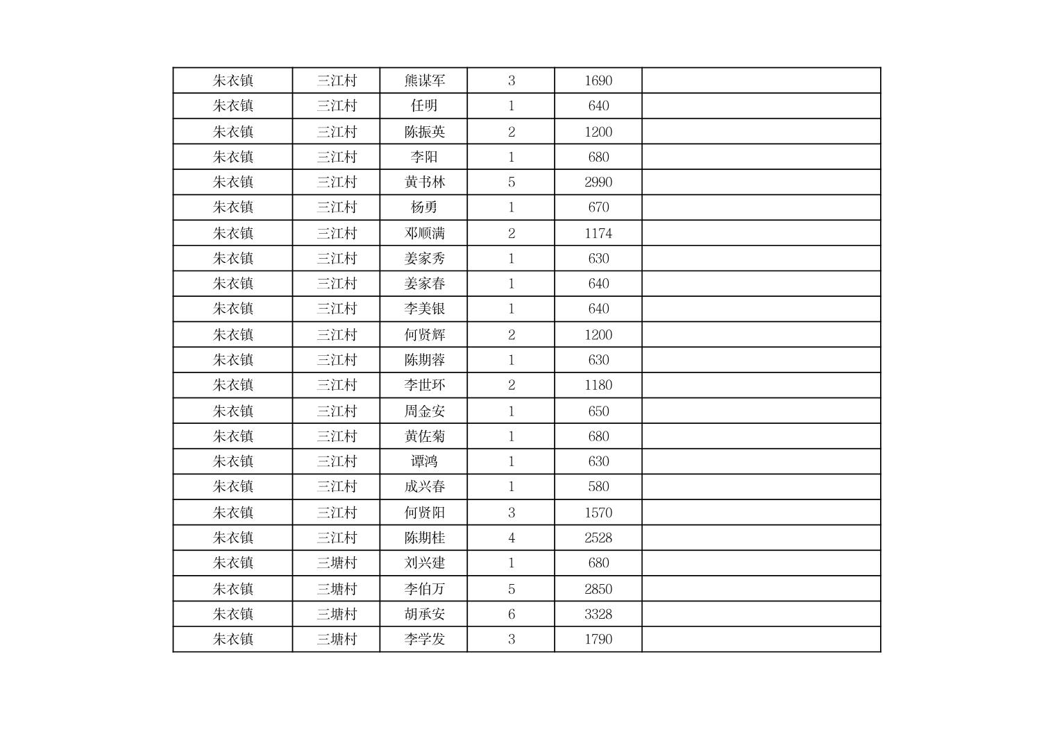 2025年10月奉节县朱衣镇农村低保家庭保障金发放花名册