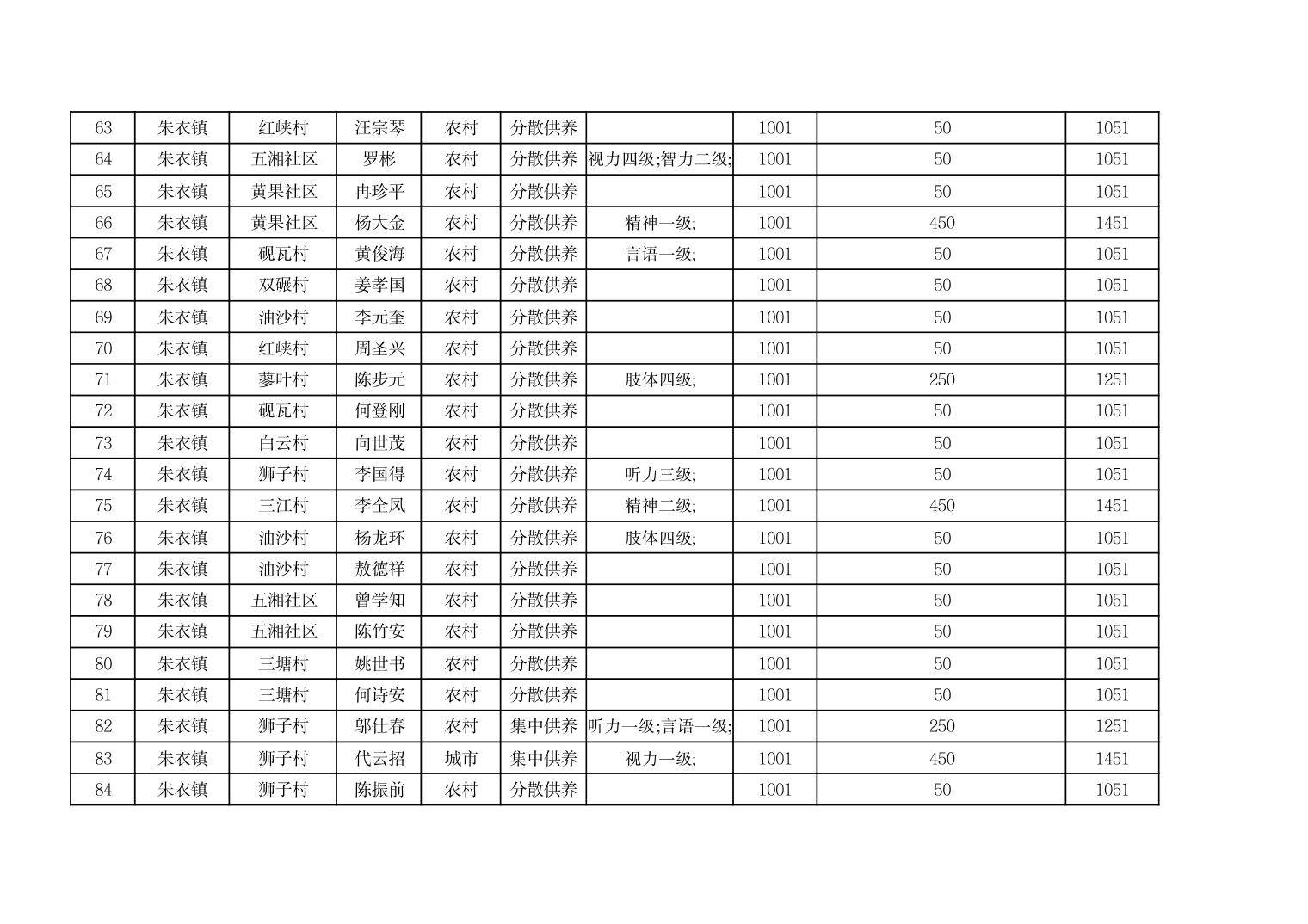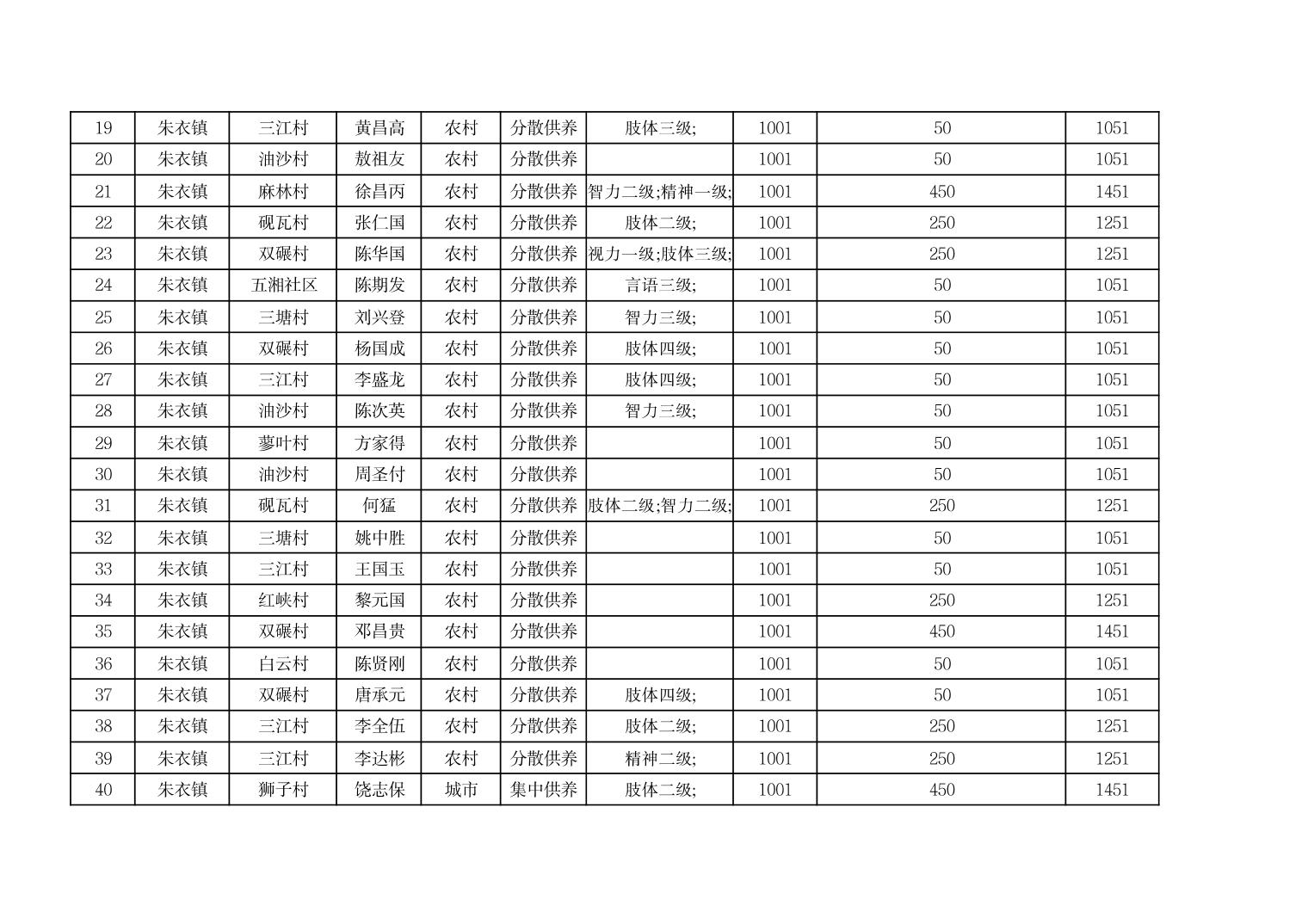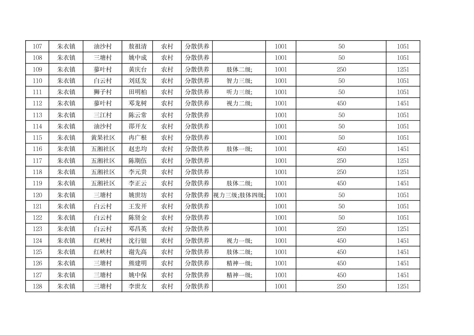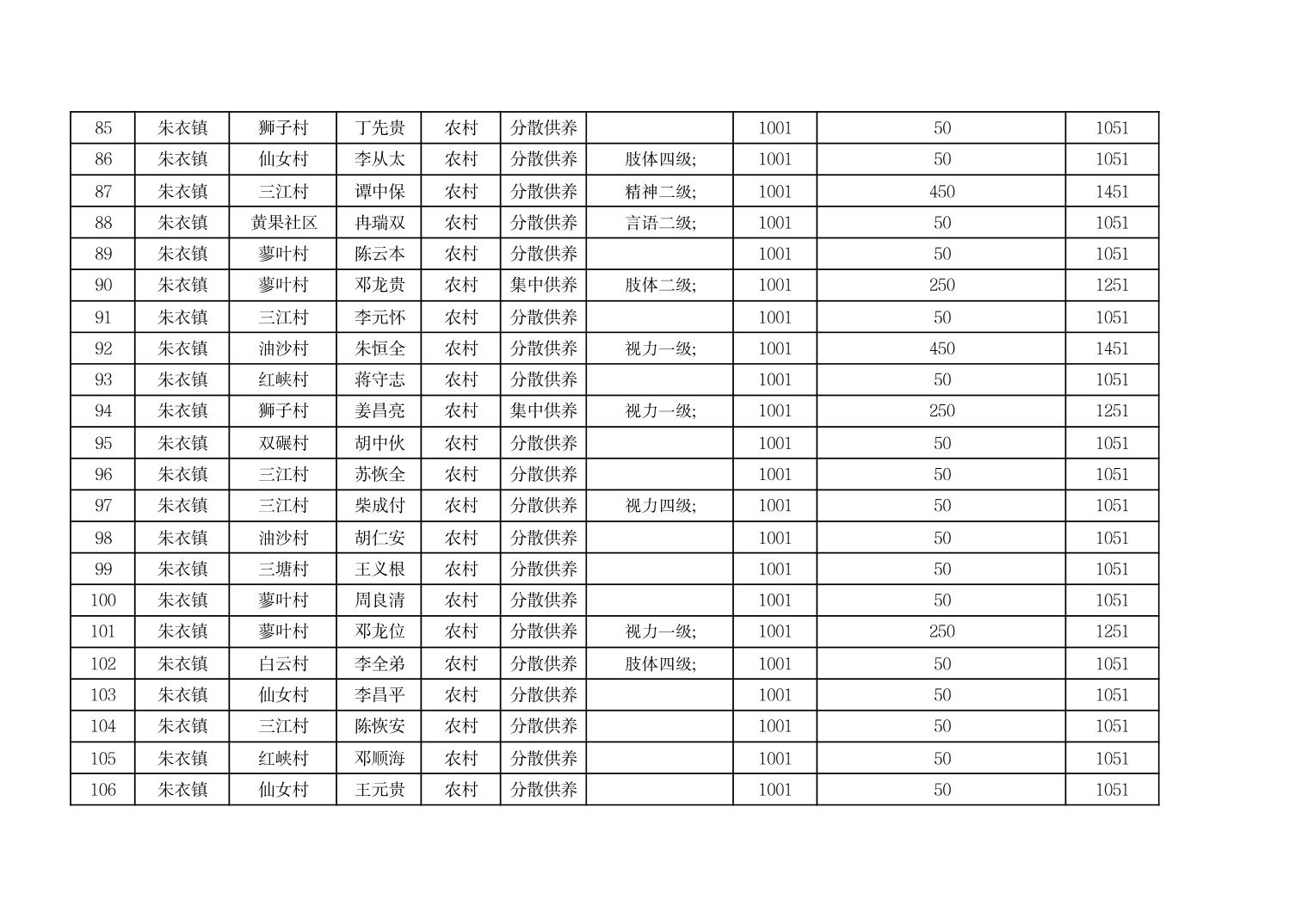 2025年10月奉节县朱衣镇城乡特困人员基本生活补贴发放花名册
