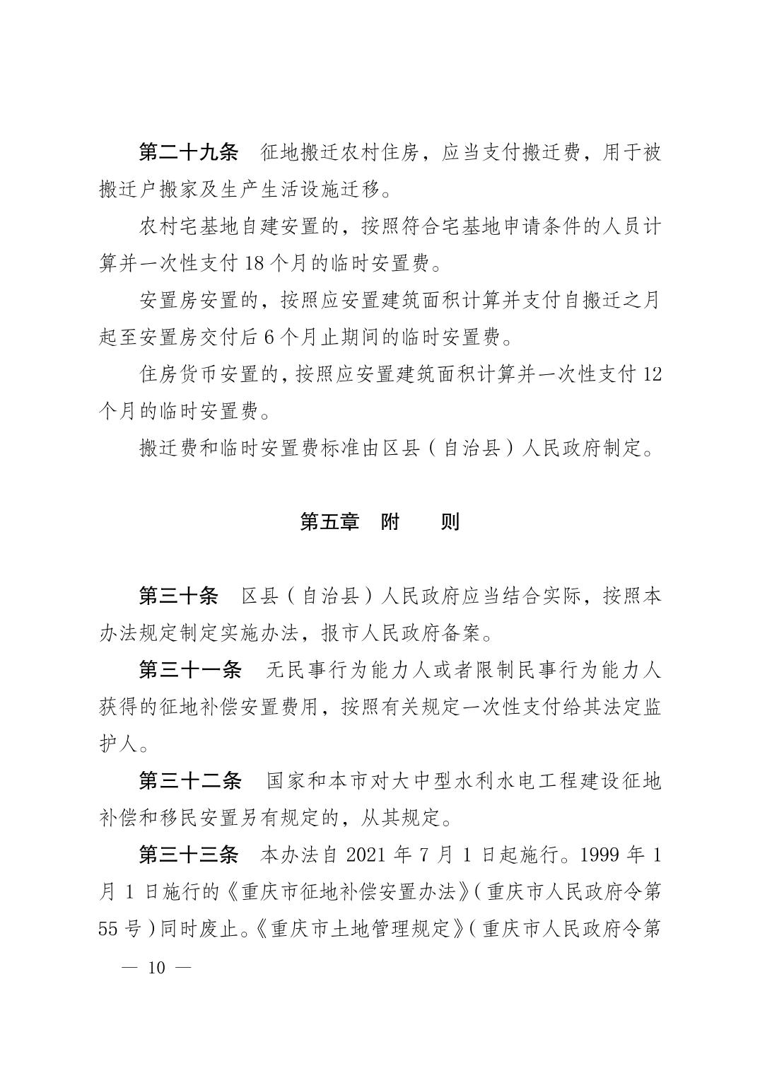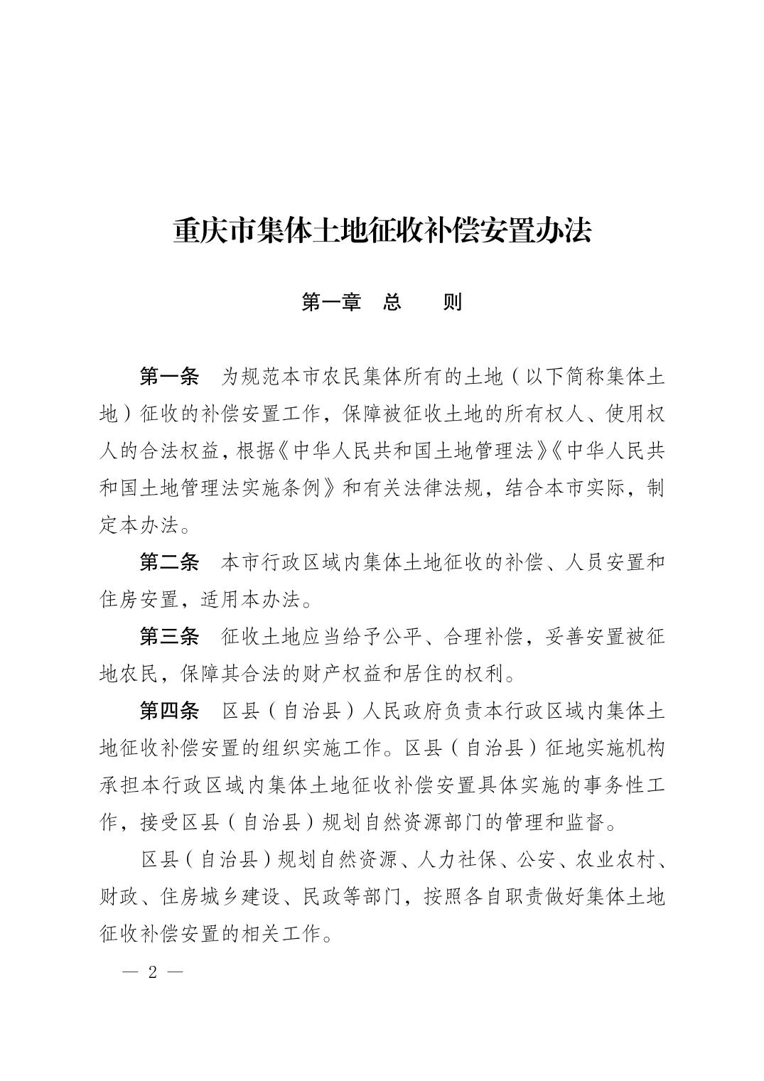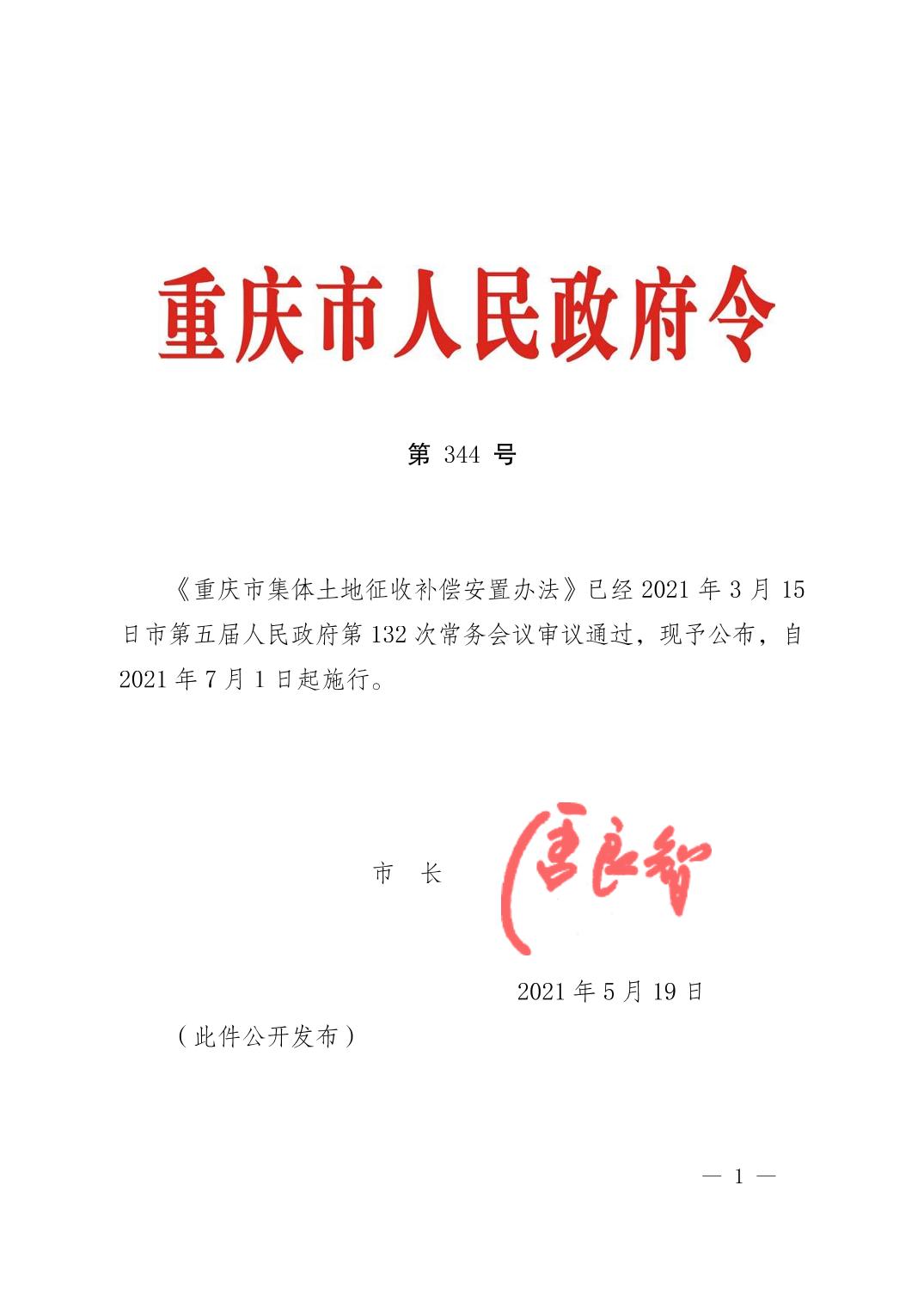 重庆市集体土地征收补偿安置办法(重庆市人民政府令第344号)