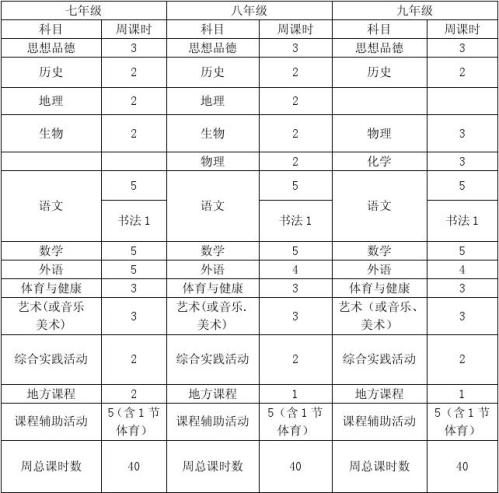 2.重庆市初中课程安排表(渝教基〔2012〕21号)