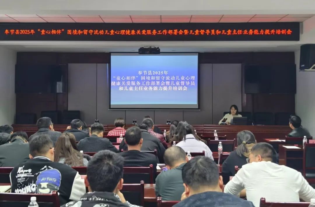 近日,奉节县民政局召开 2025 年 “童心相伴” 困境和留守流动儿童心理健康关爱服务工作部署会暨儿童督导员和儿童主任业务能力提升培训会。此次会议旨在进一步加强对困境和留守流动儿童的关爱保护,全面提升基层儿童队伍的业务能力和服务水平。全县 33 个乡镇(街道)儿童督导员参加会议。