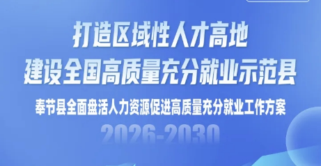 中共奉节县委组织部 奉节县人力资源和社会保障局 关于印发《奉节县全面盘活人力资源促进高质量充分就业工作方案(2026—2030年)》 的通知