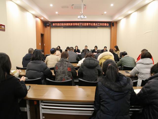 1月30日,奉节县妇幼保健院召开新领导班子见面暨节后重点工作部署会,会议由医院党支部书记朱怀燕主持,领导班子和中层干部参加会议。