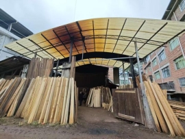 木材加工厂位于吐祥镇龙泉社区(图1),木材加工厂以立柱为基础形墙,顶上搭彩钢棚。事发位置位于木材加工厂进门左转处(图2)。