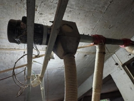 养猪场共有两层(图1),事发位置位于猪舍第一层,猪舍过道上方安装绞龙式自动料线,陈再*悬挂位置位于驱动端出料口(图2),驱动端出料口下方距离地面约1.86米,上方(盖子处)距离地面约2.06米。