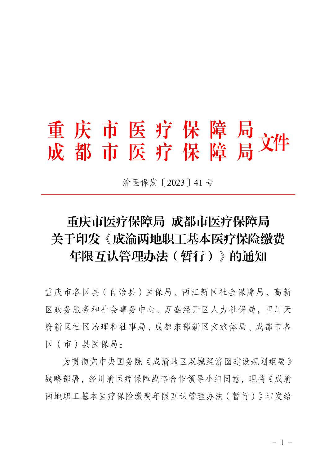 重庆市医疗保障局 成都市医疗保障局关于印发《成渝两地职工基本医疗保险缴费年限互认管理办法(暂行)》的通知.pdf