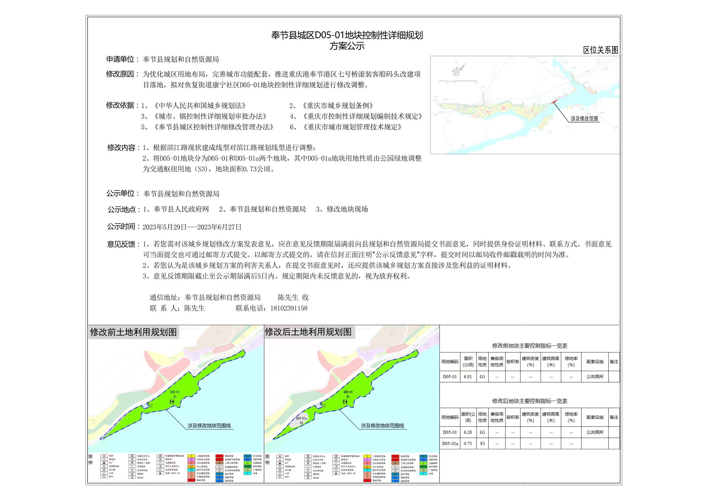 奉节县城区D05-01等地块控制性详细规划修改方案公示