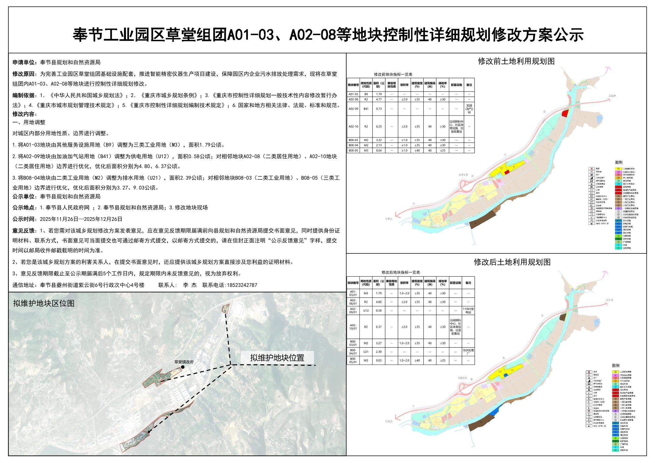 奉节工业园区草堂组团A01-03、A02-08等地块控制性详细规划修改方案公示