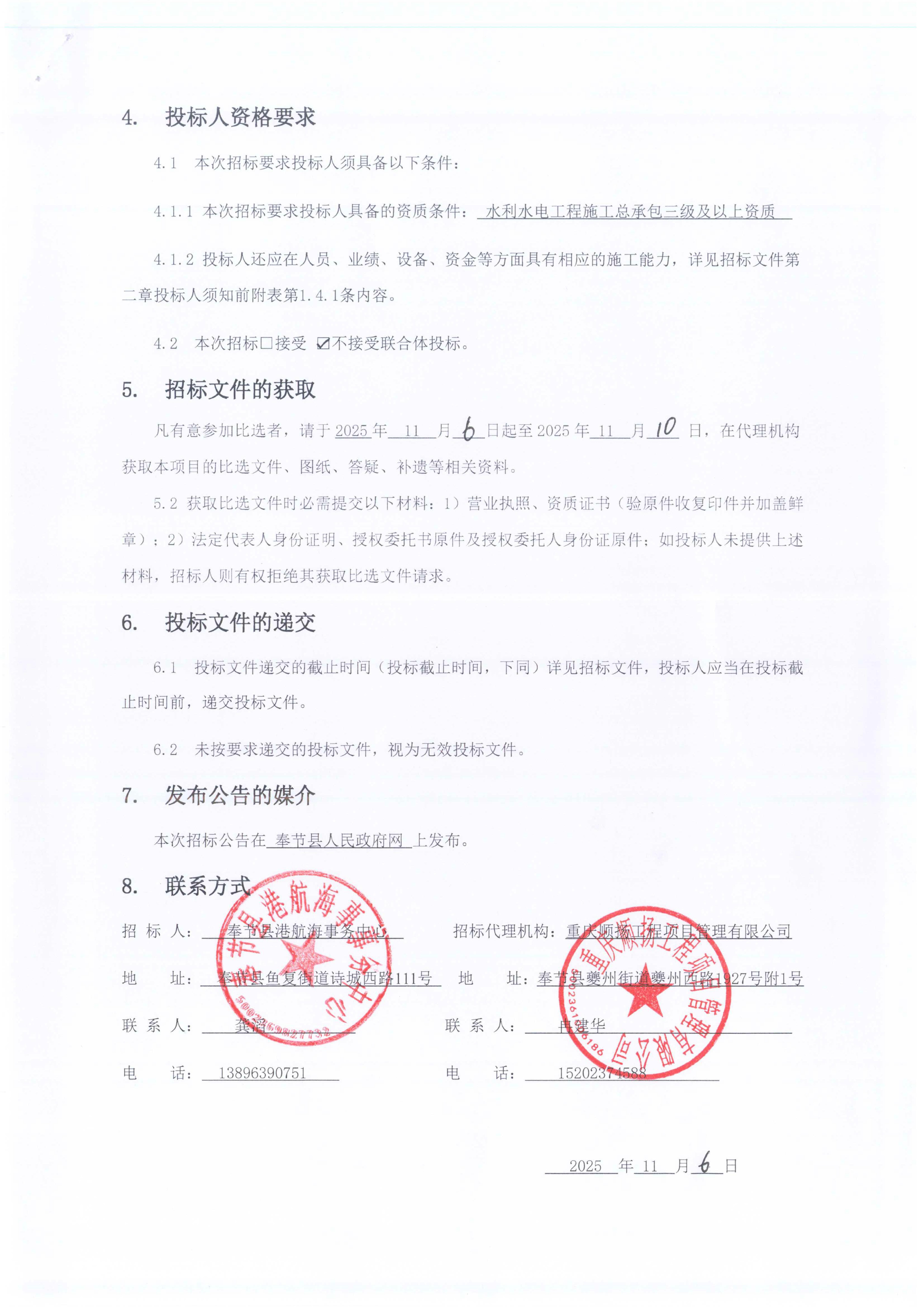 奉节县地方航道危岩地灾隐患警示牌建设工程竞争性比选公告