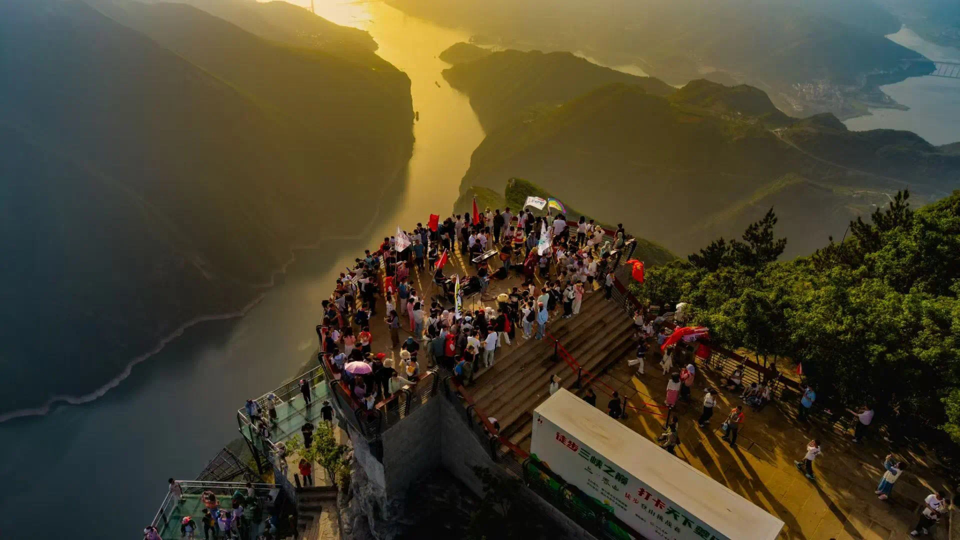 游客登顶赏景