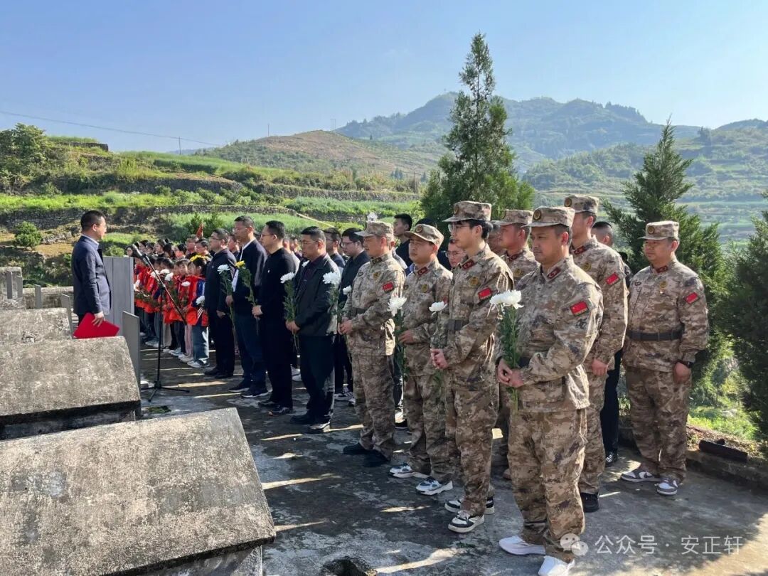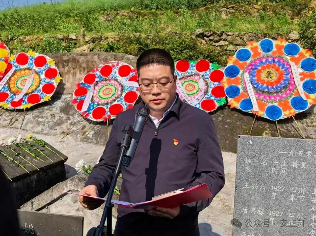 镇党委书记袁义在讲话中强调三点:一是坚定理想信念、传承红色基因,将爱国情、强国志融入日常工作与学习;二是勇于担当作为、立足岗位奉献,机关干部、社区干部、公安干警要各司其职、履职尽责;三是严守纪律作风、弘扬优良传统,以先烈为镜,艰苦奋斗、廉洁自律、团结奋进,以饱满精神推动安坪镇各项工作再上新台阶。