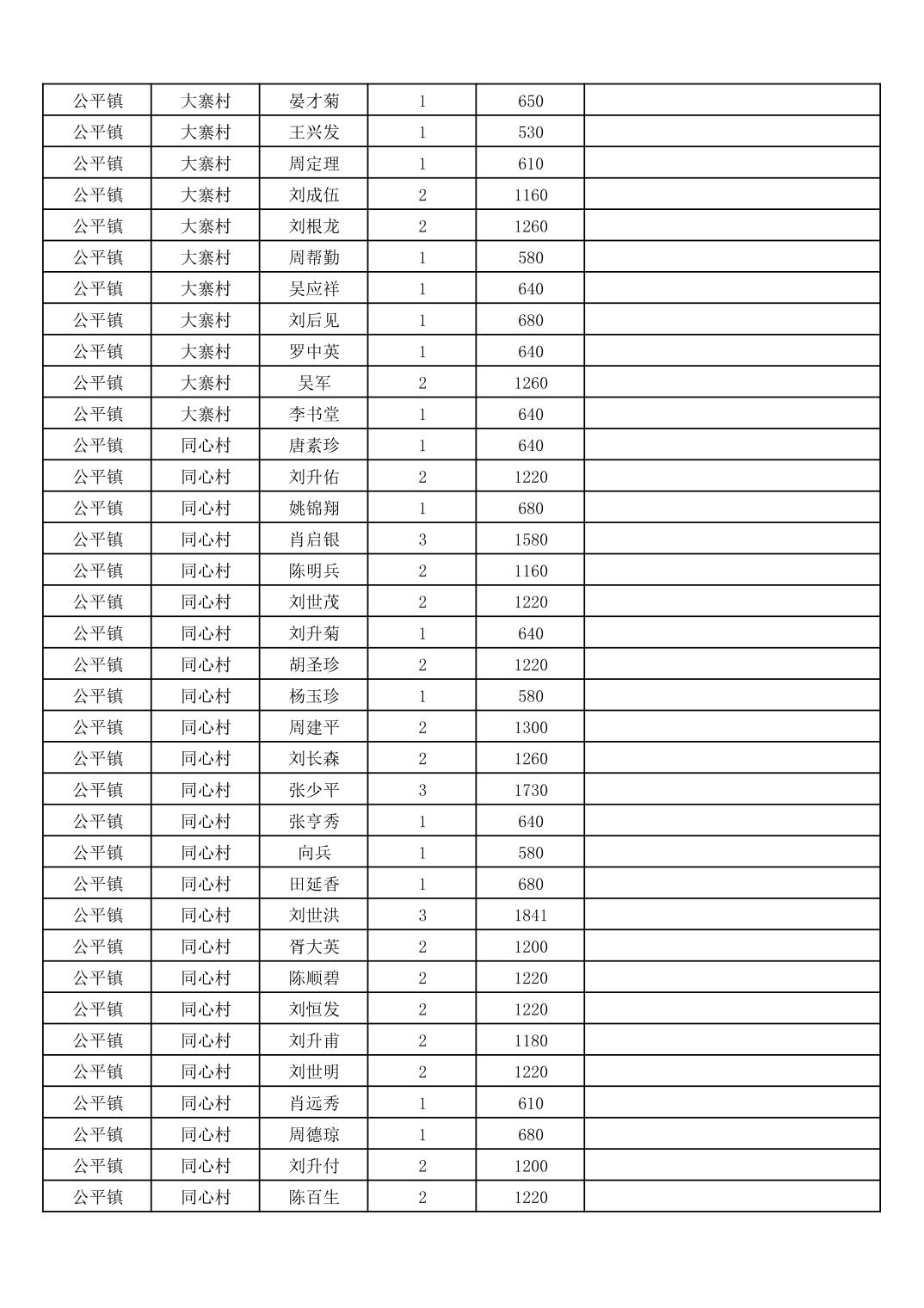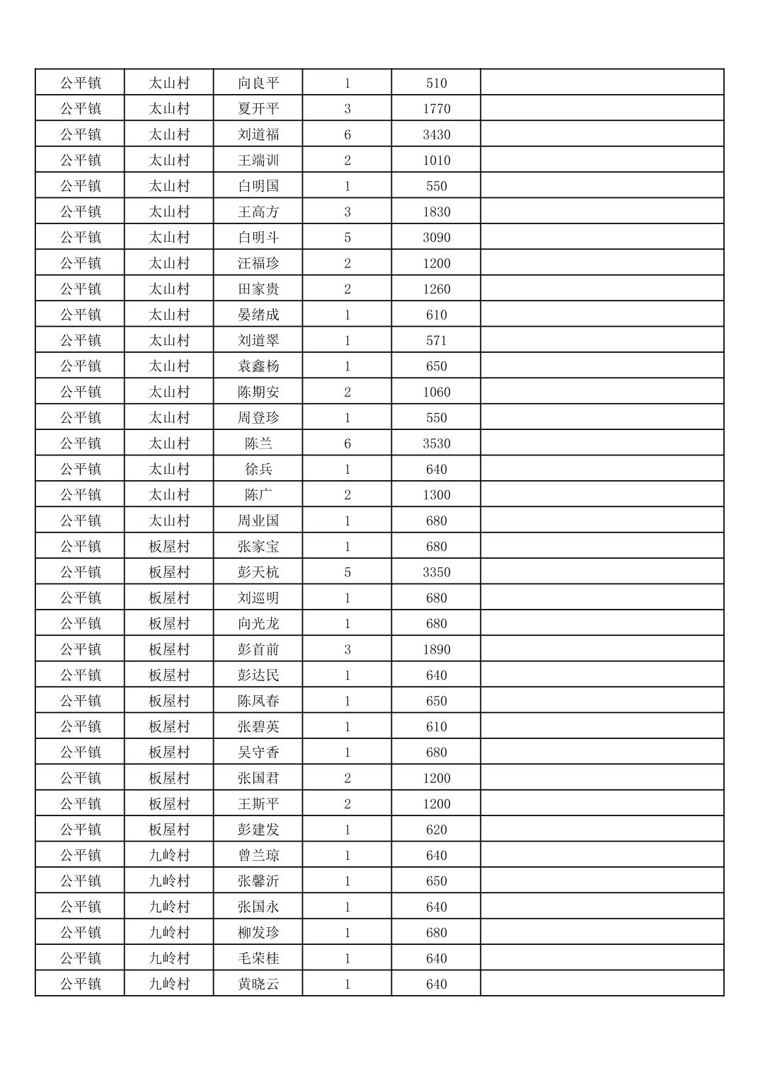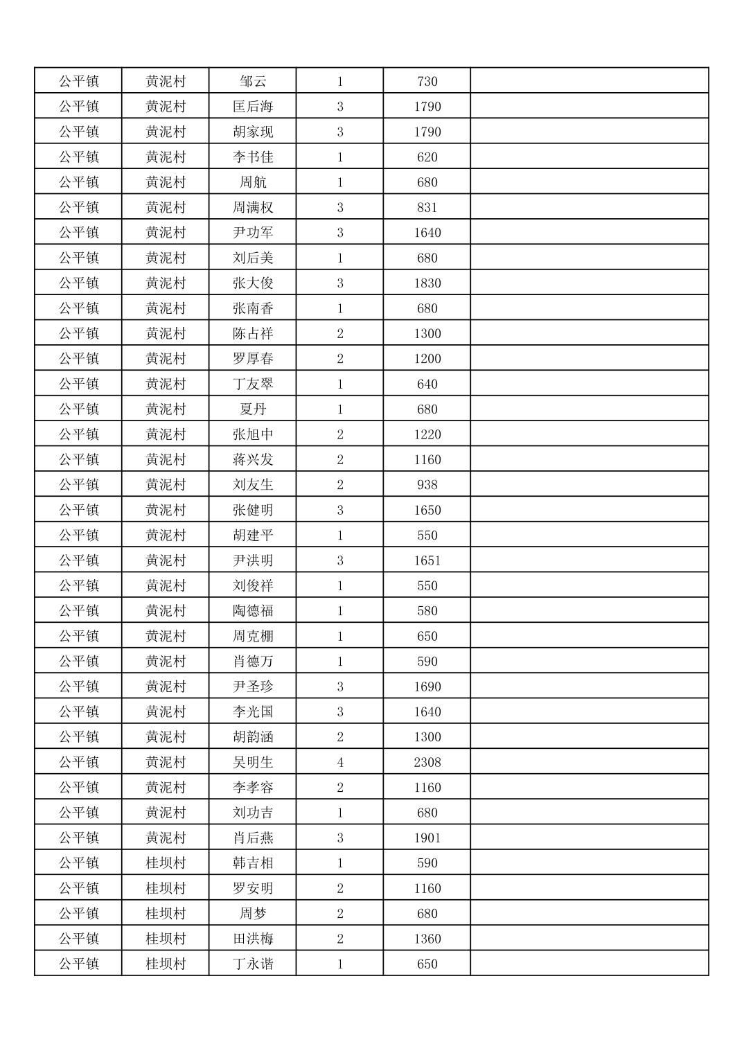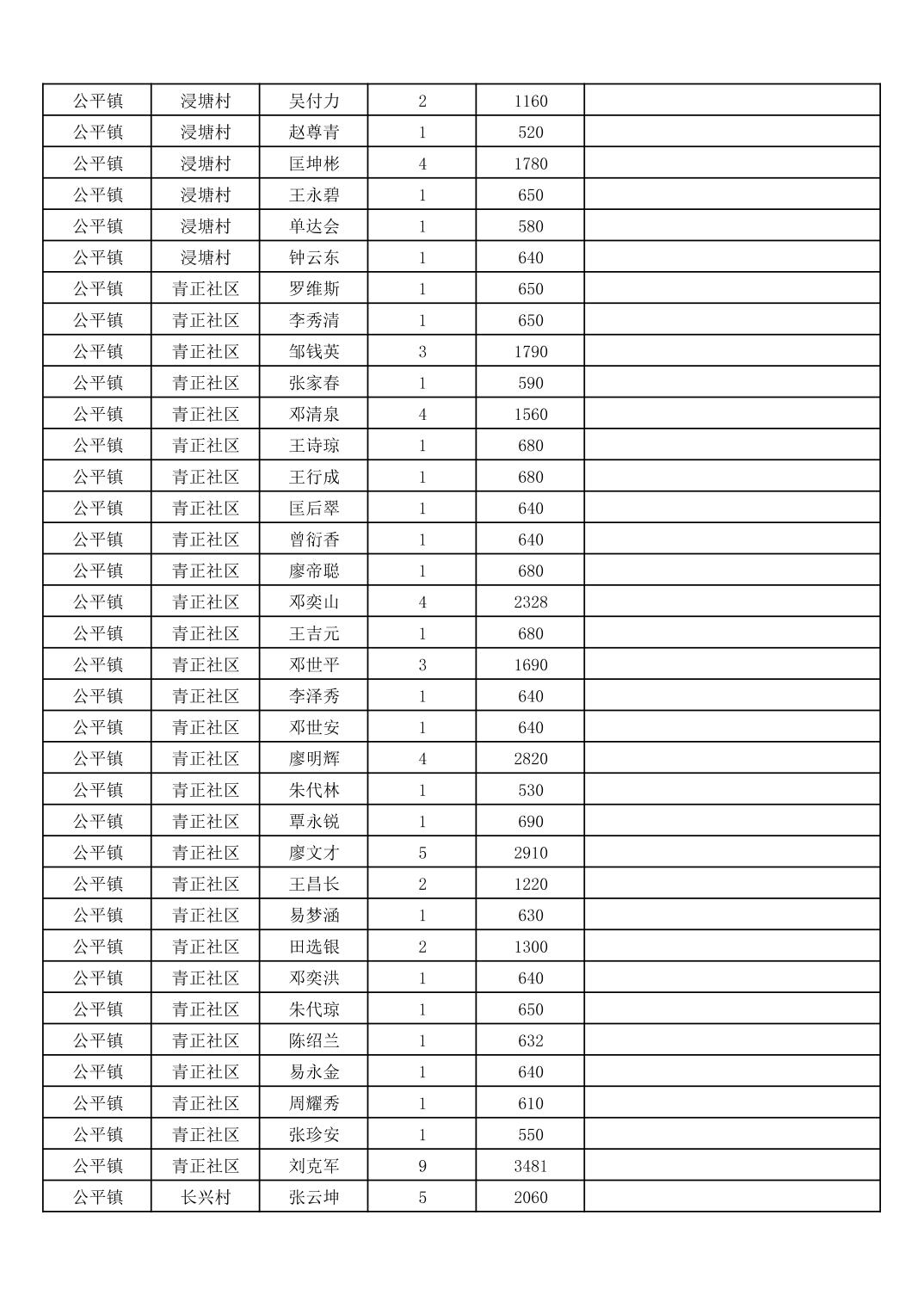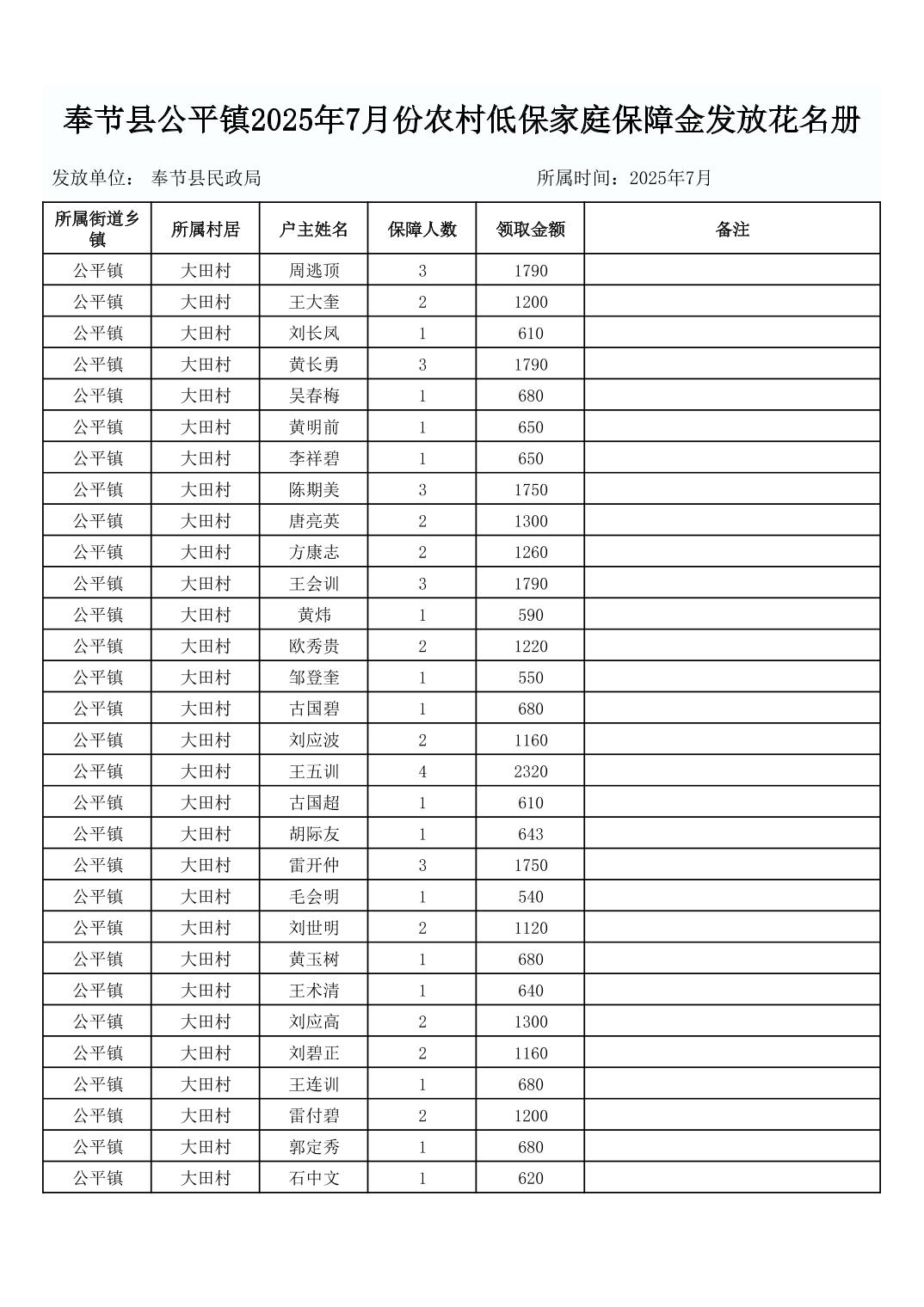 奉节县公平镇2025年7月份农村低保家庭保障金发放花名册