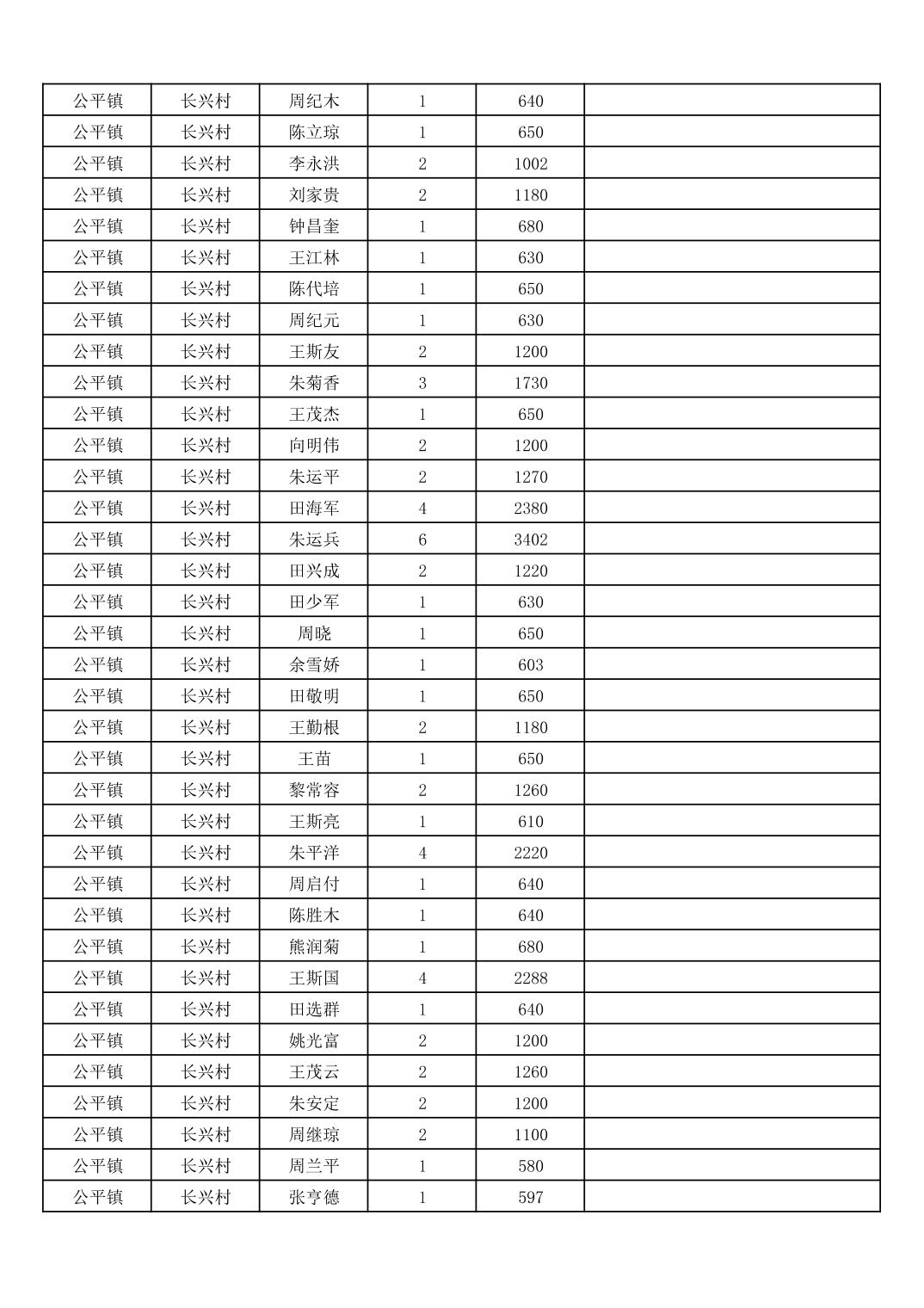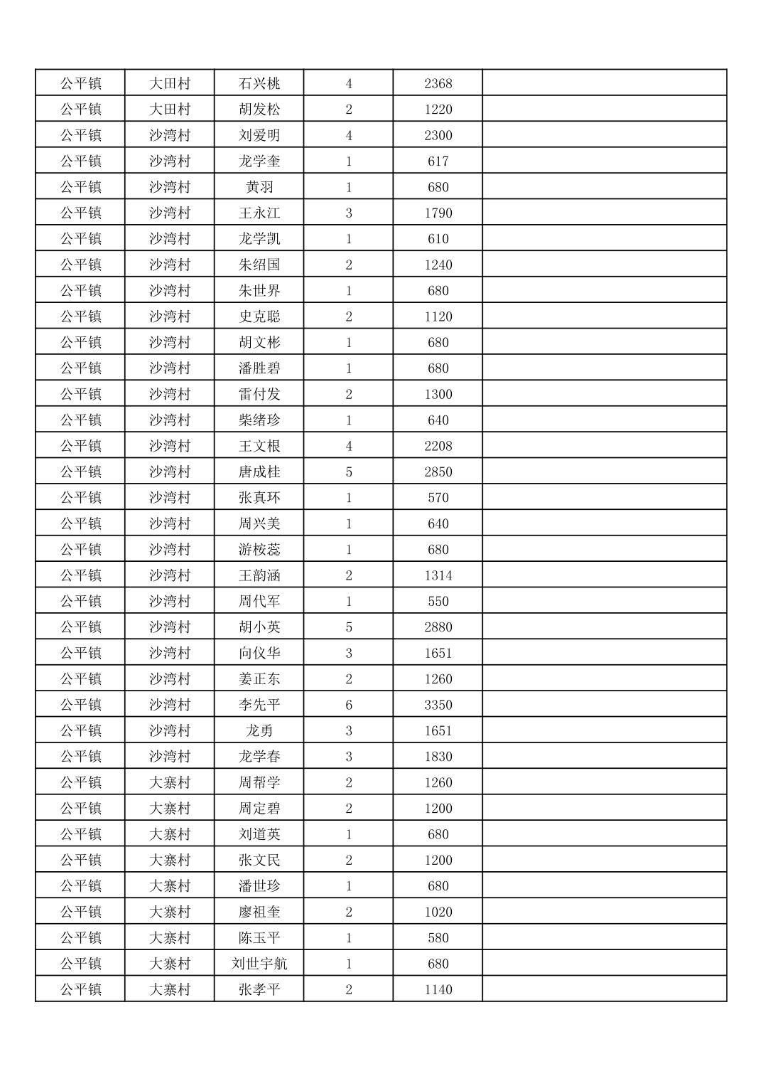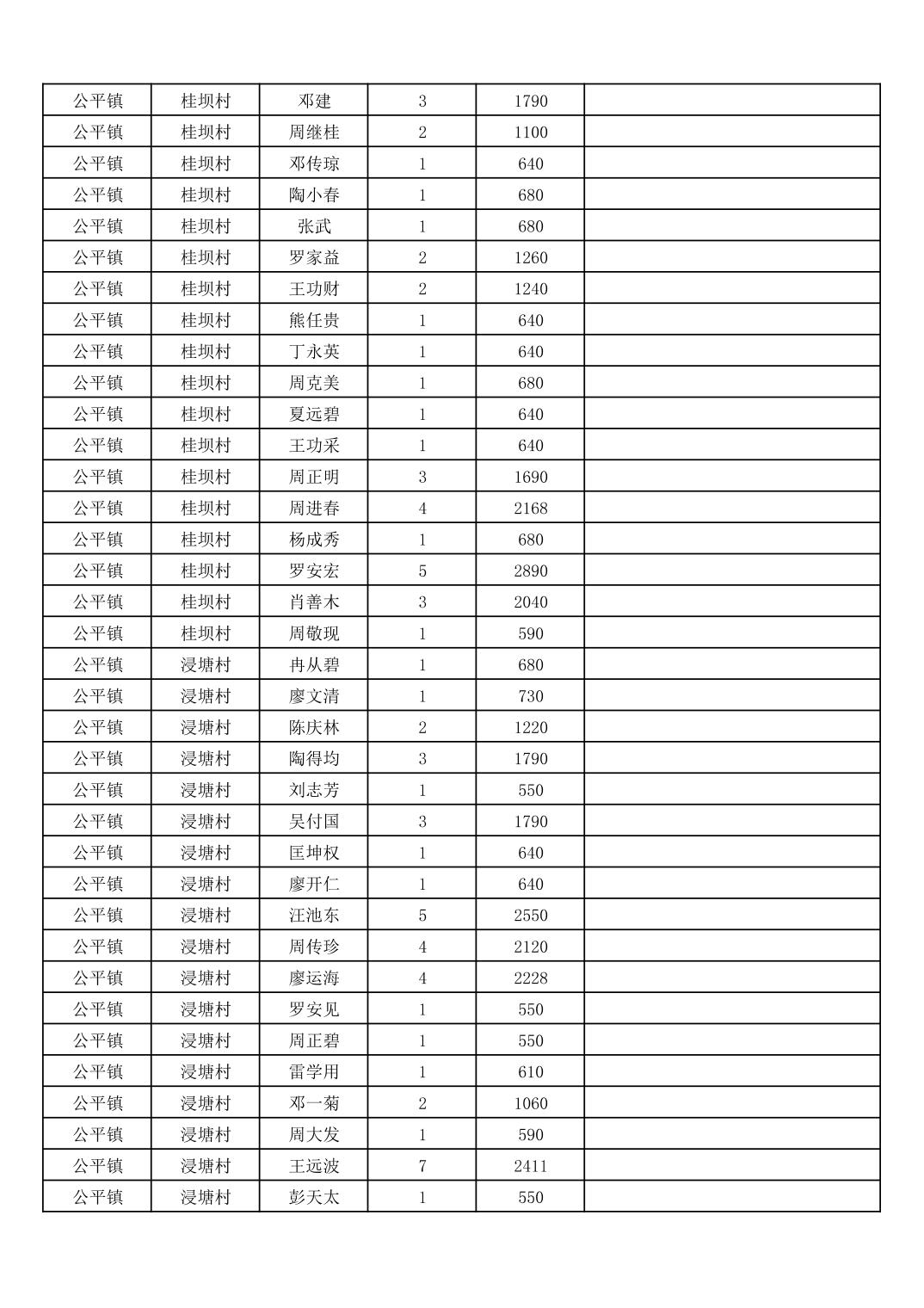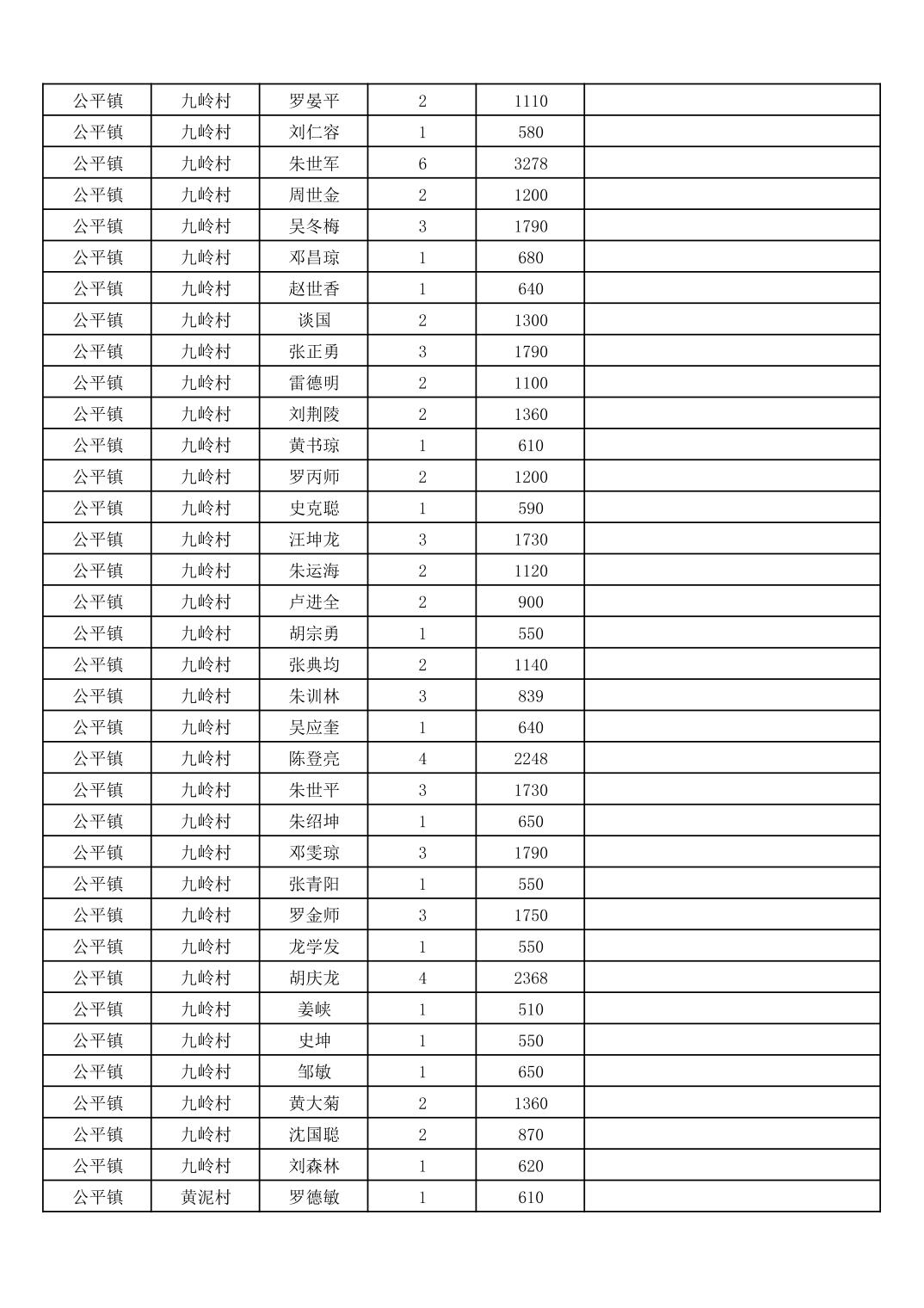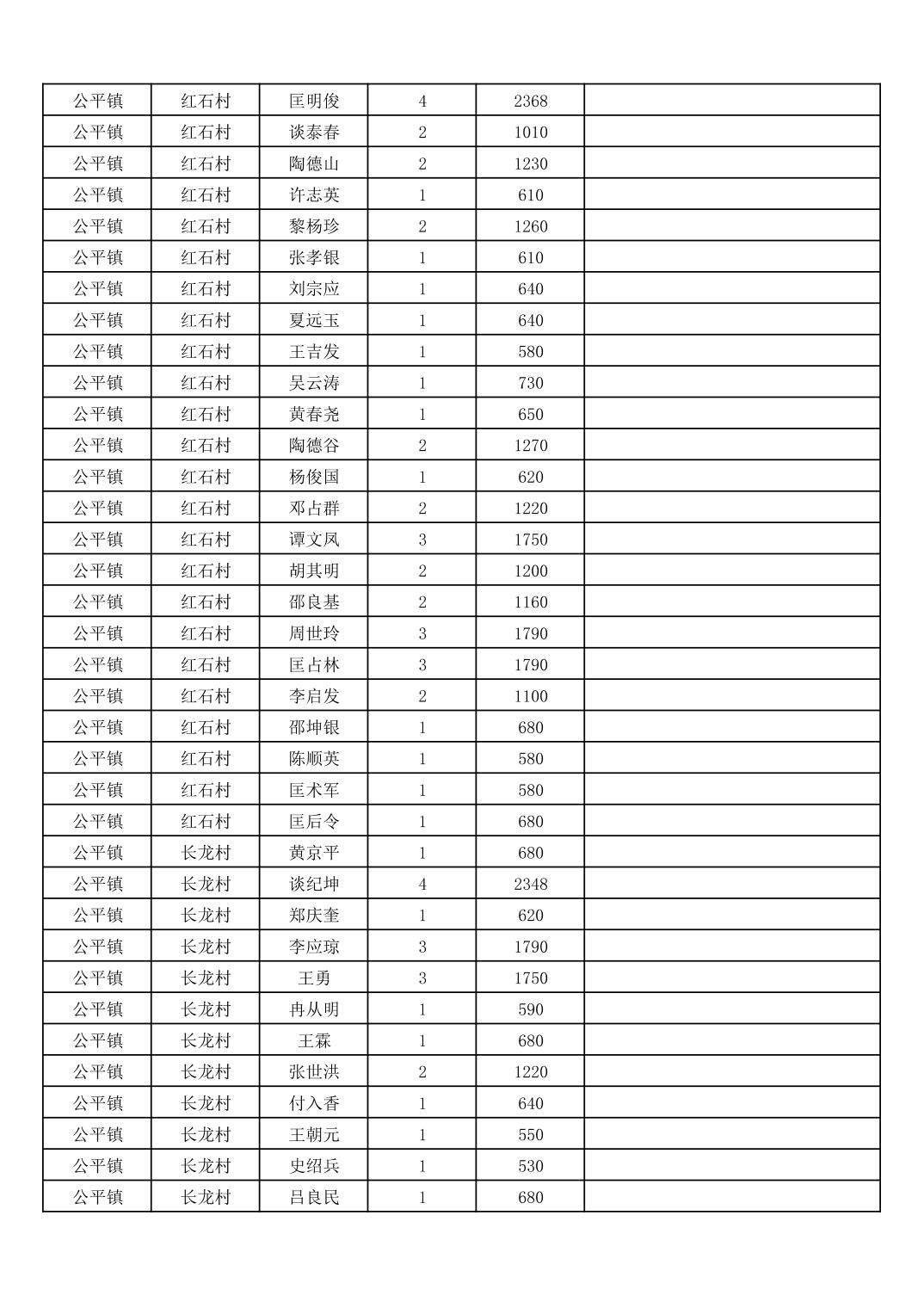 奉节县公平镇2025年7月份农村低保家庭保障金发放花名册