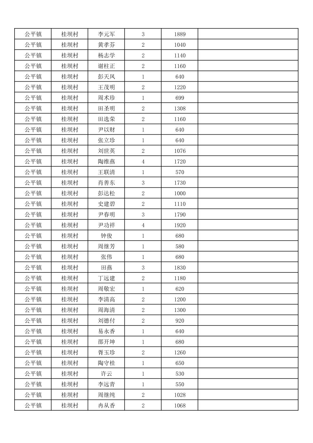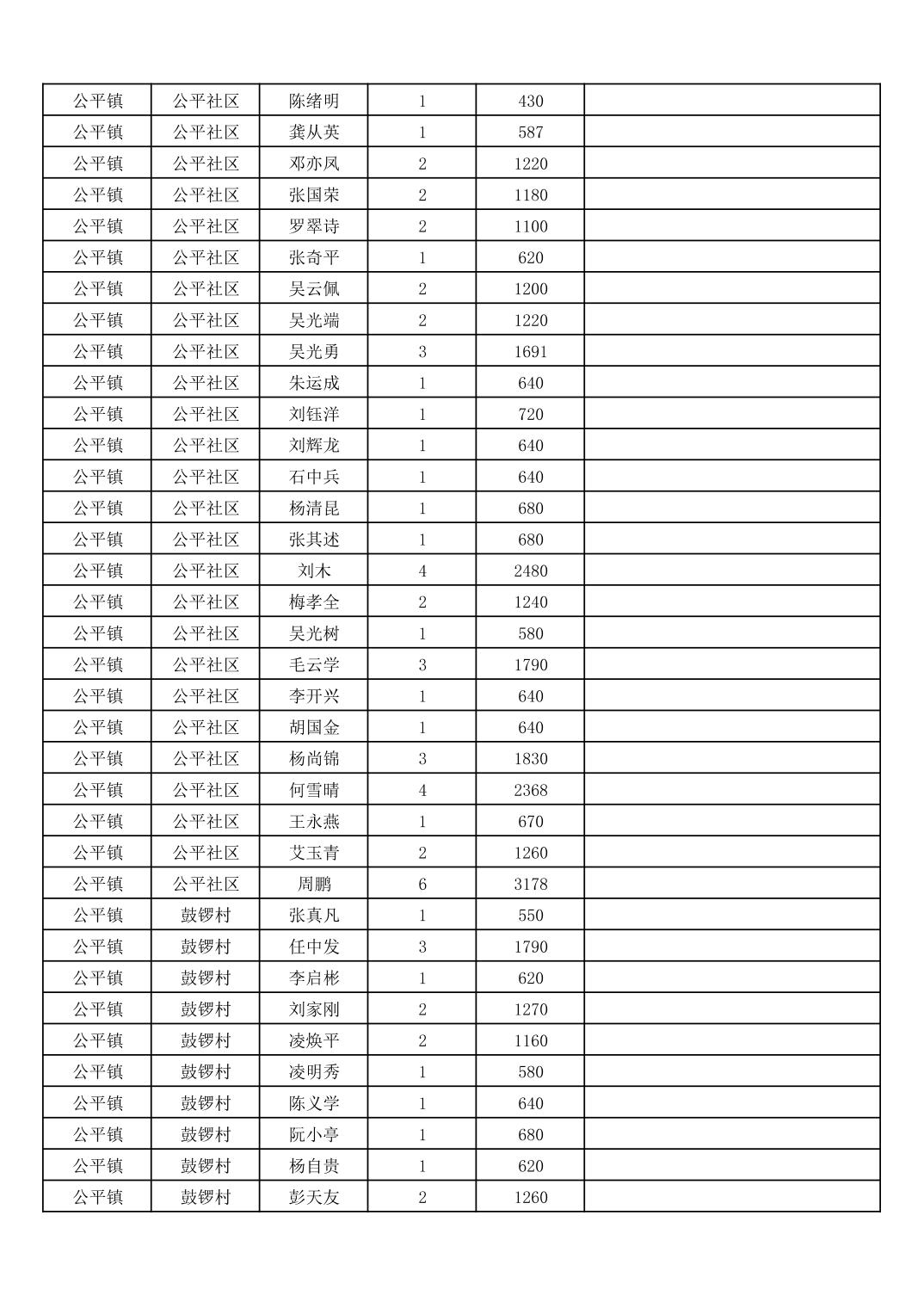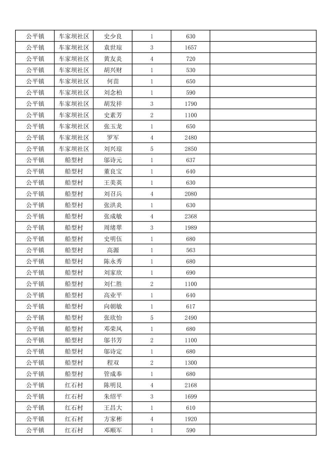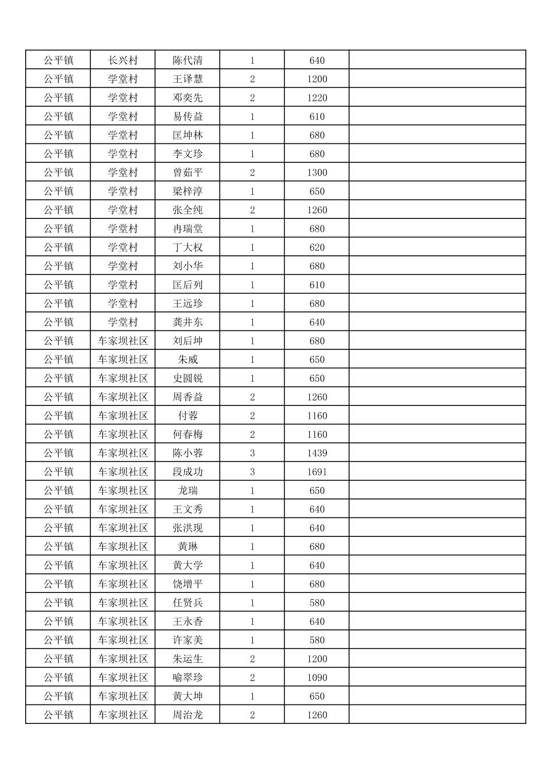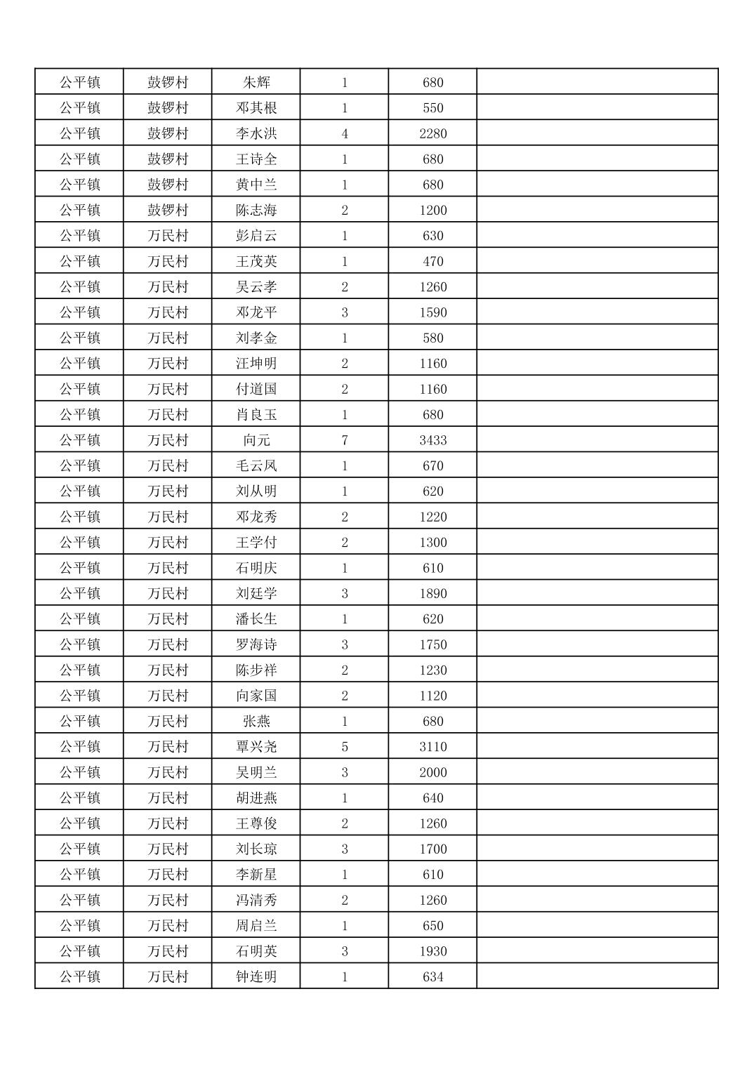 奉节县公平镇2025年7月份农村低保家庭保障金发放花名册