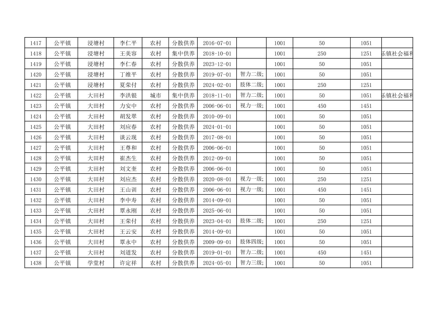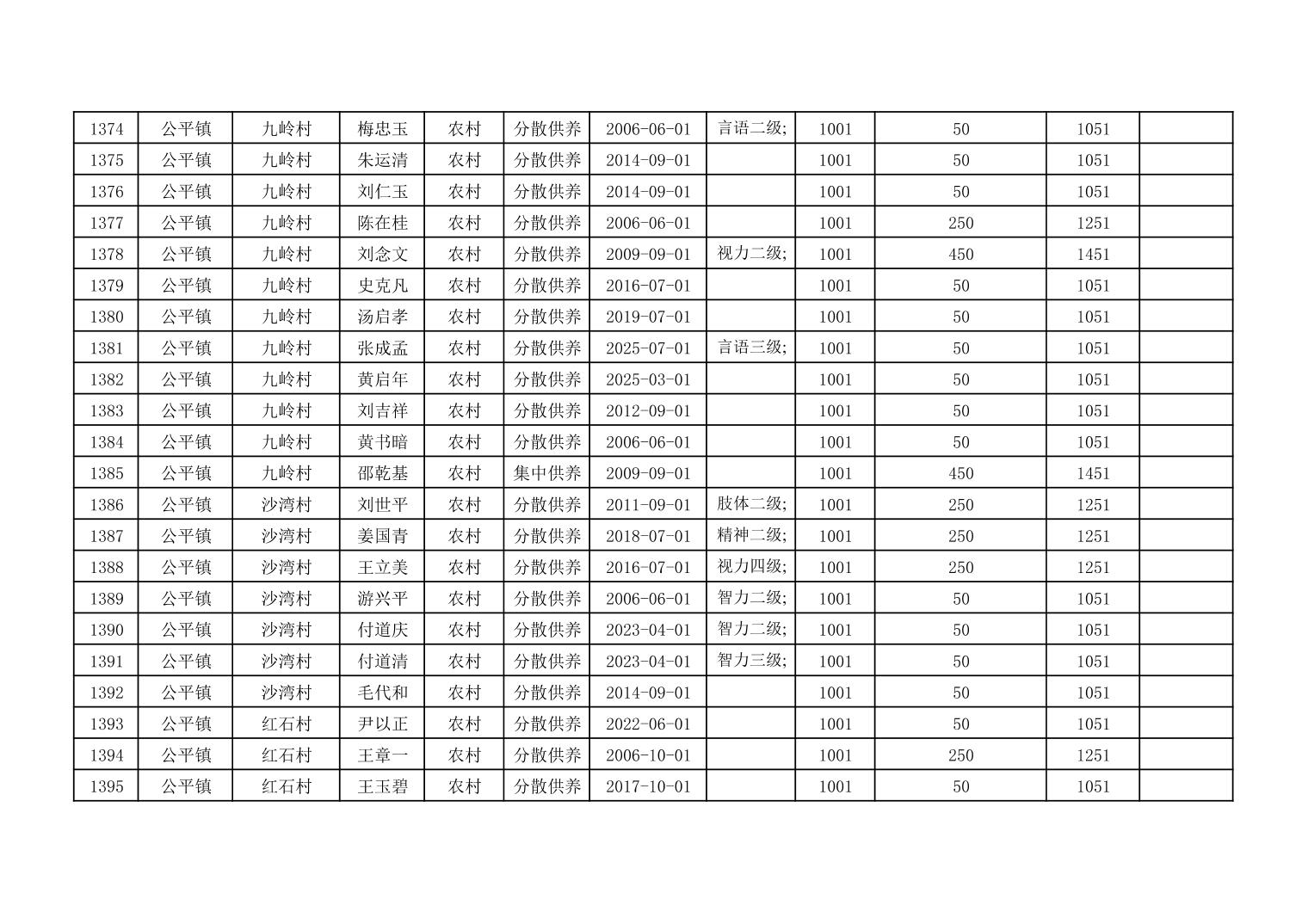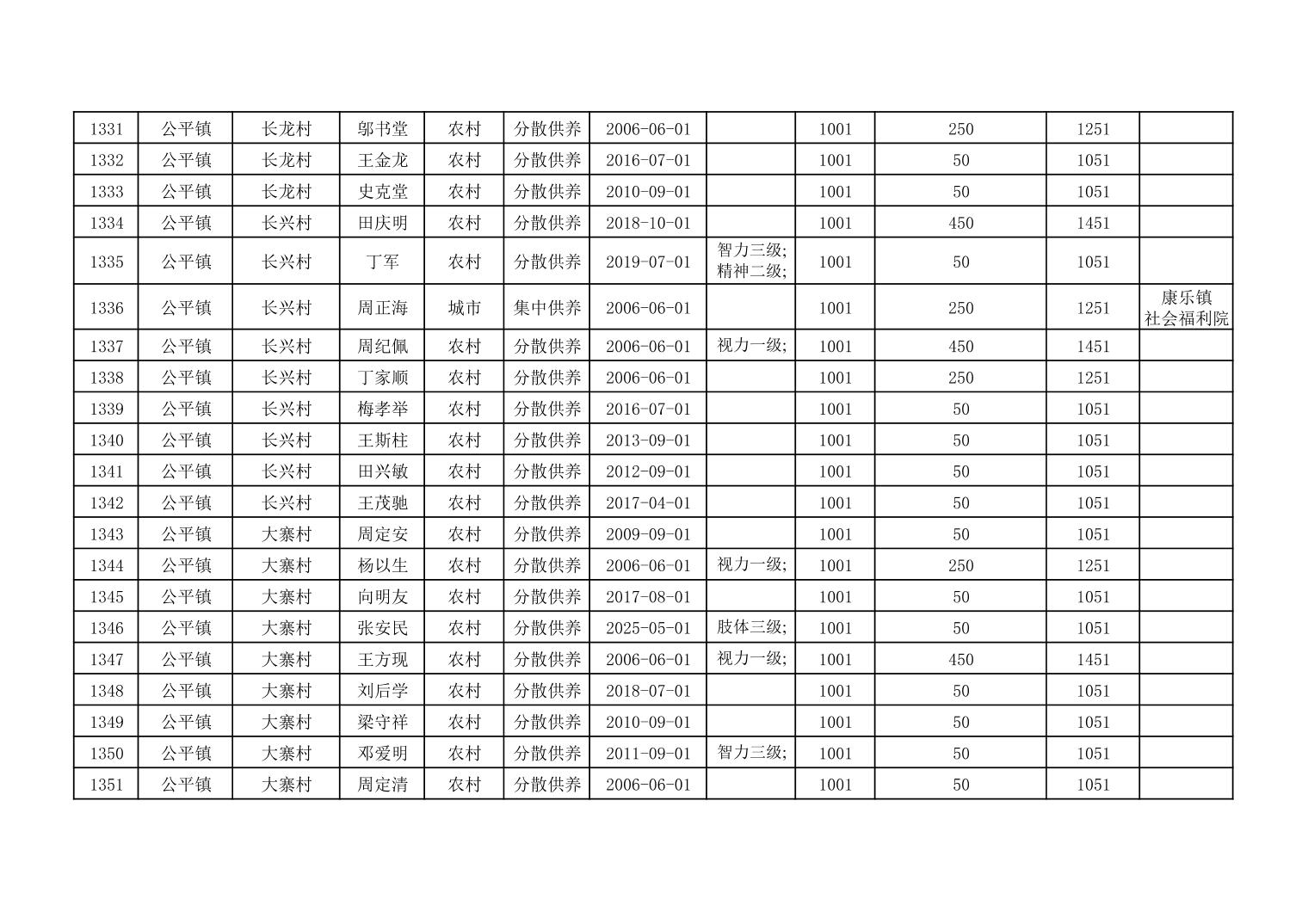 2025年奉节县公平镇城乡特困人员7月基本生活补贴发放花名册