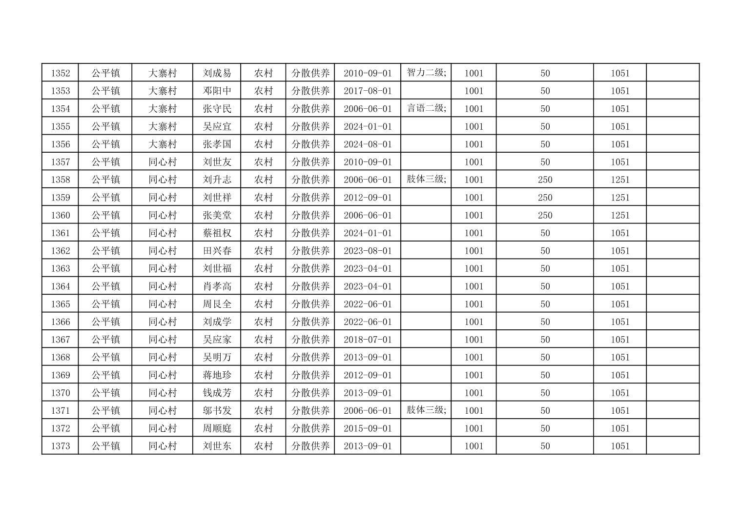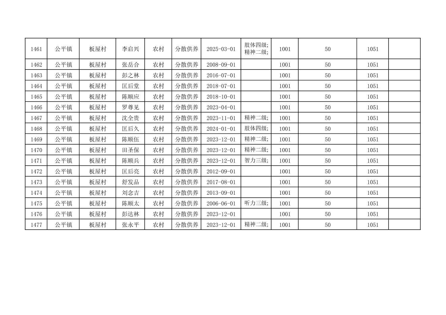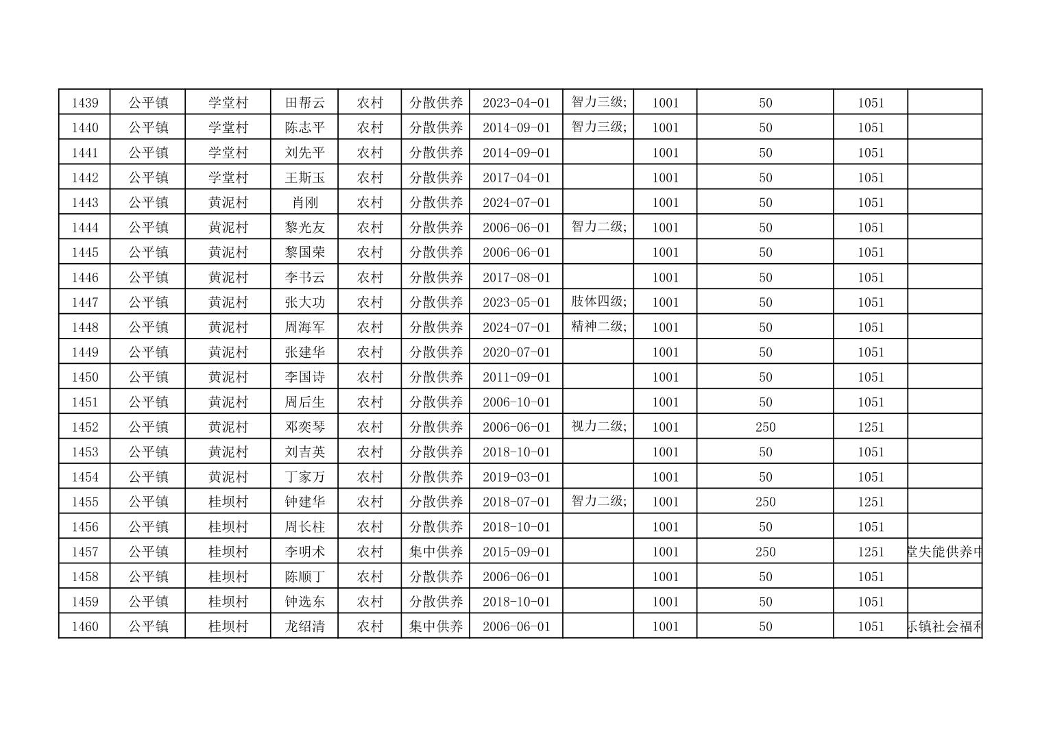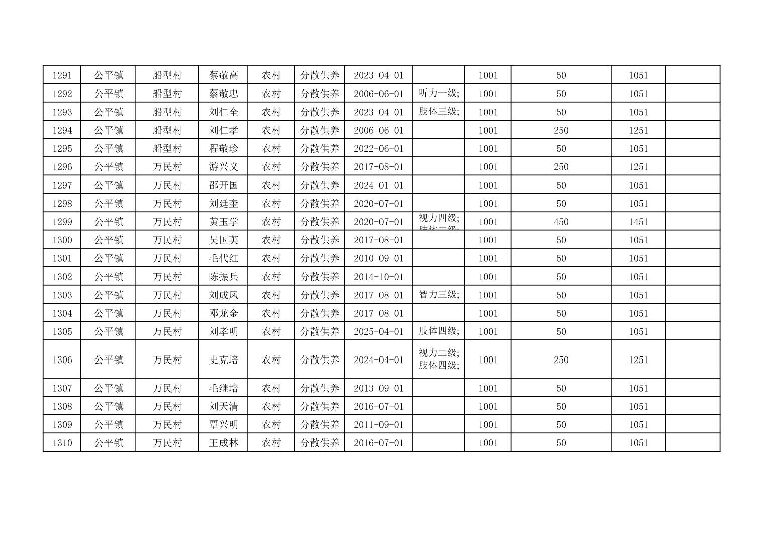 2025年奉节县公平镇城乡特困人员7月基本生活补贴发放花名册