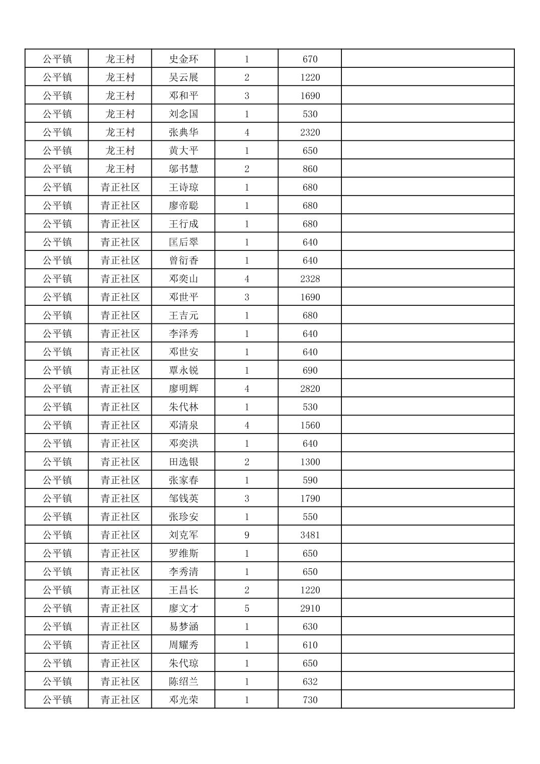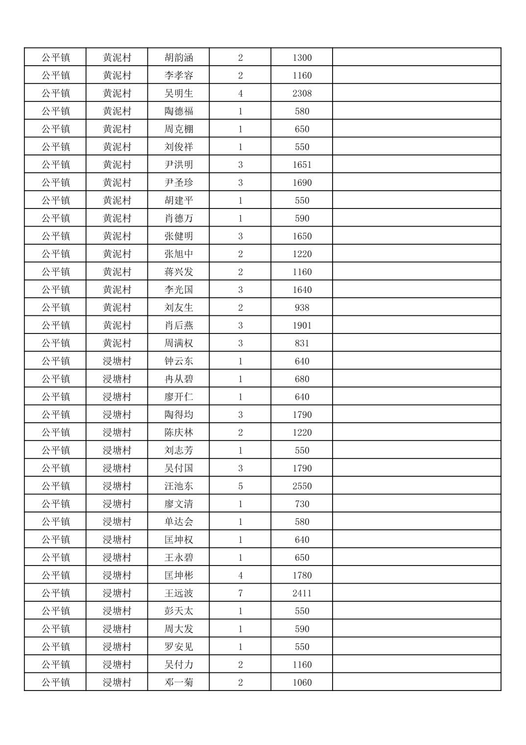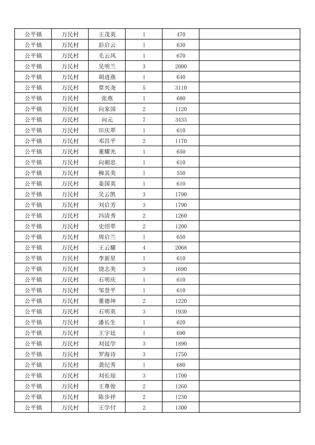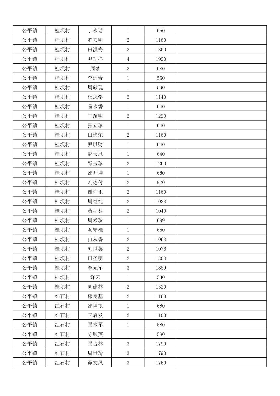 奉节县公平镇2025年8月份农村低保家庭保障金发放花名册