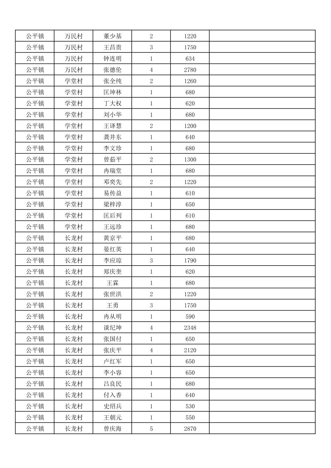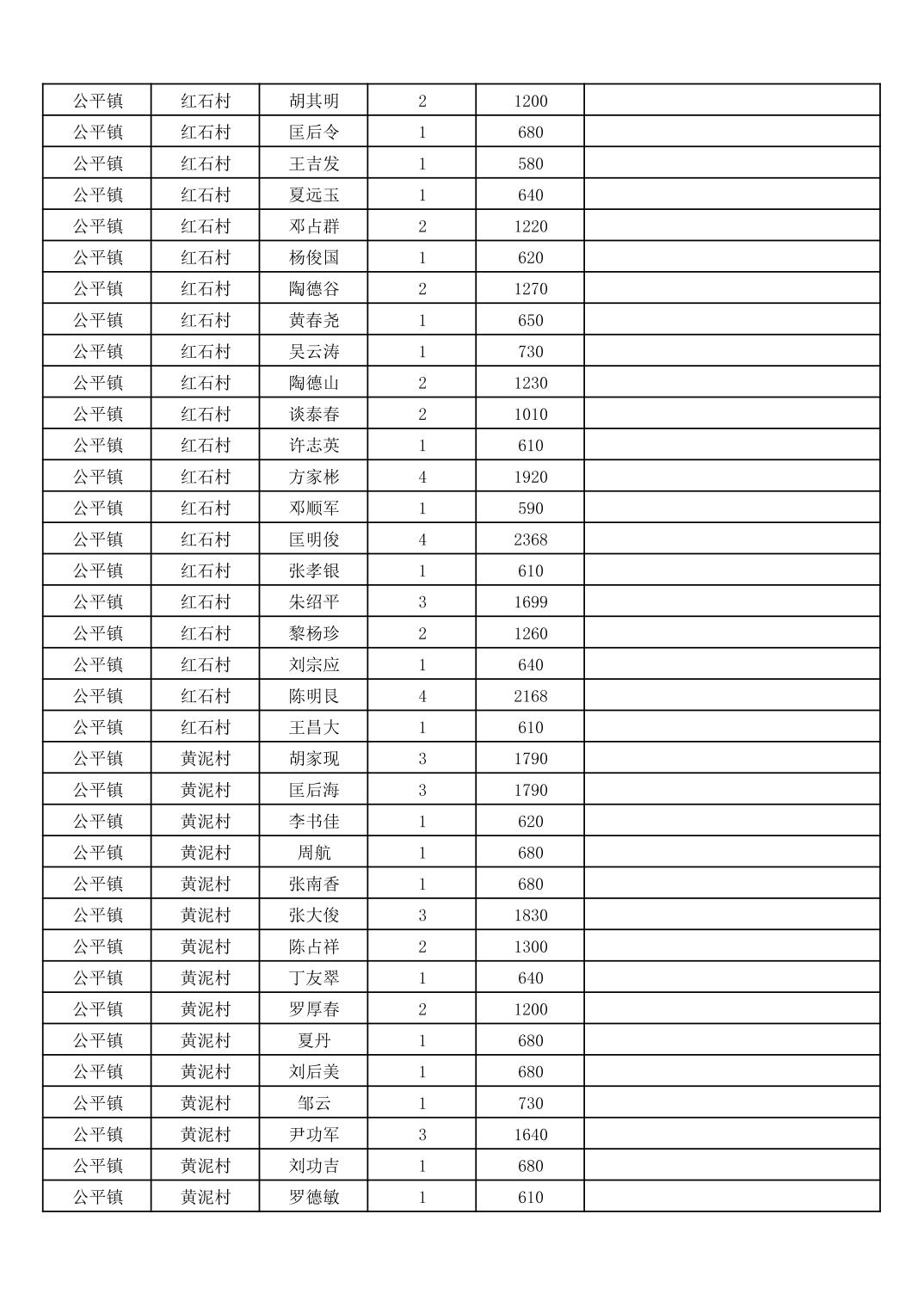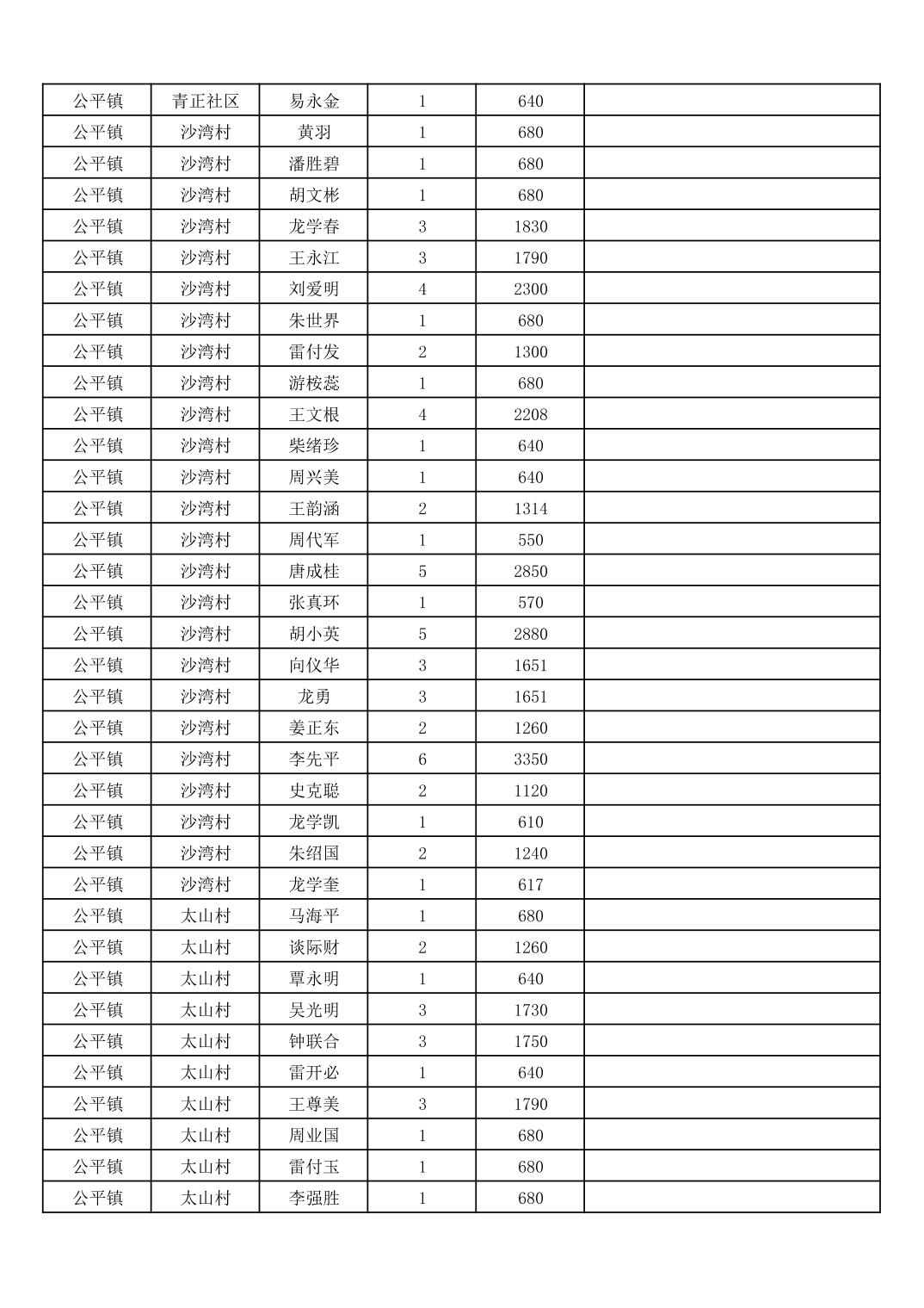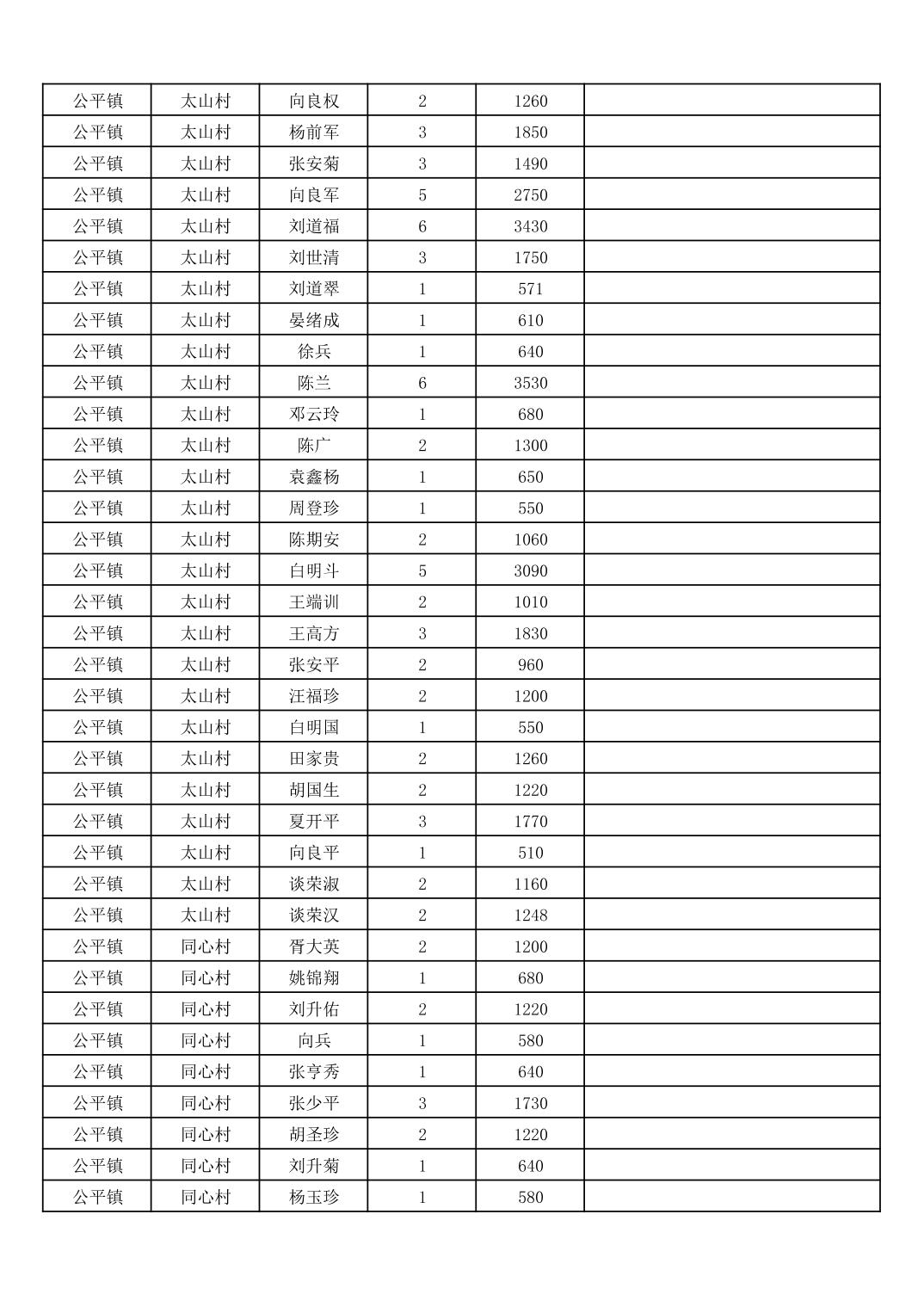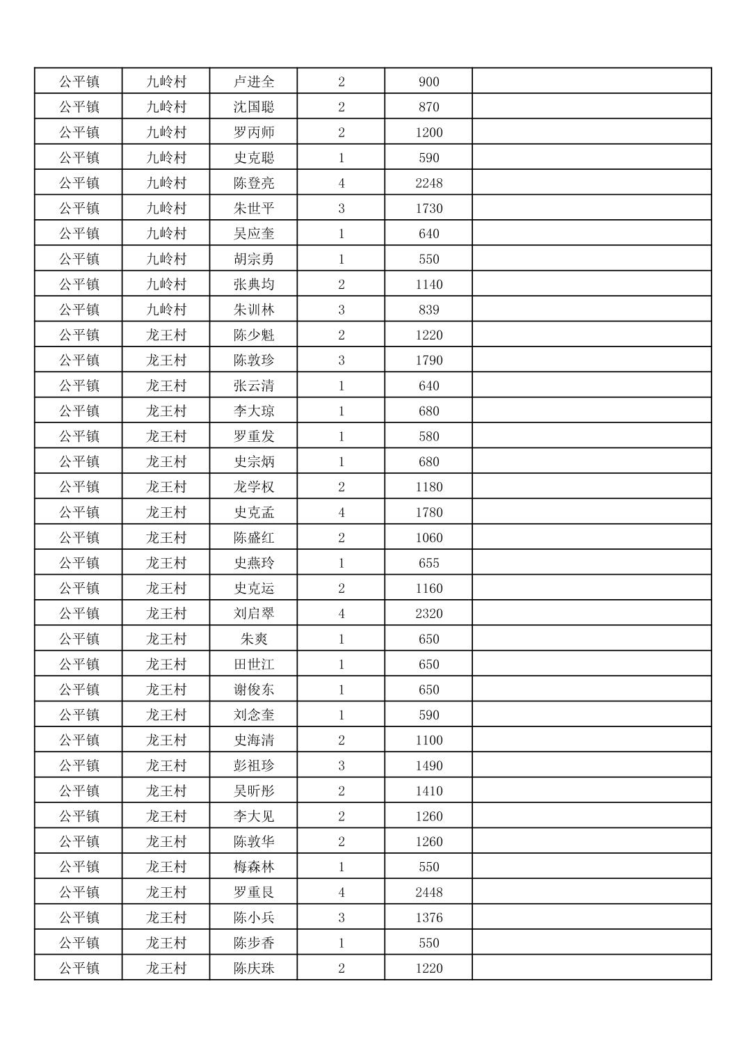 奉节县公平镇2025年8月份农村低保家庭保障金发放花名册