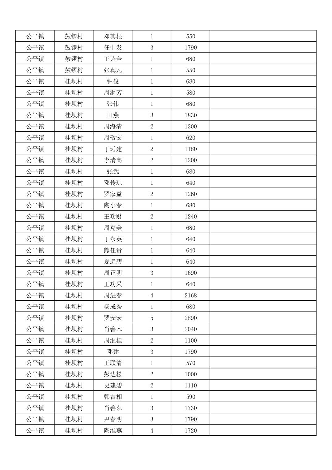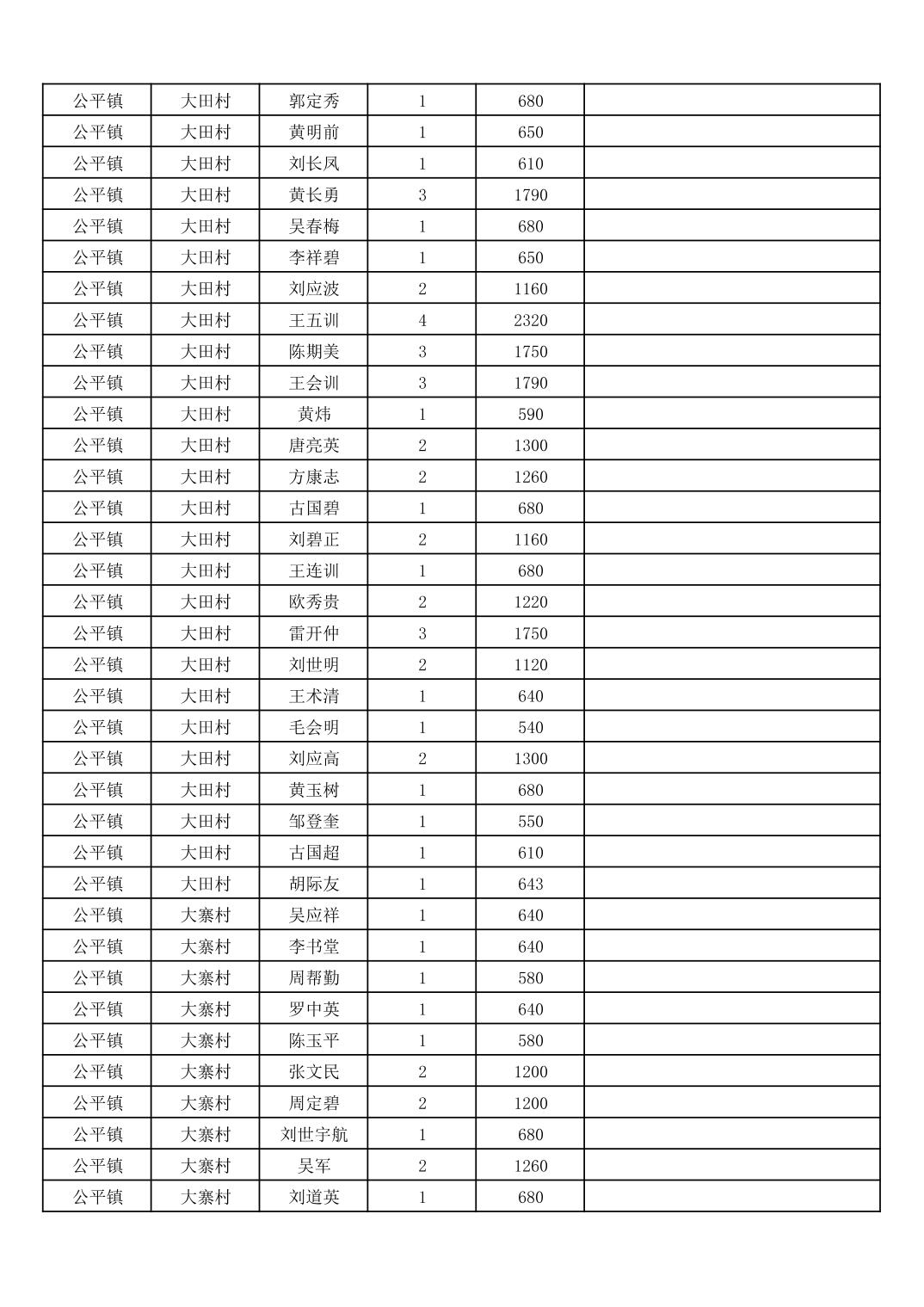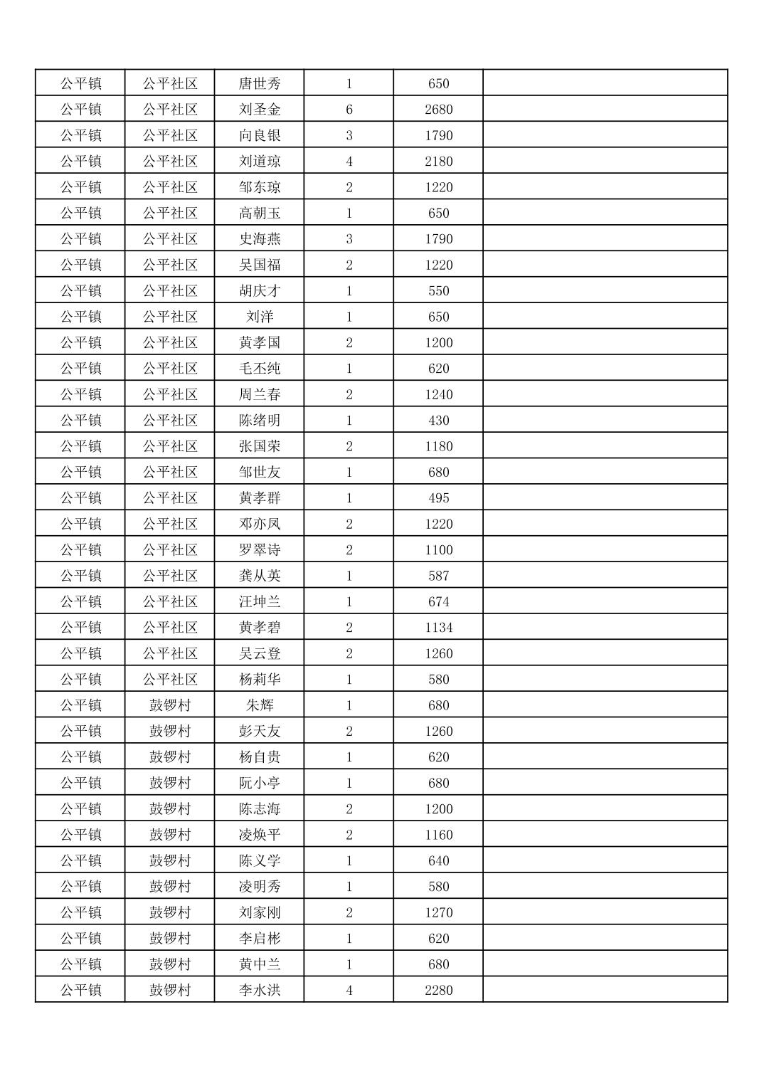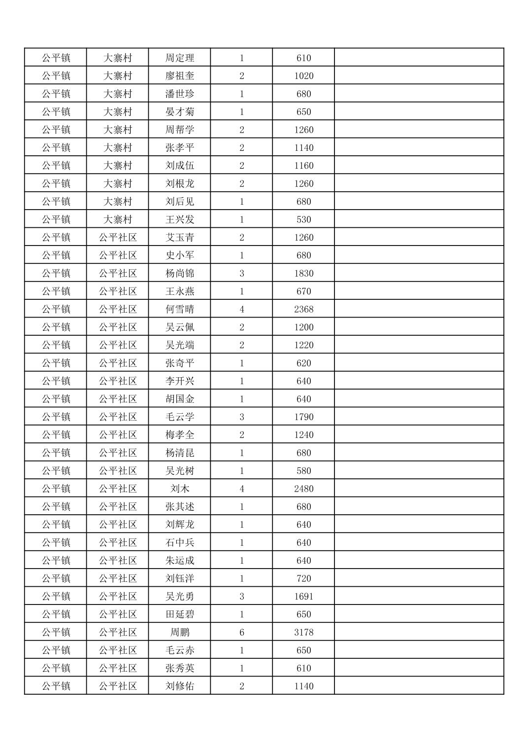 奉节县公平镇2025年8月份农村低保家庭保障金发放花名册