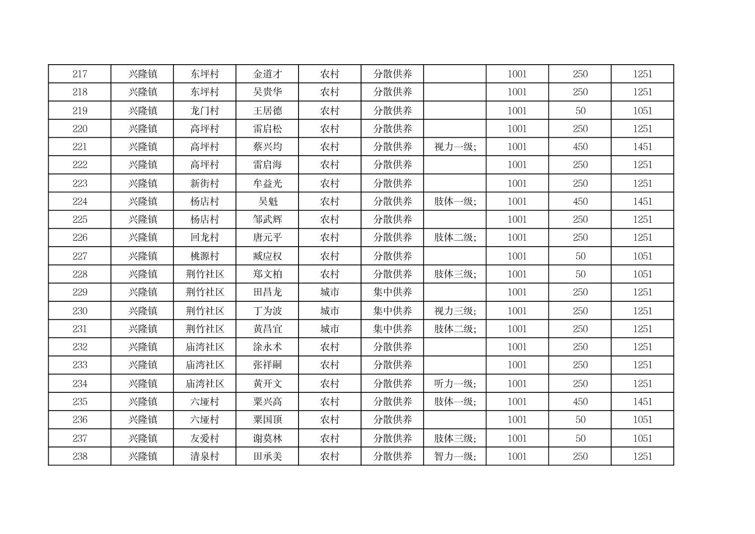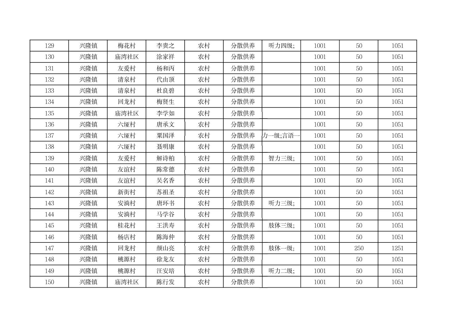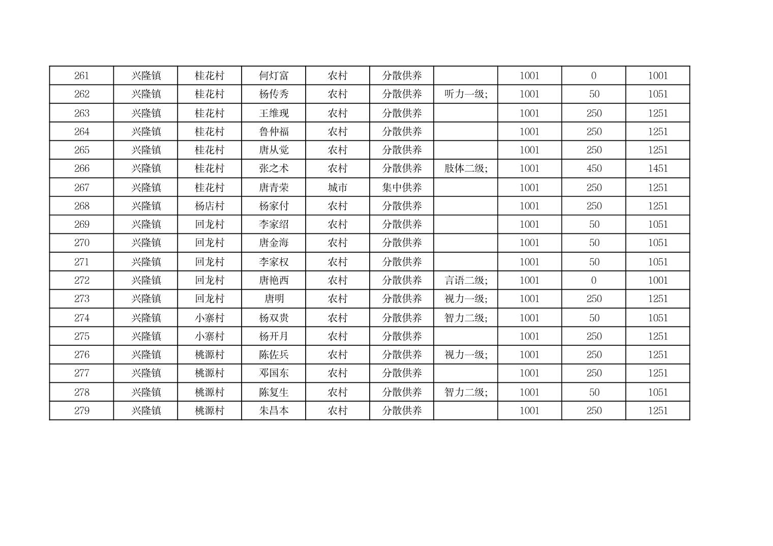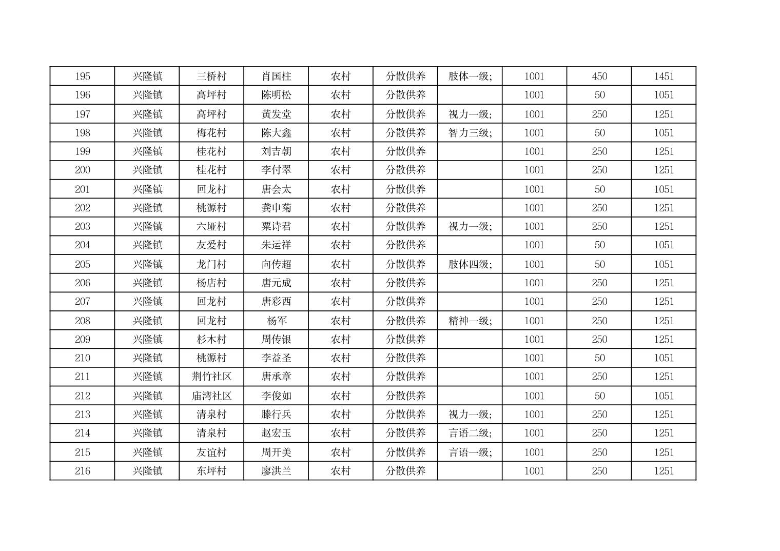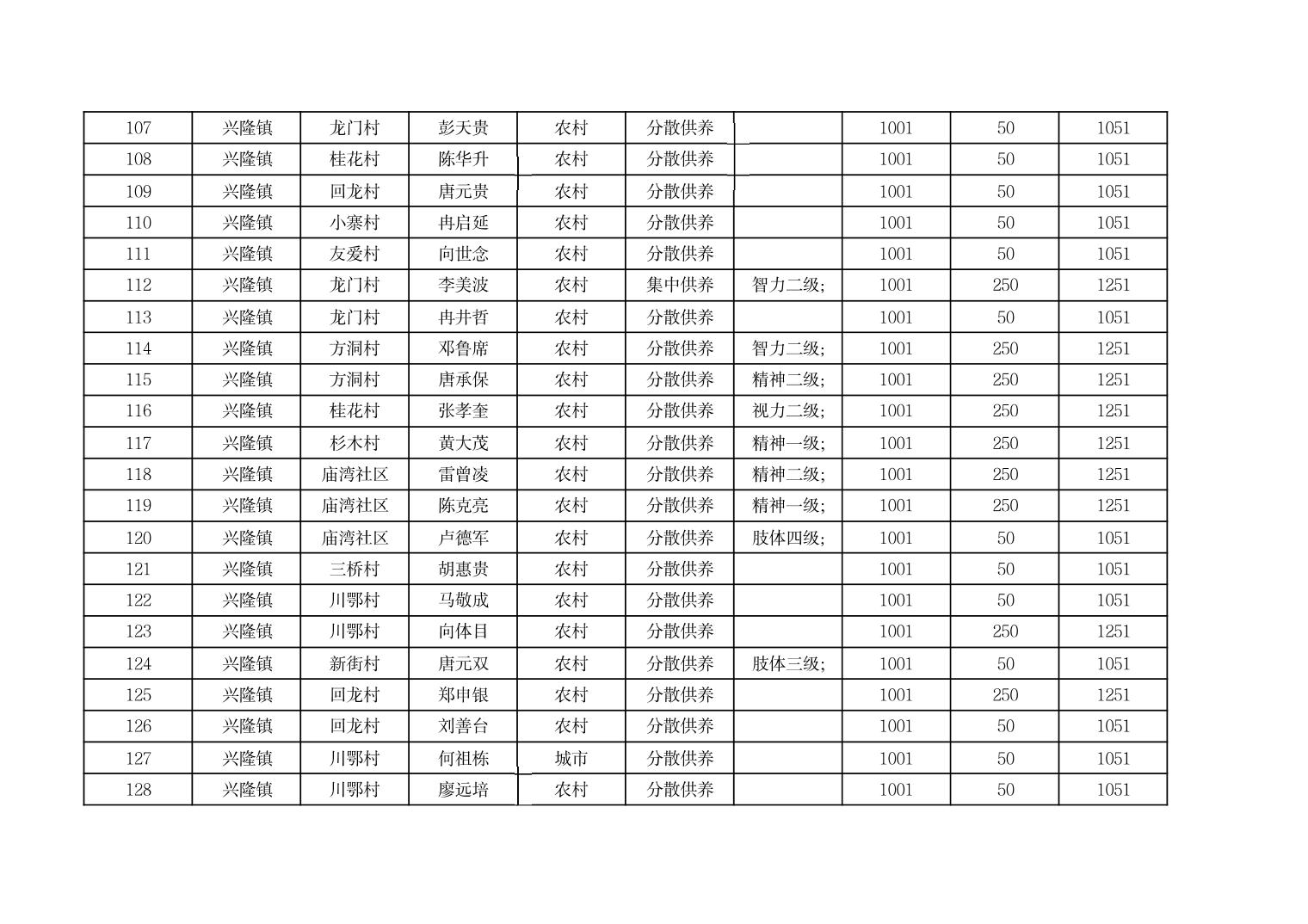 2025年11月份奉节县兴隆镇城乡特困人员基本生活补贴发放花名册