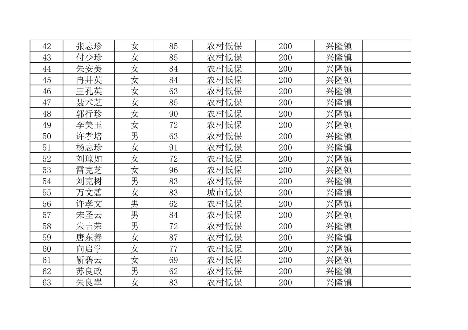 2025年7月份奉节县兴隆镇经济困难的高龄失能老年人养老服务补贴发放花名册