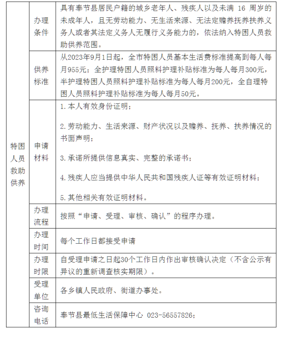 奉节县特困人员救助供养服务指南(2023年版)
