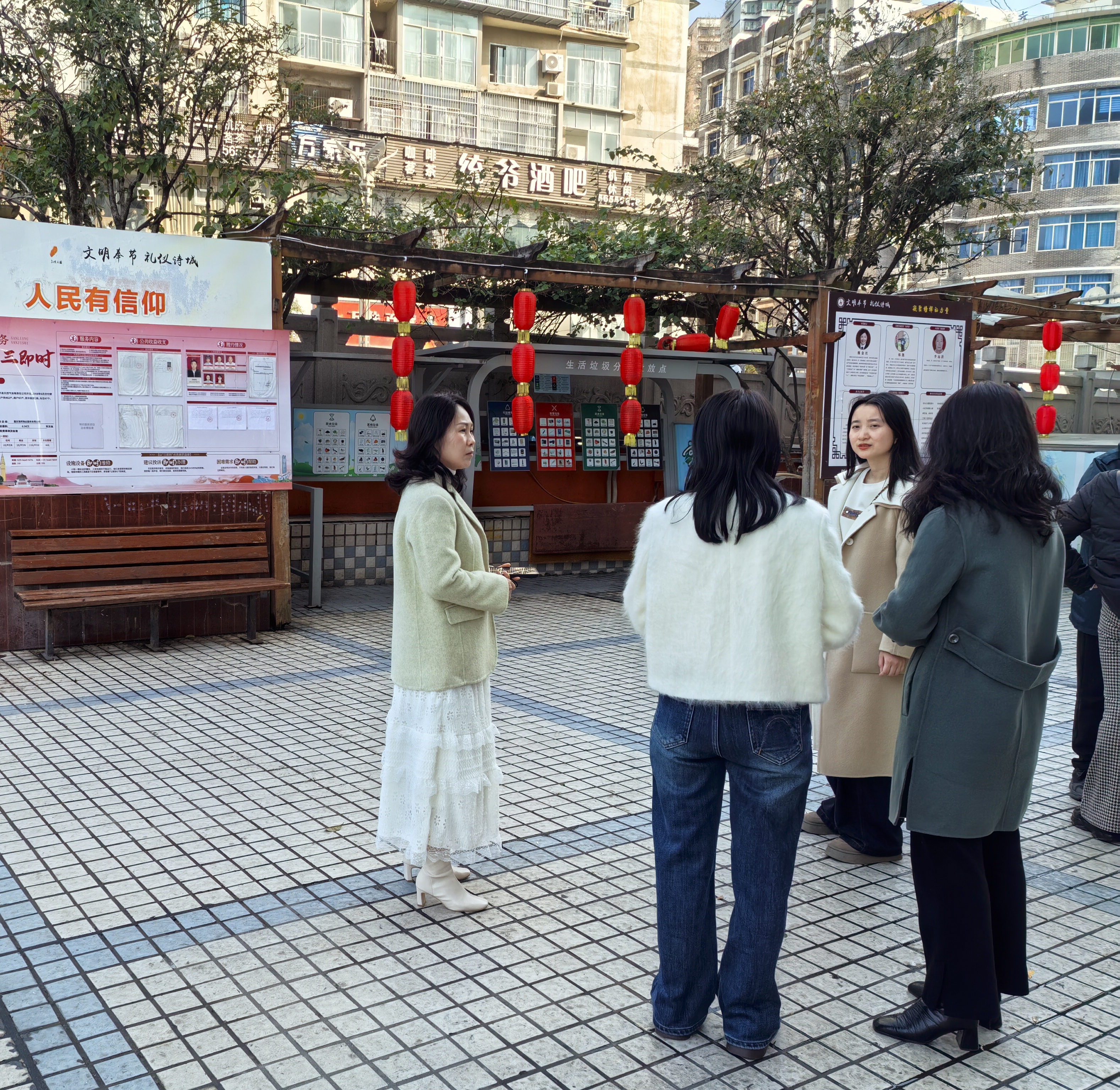 为进一步提升辖区小区环境卫生管理水平,优化居民生活环境,2026 年 3 月 4 日,鱼复街道办事处主任李大学、统战委员王宇波、宣传委员何贤银带领物管办工作人员,深入夔门之都、三峡风 B 栋等小区,现场督导规范撤桶并点与垃圾桶优化设置工作。